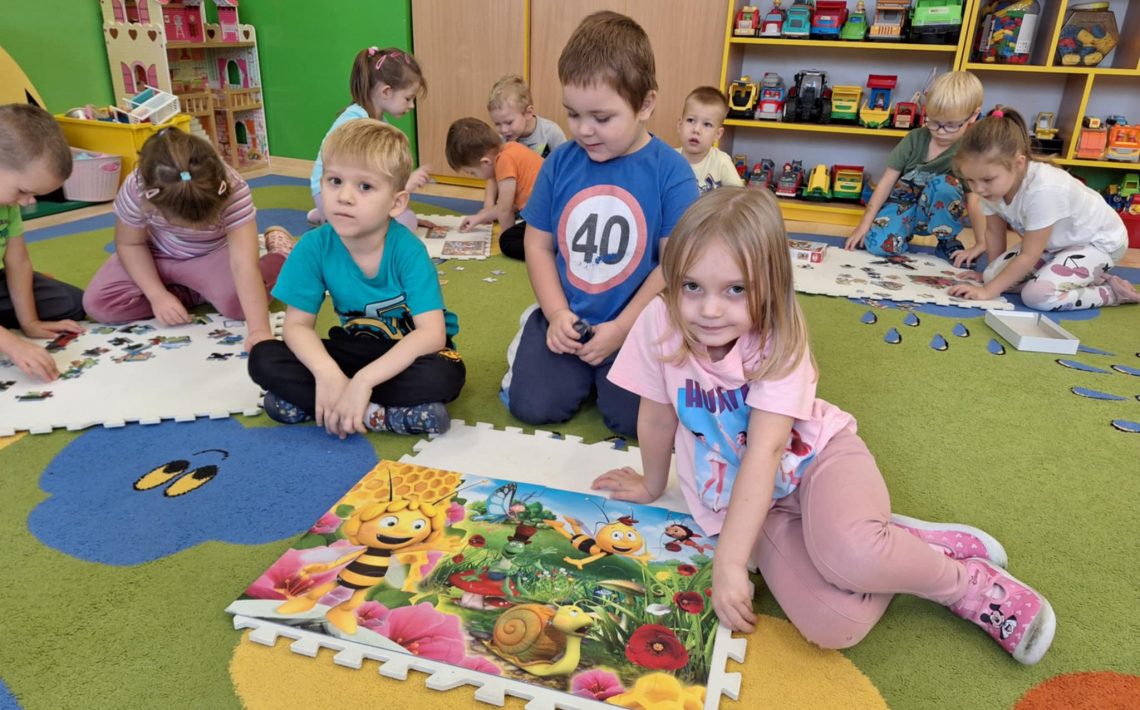 4- latki rozwijały pamięć wzrokową i uczyły się współpracować, układając puzzle w małych grupach.