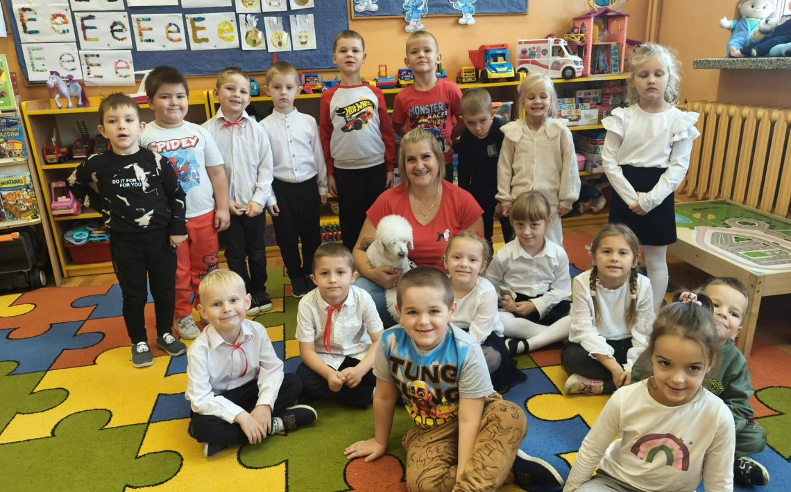 Przedszkolaki z grupy Pszczółki uczestniczyły 24.10.2025r. w zajęciach z dogoterapii. Wizyta psa terapeuty, a także żółwia i trzech ślimaków wywołała u dzieci duże zaciekawienie. Wspólne zabawy przyniosły mnóstwo emocji, oraz nowych doświadczeń.Już niedługo Ci wyjątkowi goście odwiedzą także pozostałe grupy.
