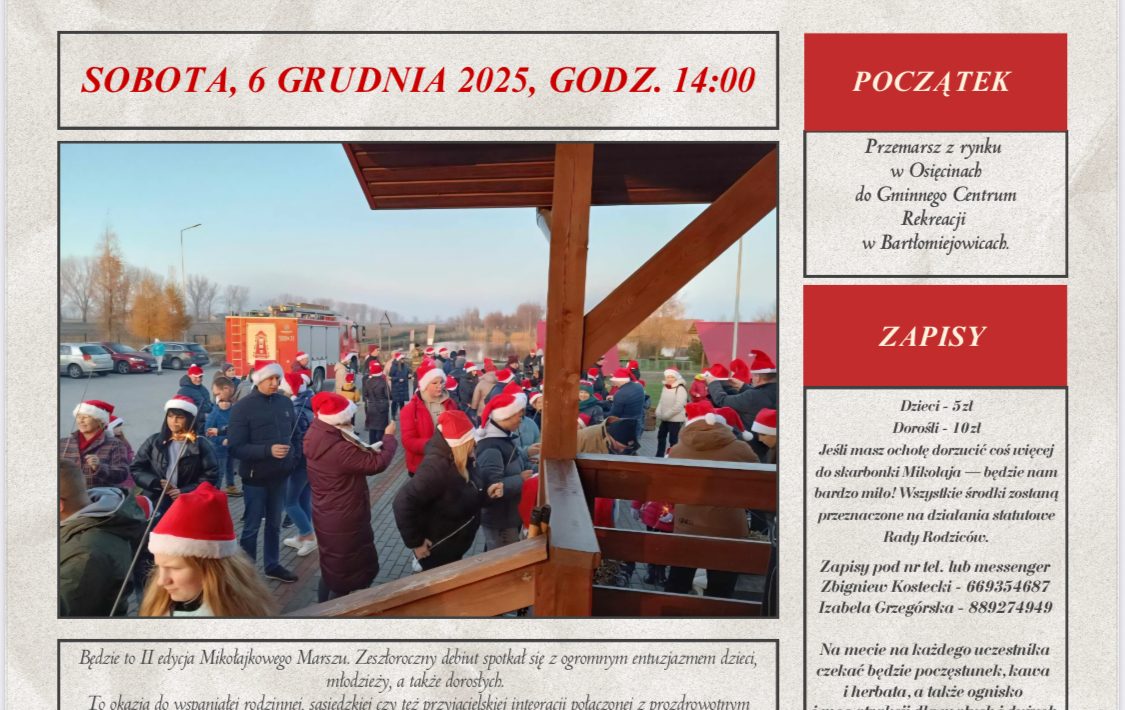 REGULAMIN Spaceru Mikołajkowego • Cel imprezy: • Upowszechnienie sportu i rekreacji wśród społeczeństwa gminy Osięciny. • Promocja gminy Osięciny. • Popularyzacja chodzenia (spacerowania) jako formy aktywnego trybu życia. • Pieniążki z wpłat zostaną przeznaczone na dalsze działania i wydatki dla dzieci z Zespołu Szkolno-Przedszkolnego w Osięcinach. • Organizator: Organizatorem Biegu Mikołajkowego […]