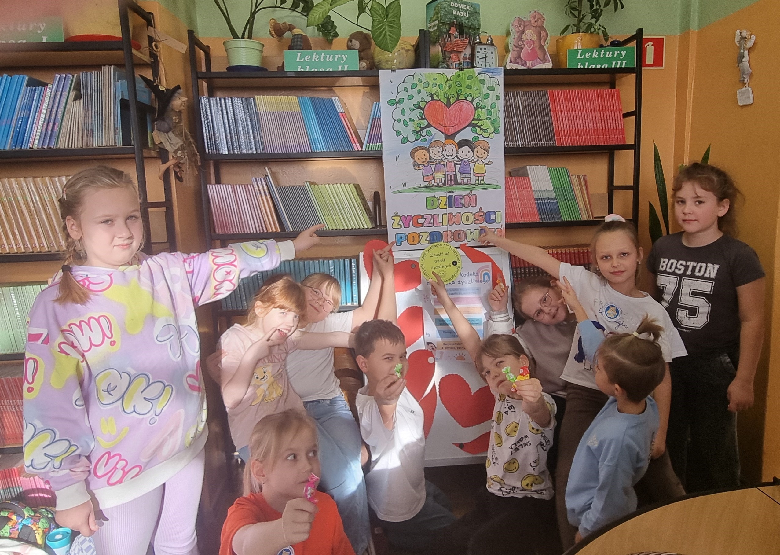 Czytaliśmy również podpowiedzi, jak szerzyć dobro każdego dnia – bo przecież dobro wraca! A na koniec czekała mała, słodka niespodzianka. Każdy uśmiechnięty czytelnik otrzymał cukierek, który dodatkowo umilił ten wyjątkowy, pełen radości dzień.