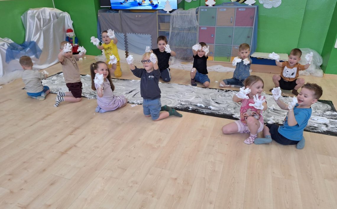 Dzień pełen białego szaleństwa! Dzisiaj w grupie „Tygryski” zapanowała prawdziwa zima, a wszystko to za sprawą zabaw Śnieżynek.