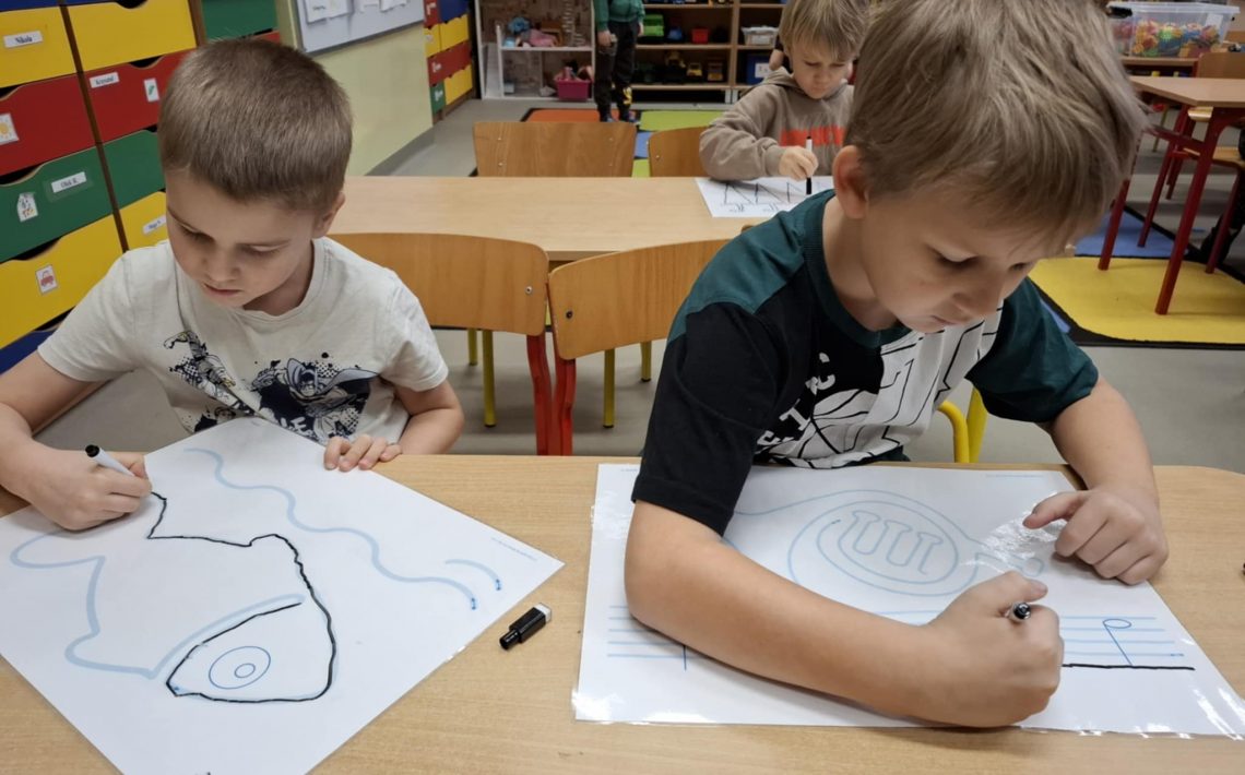 Rysując po śladzie pisakiem ścieralnym, dzieci ćwiczyły nie tylko umiejętności manualne, ale także spostrzegawczość, koncentrację, logiczne myślenie i kojarzenie. A po skończonej zabawie każdy mógł zetrzeć ślady i rozpocząć przygodę od nowa!
