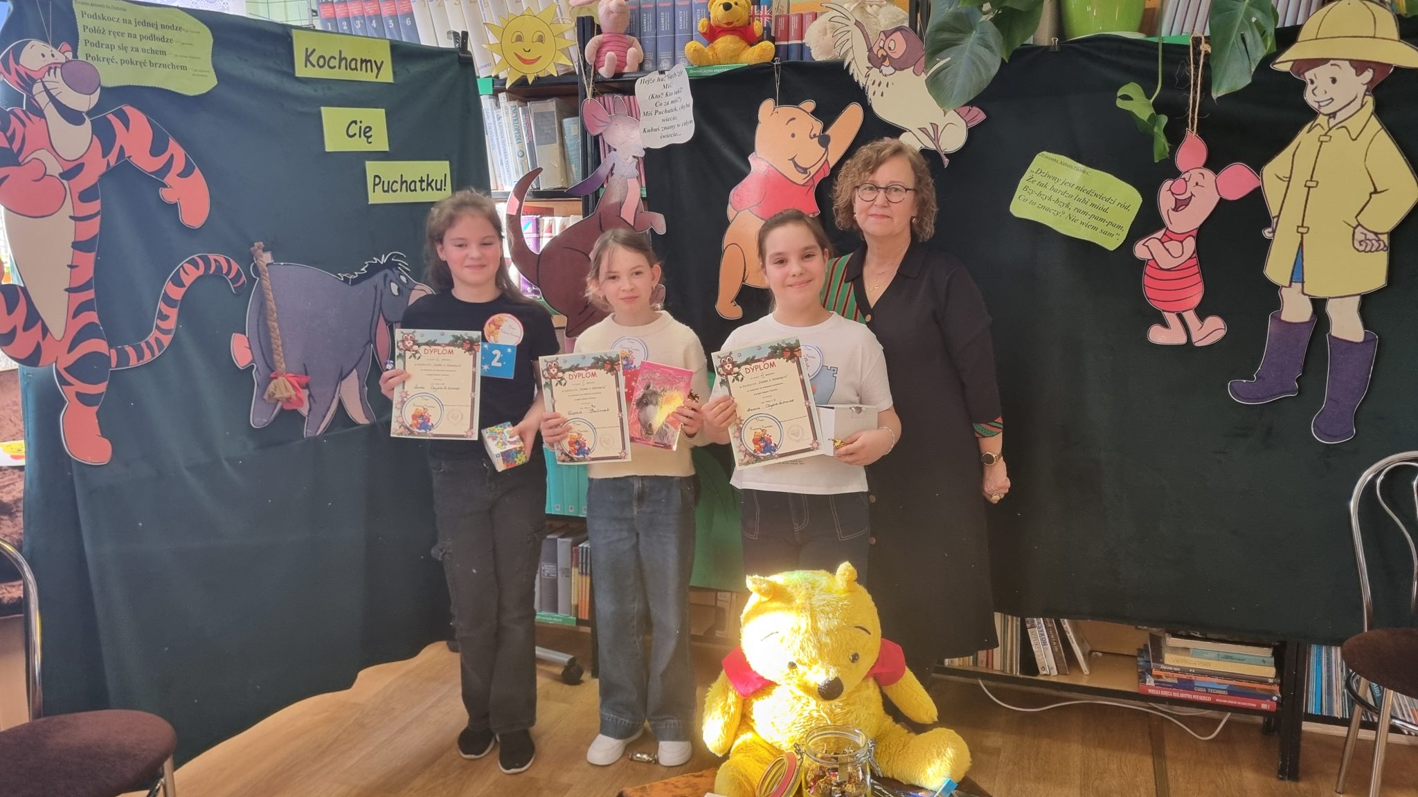 18 stycznia obchodzimy Dzień Kubusia Puchatka. Z tej jakże puchatkowej okazji, 19 stycznia 2026 roku, w bibliotece odbył się konkurs czytelniczy sprawdzający znajomość przygód mieszkańców Stumilowego Lasu pt. „Jeden z dziesięciu”. Konkurs, wzorowany na znanym teleturnieju, skierowany był do uczniów klas trzecich. Do eliminacji zgłosiło