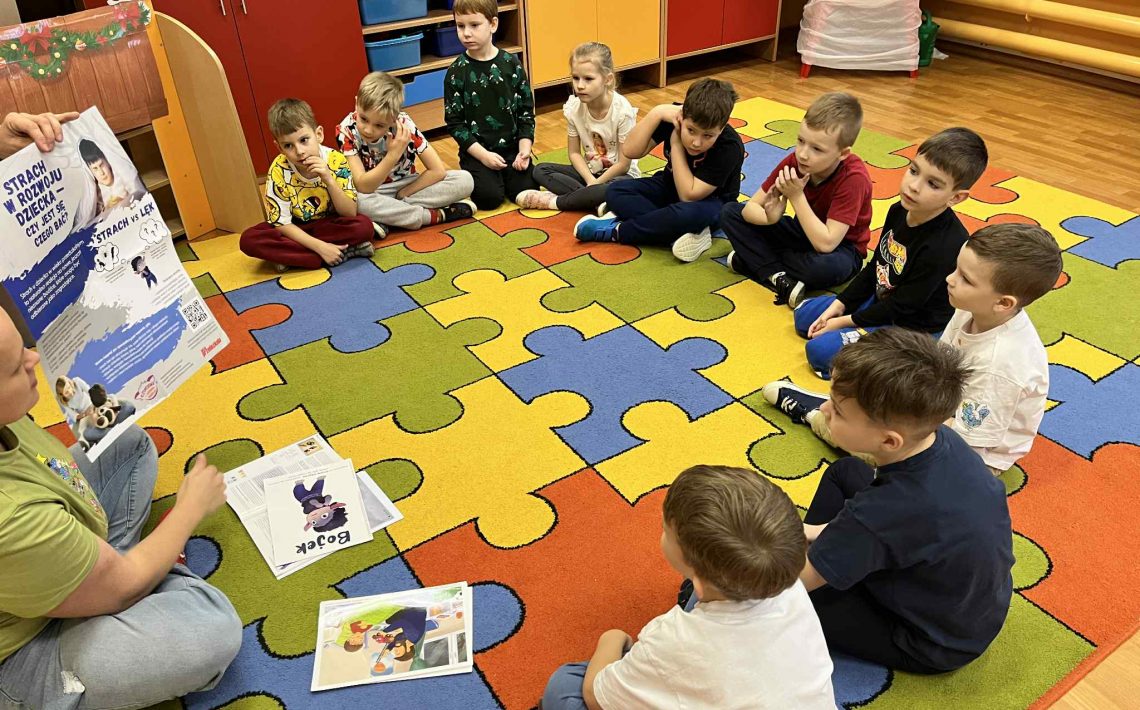 W grudniu dzieci z grupy Sówek podjęły kolejne zadanie z projektu „Czuciaki w krainie emocji”. Tym razem poznały Bojka z Wyspy Strachu, który uczył dzieci oswajać strach i radzić sobie z lękiem. Podczas zajęć przedszkolaki wysłuchały opowiadania o Jasiu, który bał się ciemności. Za pomocą […]