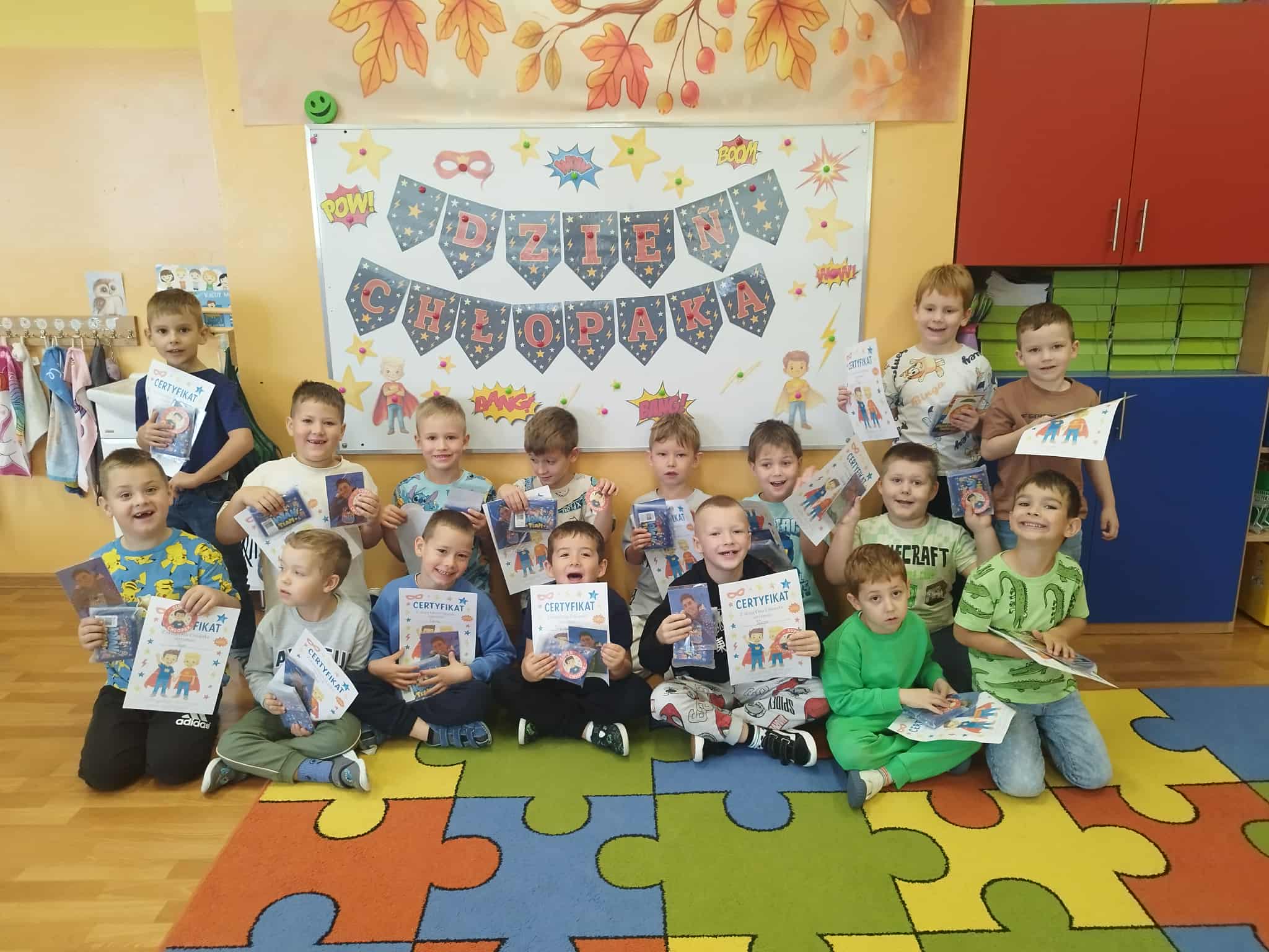 W ostatnim dniu września w naszym przedszkolu obchodziliśmy Dzień Chłopaka. To wyjątkowa okazja, by świętować i podziękować wszystkim Naszym przedszkolnym chłopcom za ich obecność każdego dnia. W każdej grupie odbyły się związane z tym dniem zajęcia oraz gry i zabawy ruchowe. Uwieńczeniem tego dnia było wręczenie dzieciom drobnych upominków.