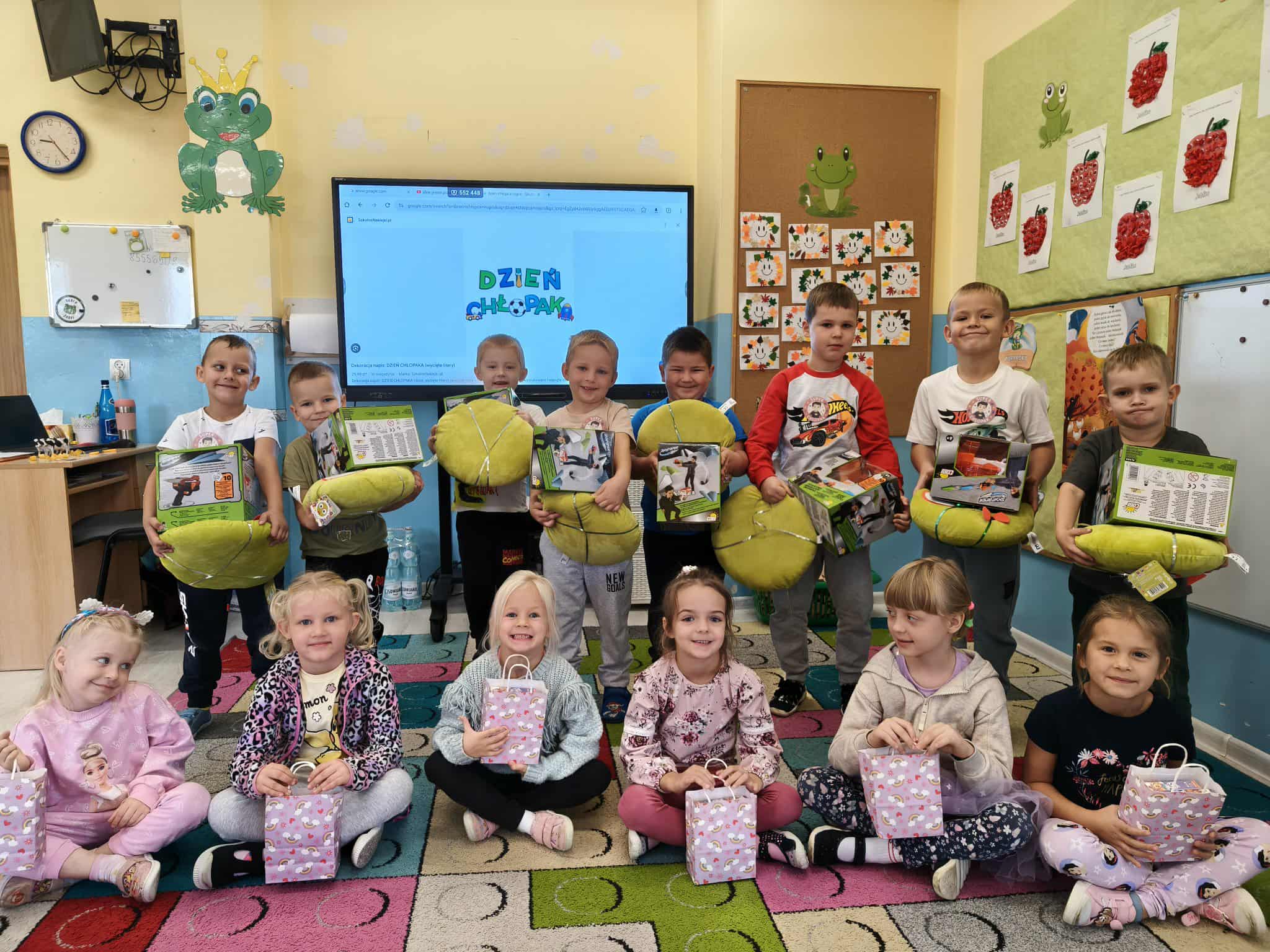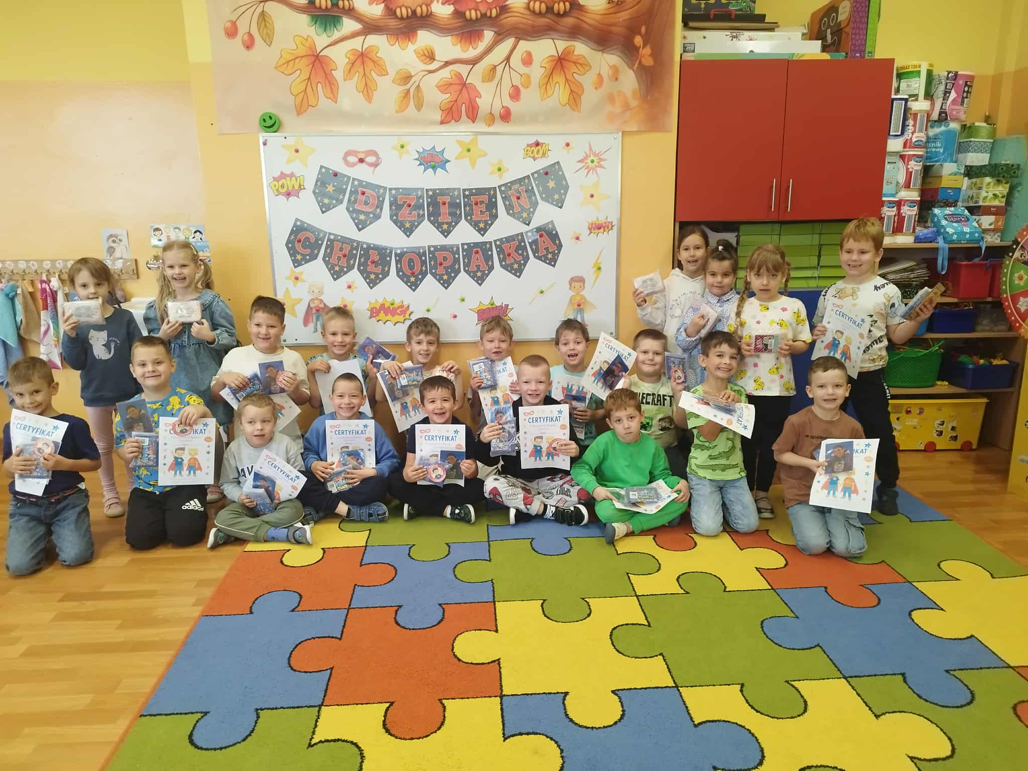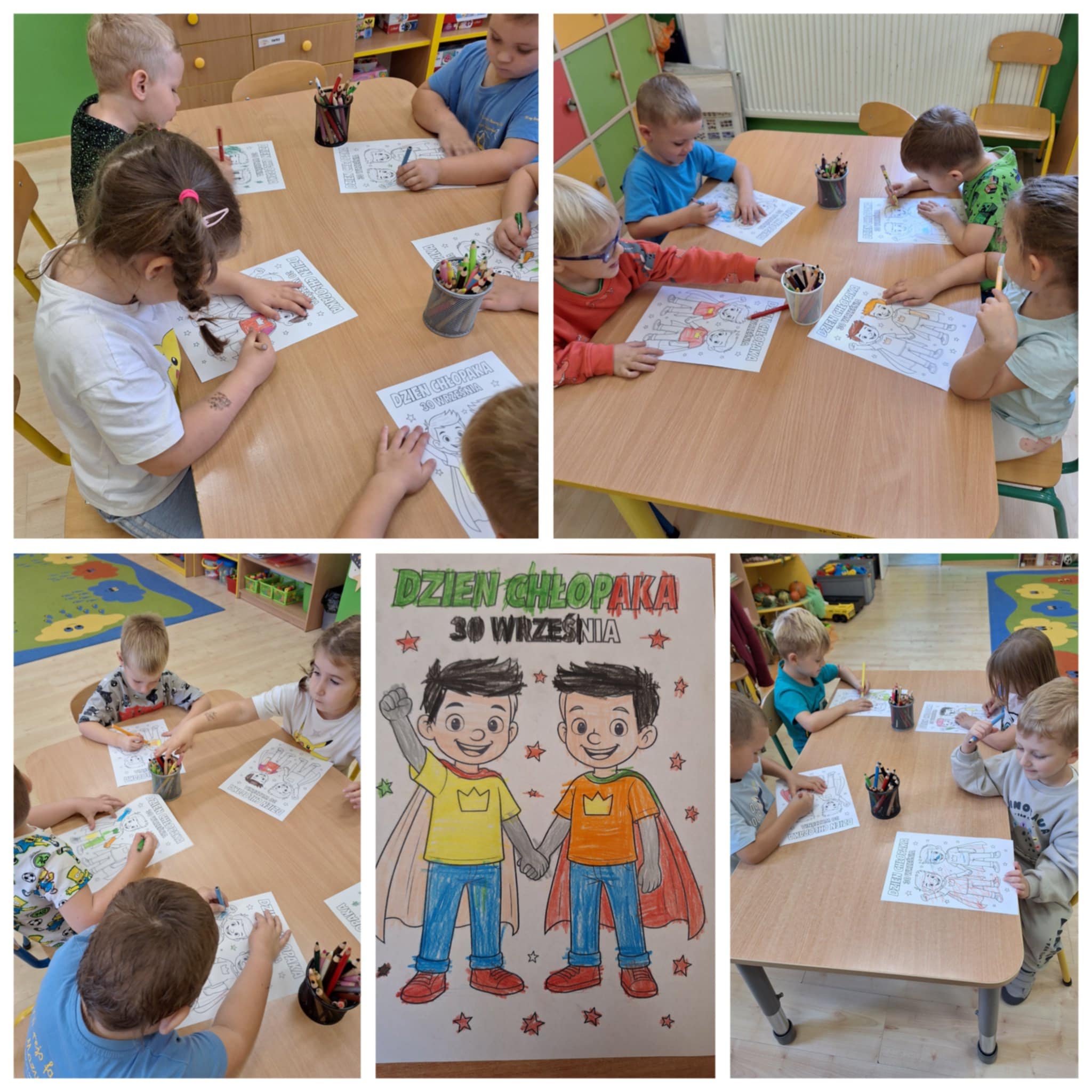 W ostatnim dniu września w naszym przedszkolu obchodziliśmy Dzień Chłopaka. To wyjątkowa okazja, by świętować i podziękować wszystkim Naszym przedszkolnym chłopcom za ich obecność każdego dnia. W każdej grupie odbyły się związane z tym dniem zajęcia oraz gry i zabawy ruchowe. Uwieńczeniem tego dnia było wręczenie dzieciom drobnych upominków.