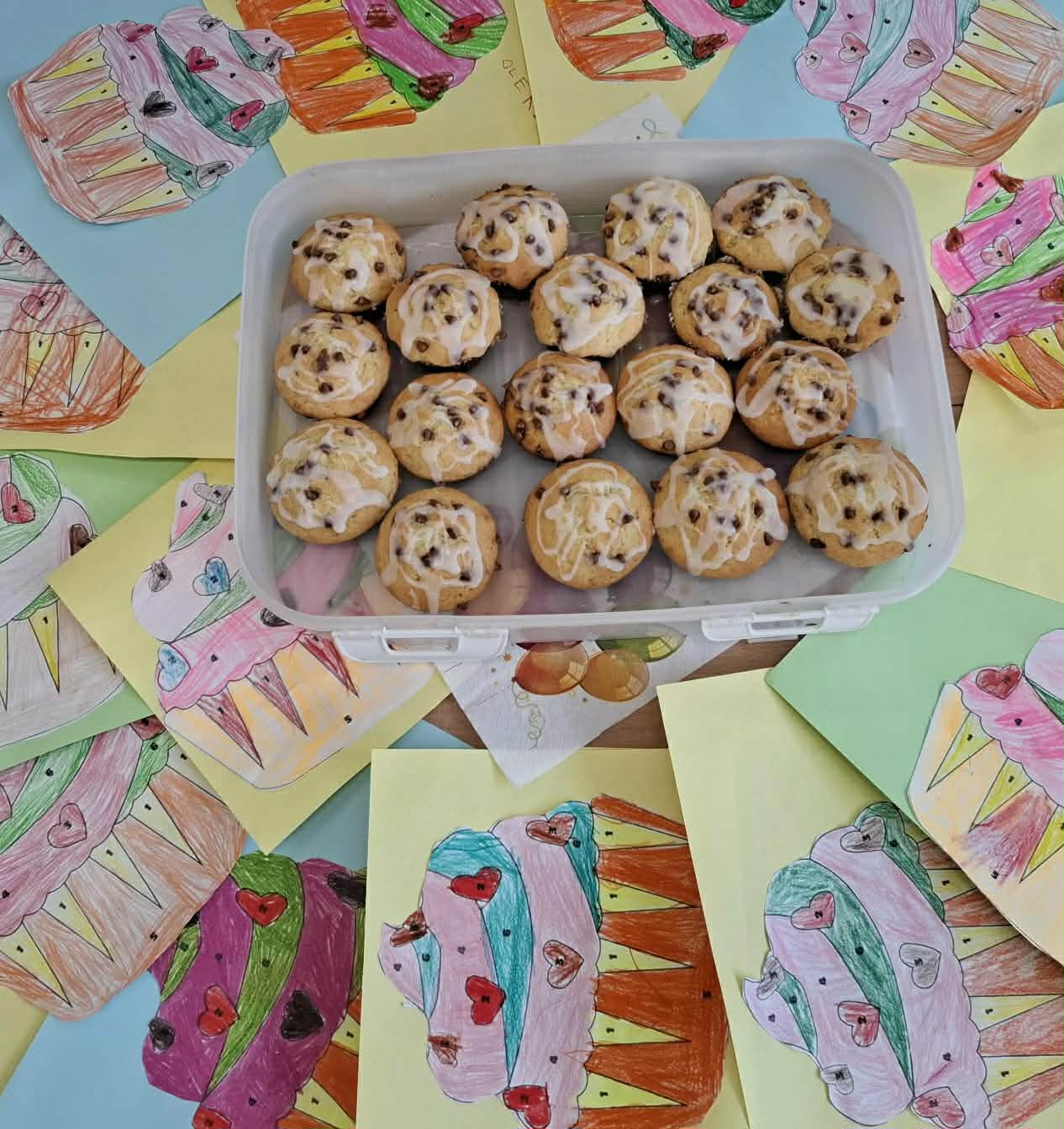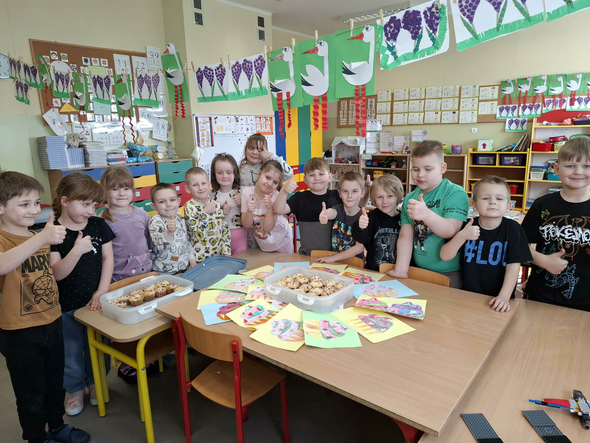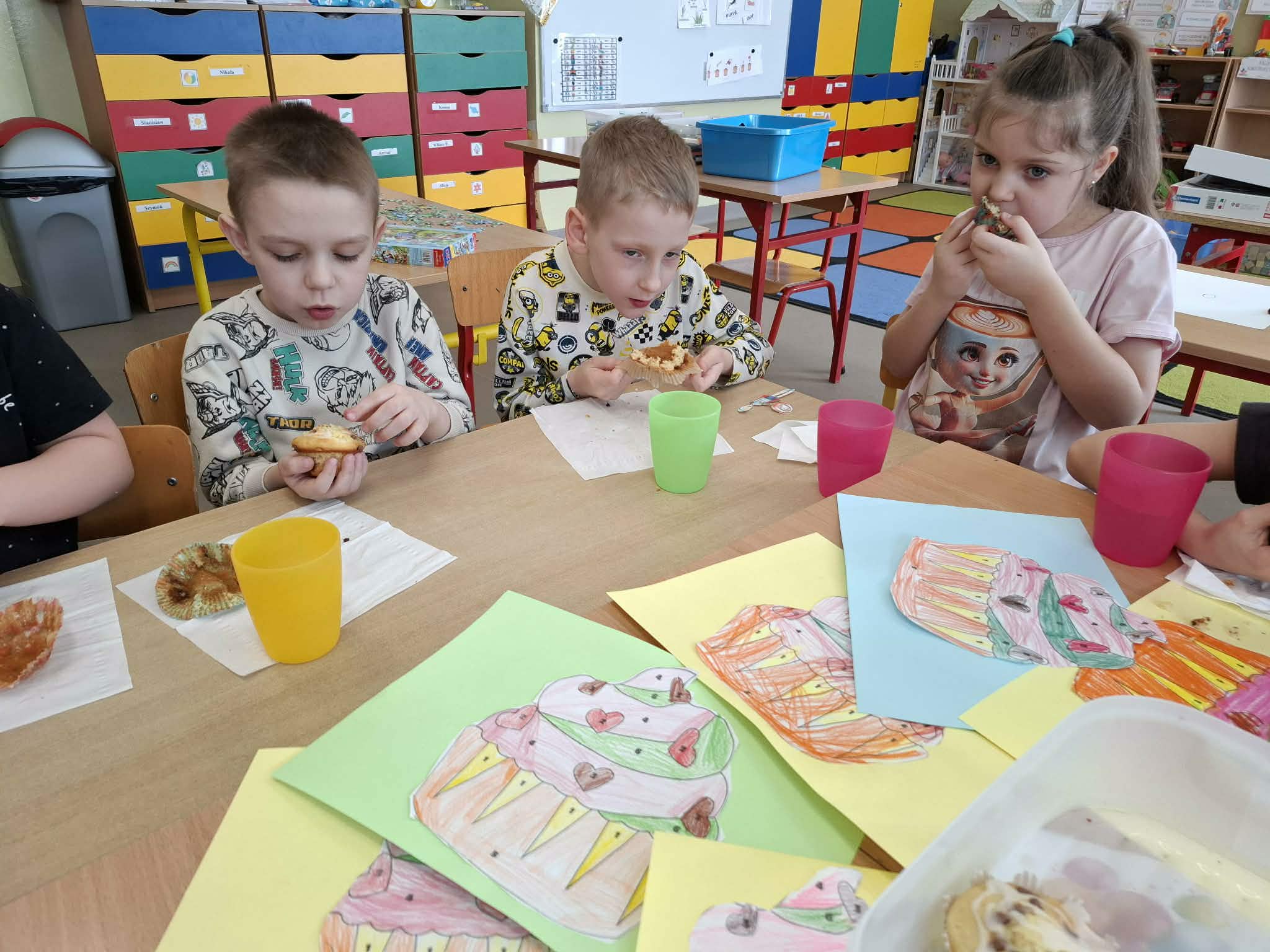 Co roku 30 marca obchodzony jest Światowy Dzień Muffinka. To nieformalne święto popularnych słodkich (lub wytrawnych) babeczek, które wywodzą się z Anglii z przełomu X i XI wieku. Dzisiejsze święto stało się idealną okazją do wykonania pracy plastycznej oraz zasmakowania rozpływających się w ustach muffinek. Pięknie pachnącą i smaczną babeczkę każdy zajadał z uśmiechem na twarzy. Dziękujemy mamie Olka R. za pyszne i zdrowe babeczki.