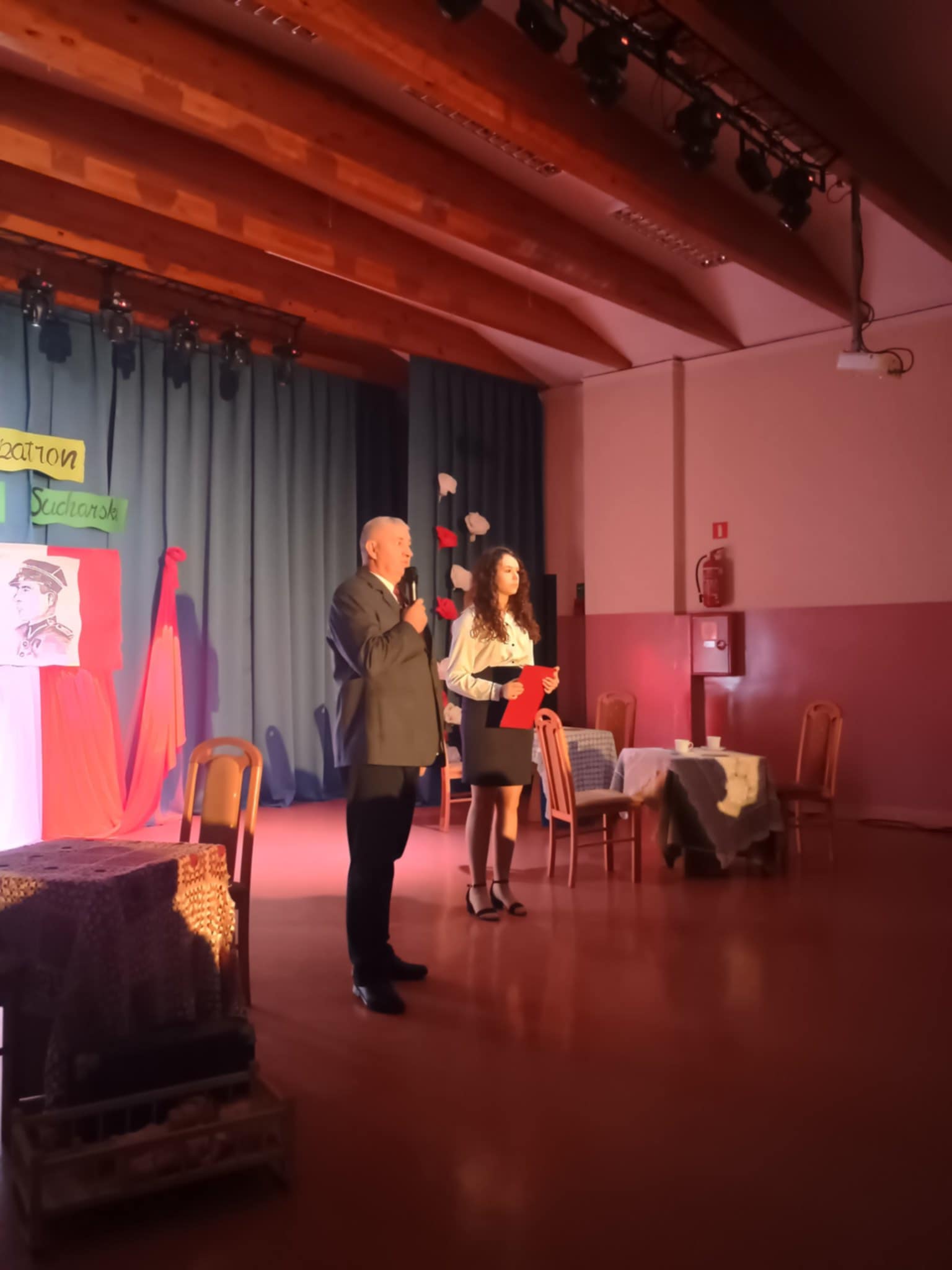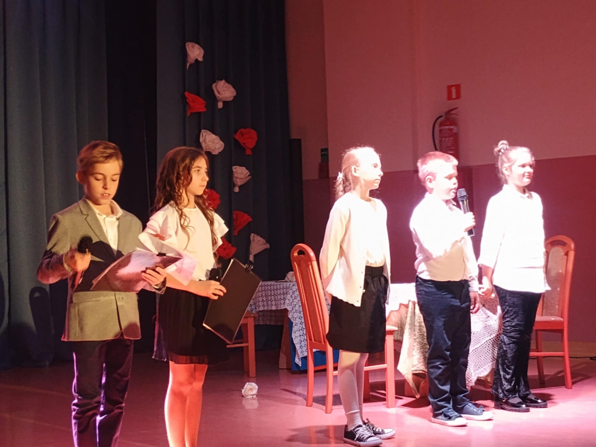 Z tej okazji uczniowie klas 4a,4b, 7a pod kierunkiem p. A. Jezierskiej, p. M. Hejman, p. B. Gawrońskiej i p. T. Cybulskiego przedstawili program artystyczny upamiętniający wybuch II wojny światowej oraz patriotyzm i odwagę obrońców Westerplatte.
