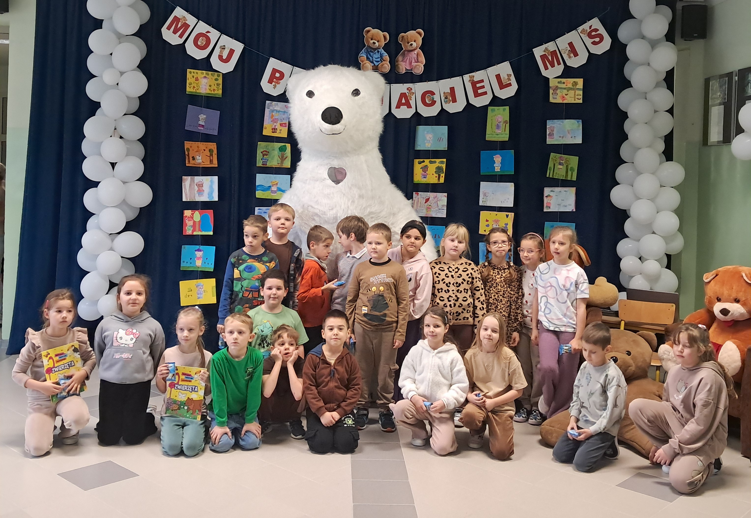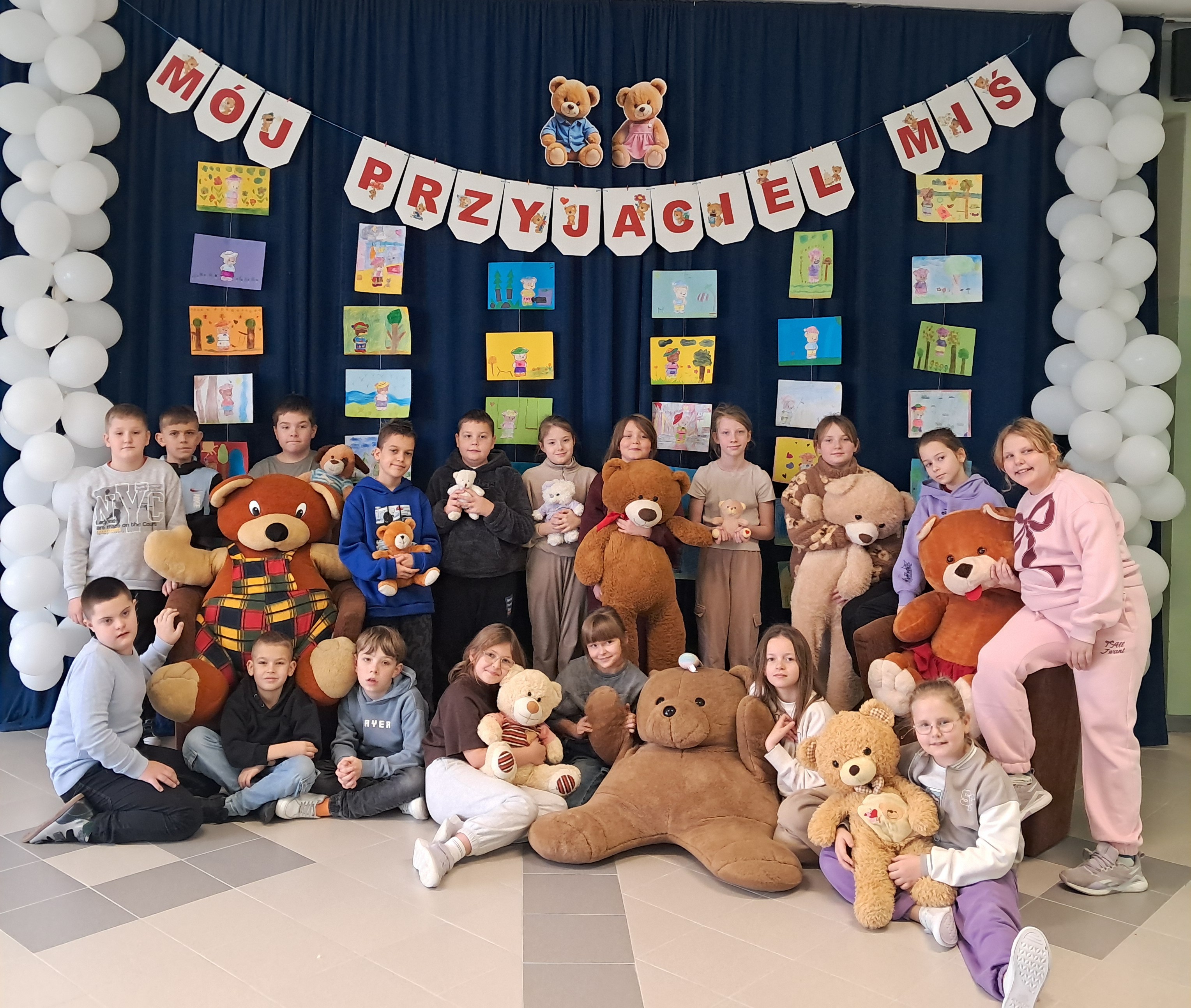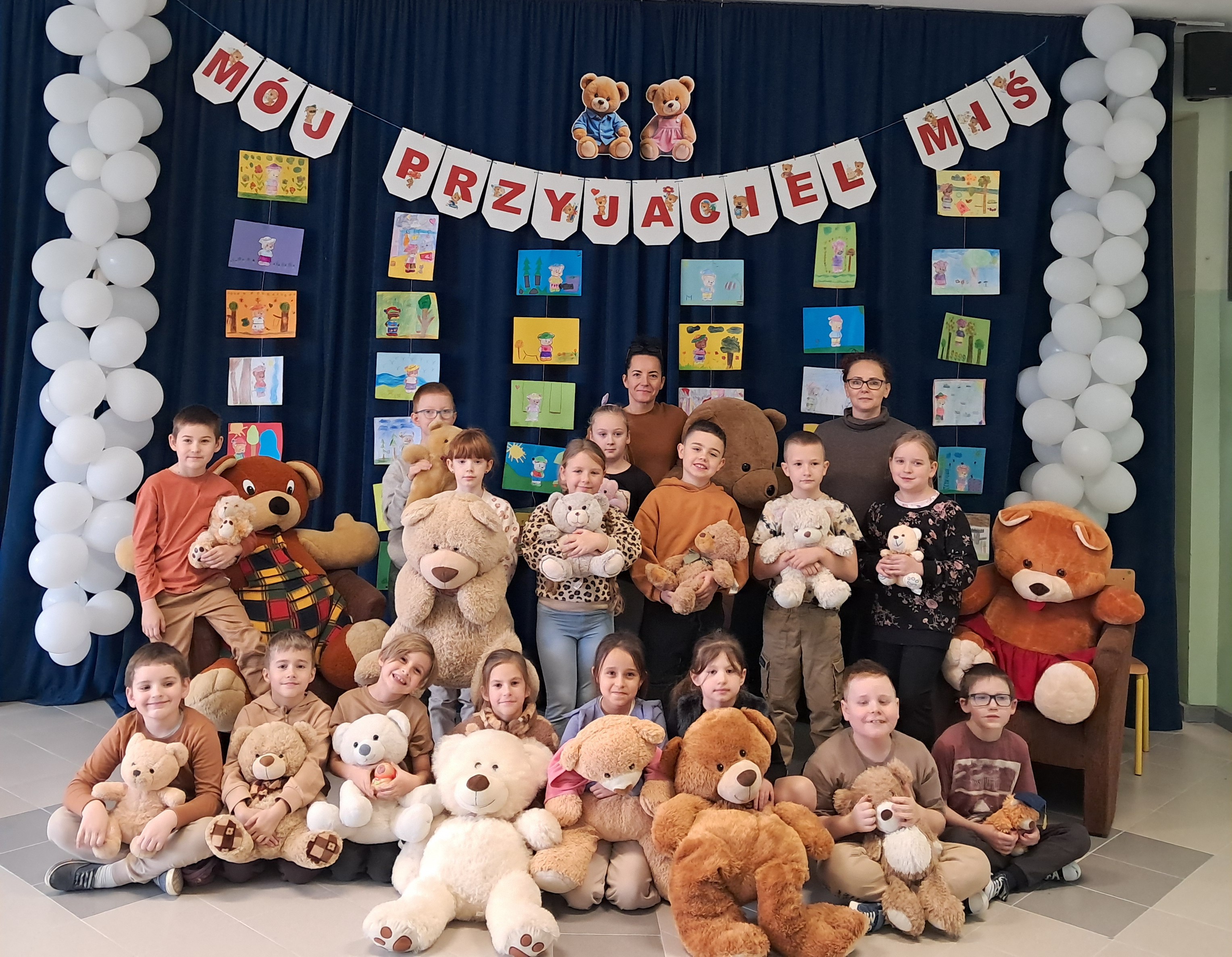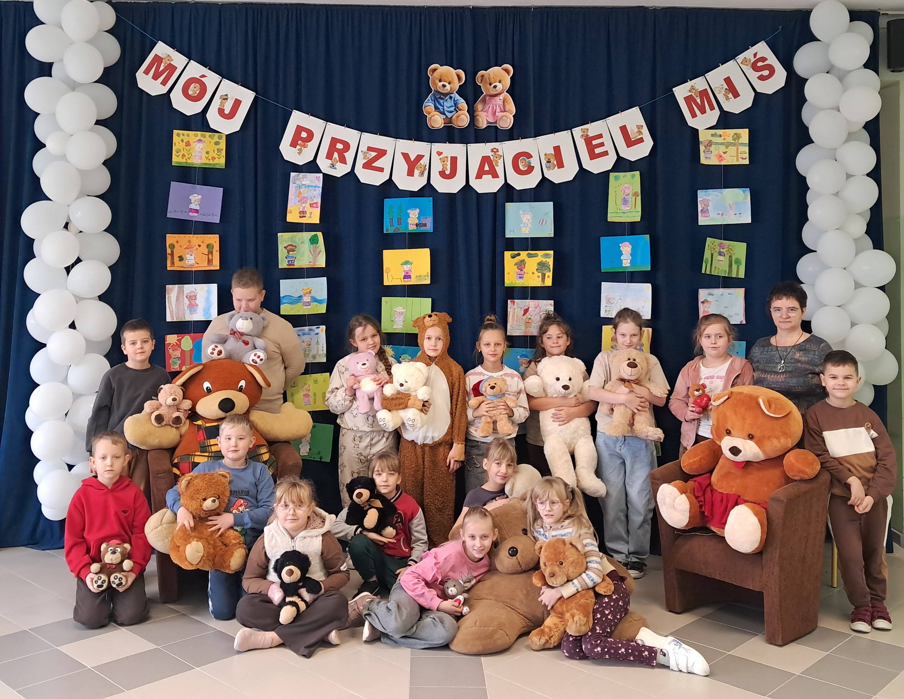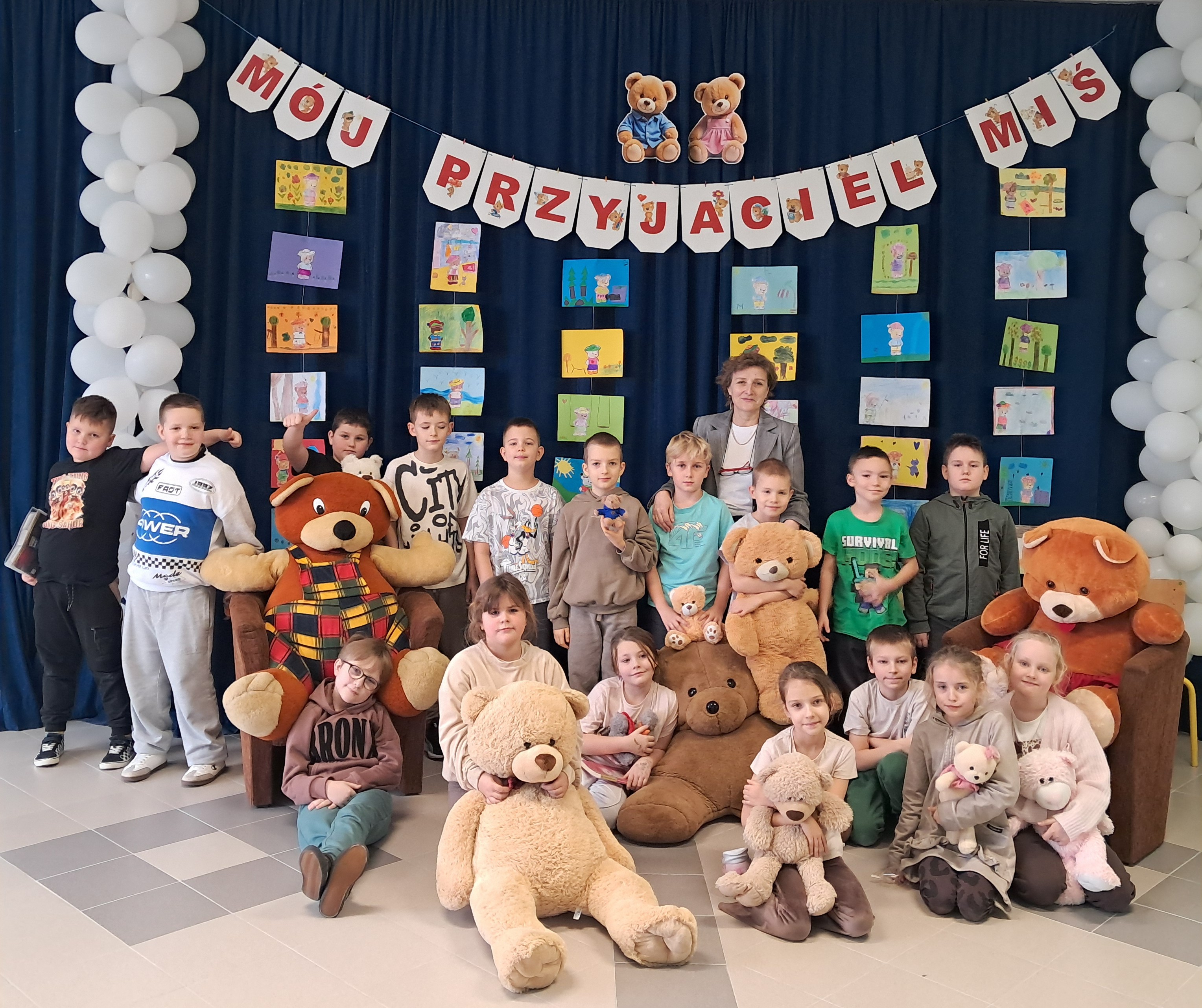 W trakcie spotkania wręczono także nagrody w konkursie plastycznym dla klas pierwszych pt. „Mój przyjaciel miś”. Kolorowe prace dzieci stały się piękną dekoracją i dodały misiowej scenografii jeszcze więcej bajkowego uroku.