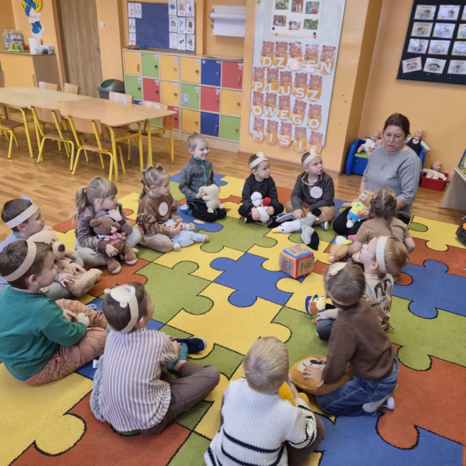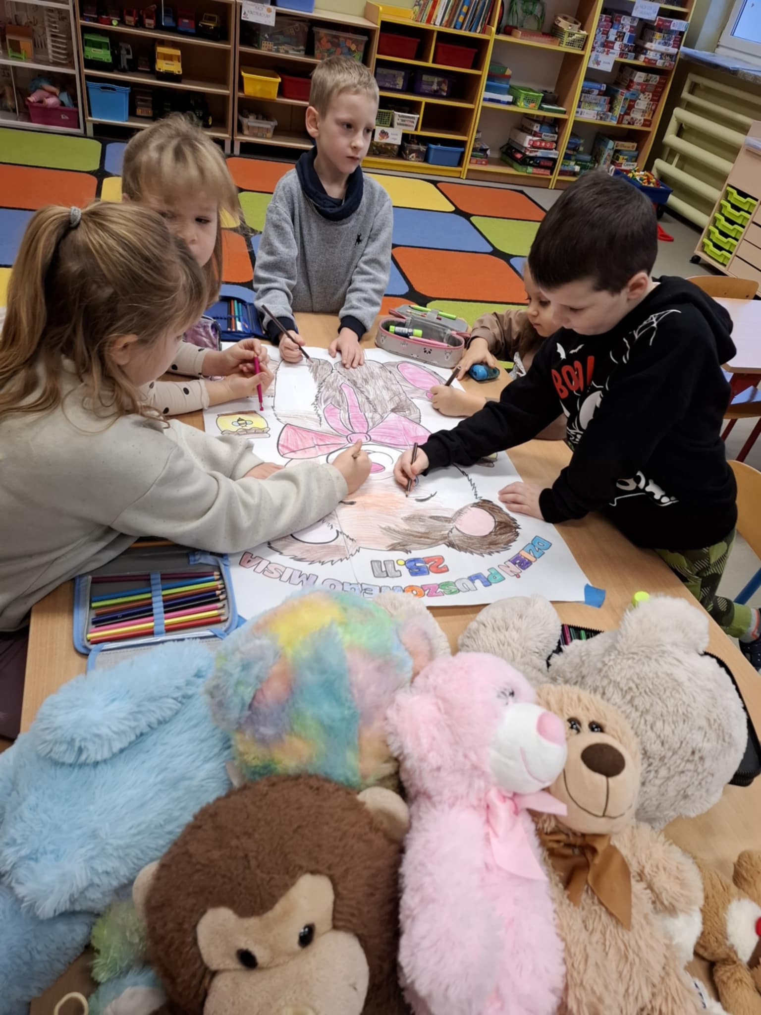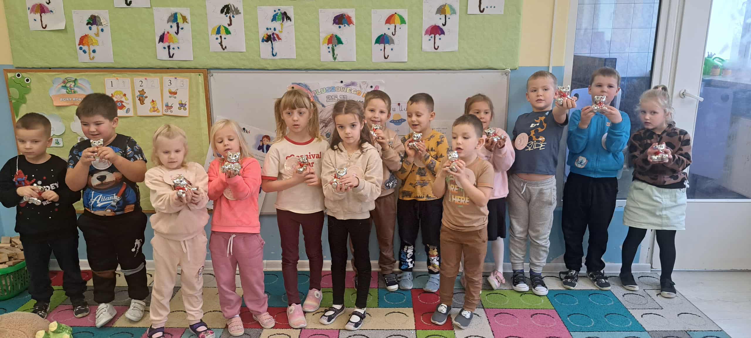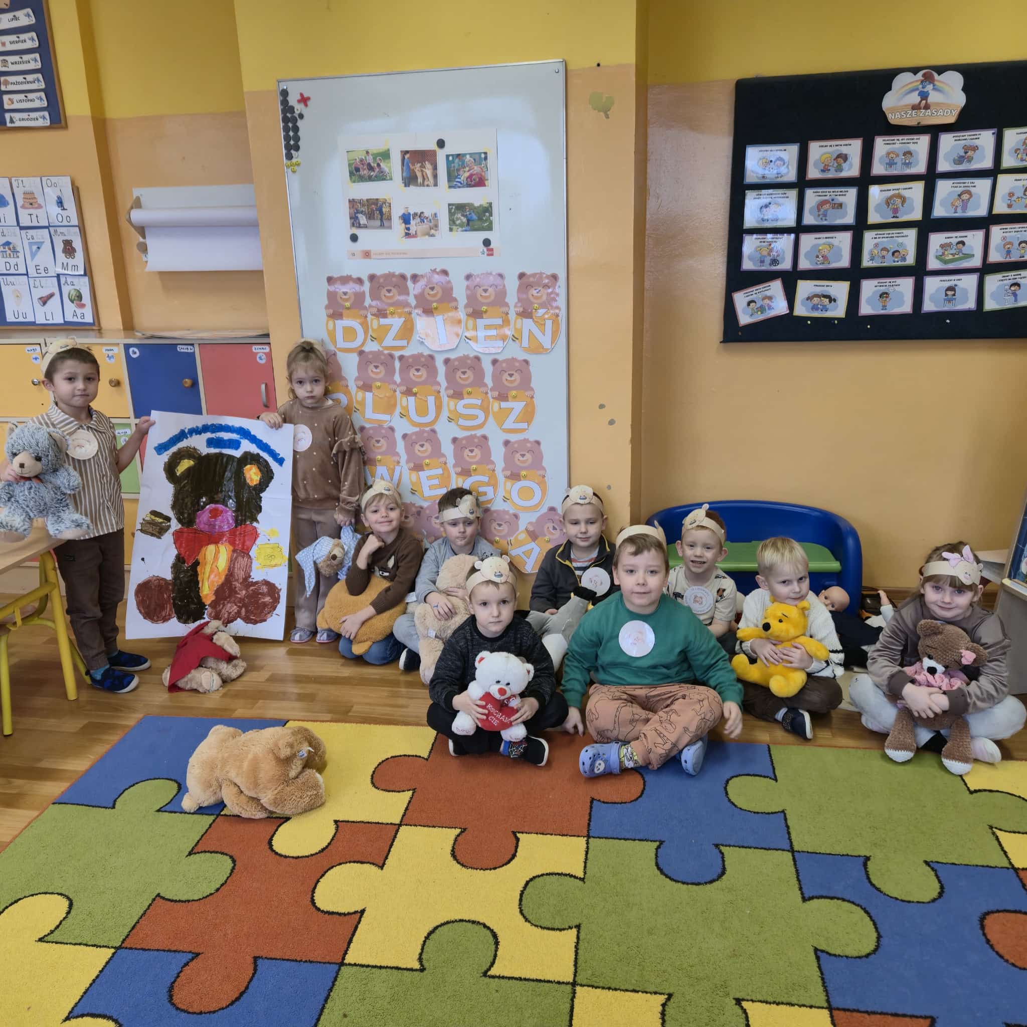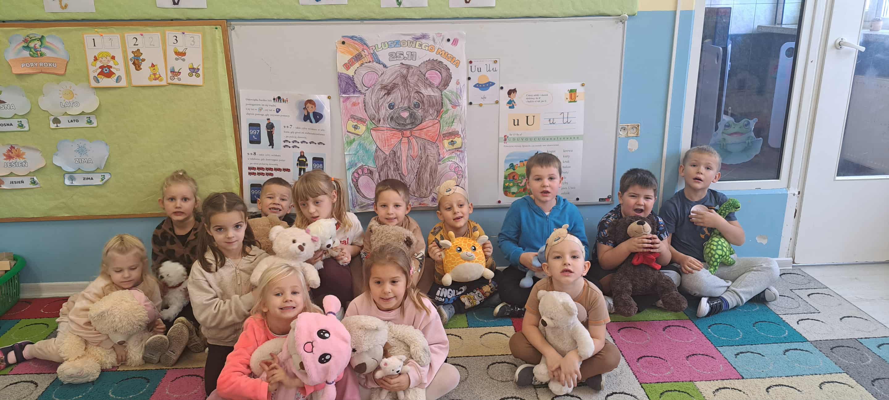 25 listopada obchodzony jest Światowy Dzień Pluszowego Misia – święto przypominające o tym, skąd wziął się pierwszy pluszowy miś i jak szybko stał się ukochaną zabawką dzieci na całym świecie. W tym roku przedszkolaki świętowały ten wyjątkowy dzień we wspólnym gronie. Dzieci, śpiewając piosenki, przywitały specjalnego gościa. Mały niedźwiadek przywędrował z koszem pełnym smakołyków, wysłuchał pięknie śpiewanych piosenek, potańczył,  a następnie wspólnie z dziećmi pozował do pamiątkowych zdjęć. W każdej grupie na zajęciach królował w tym dniu miś.