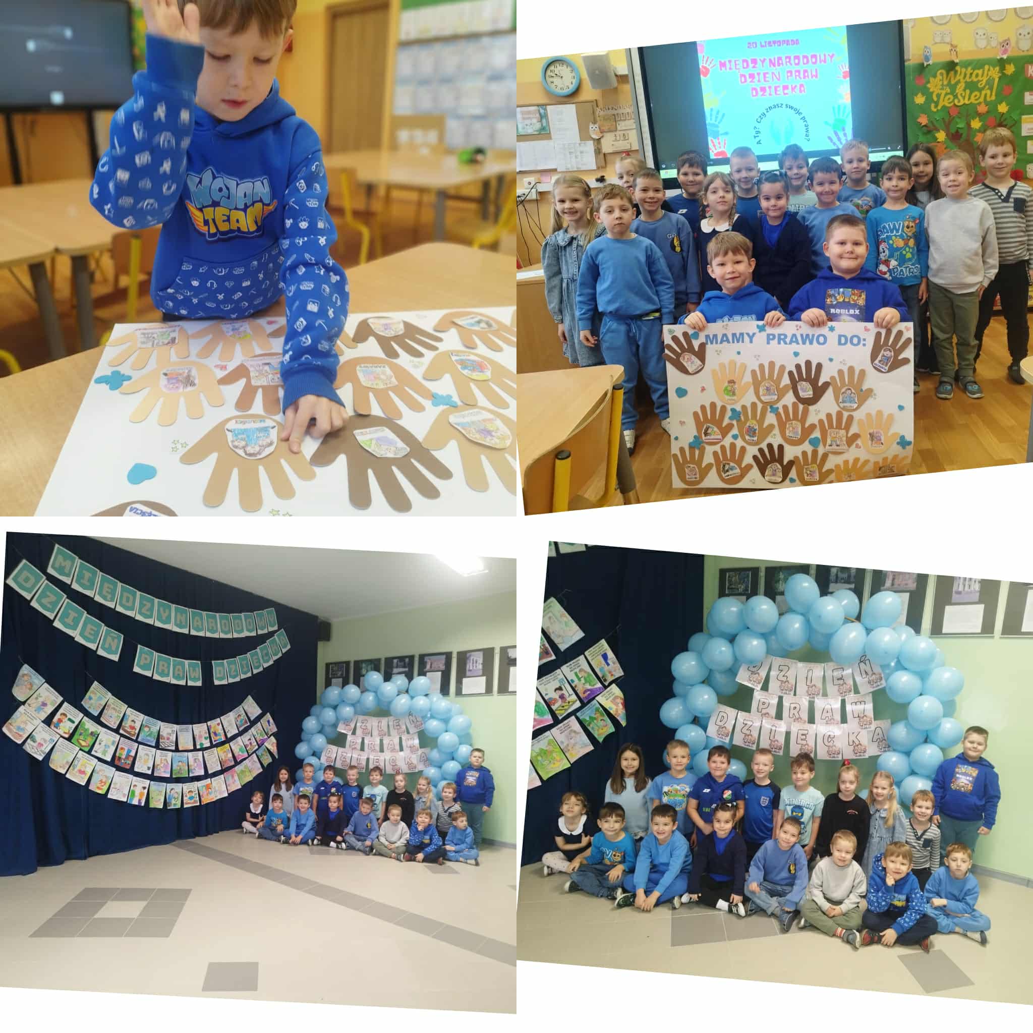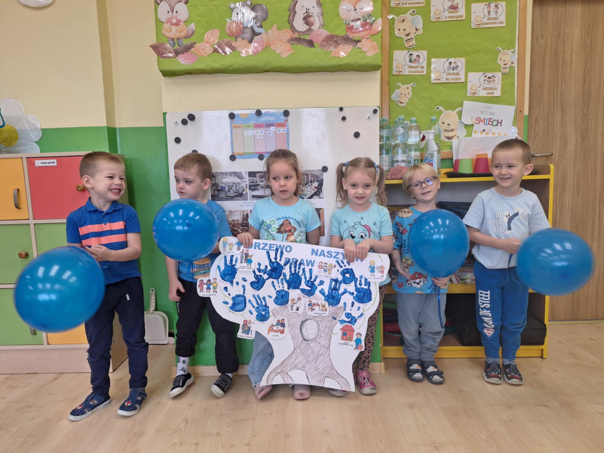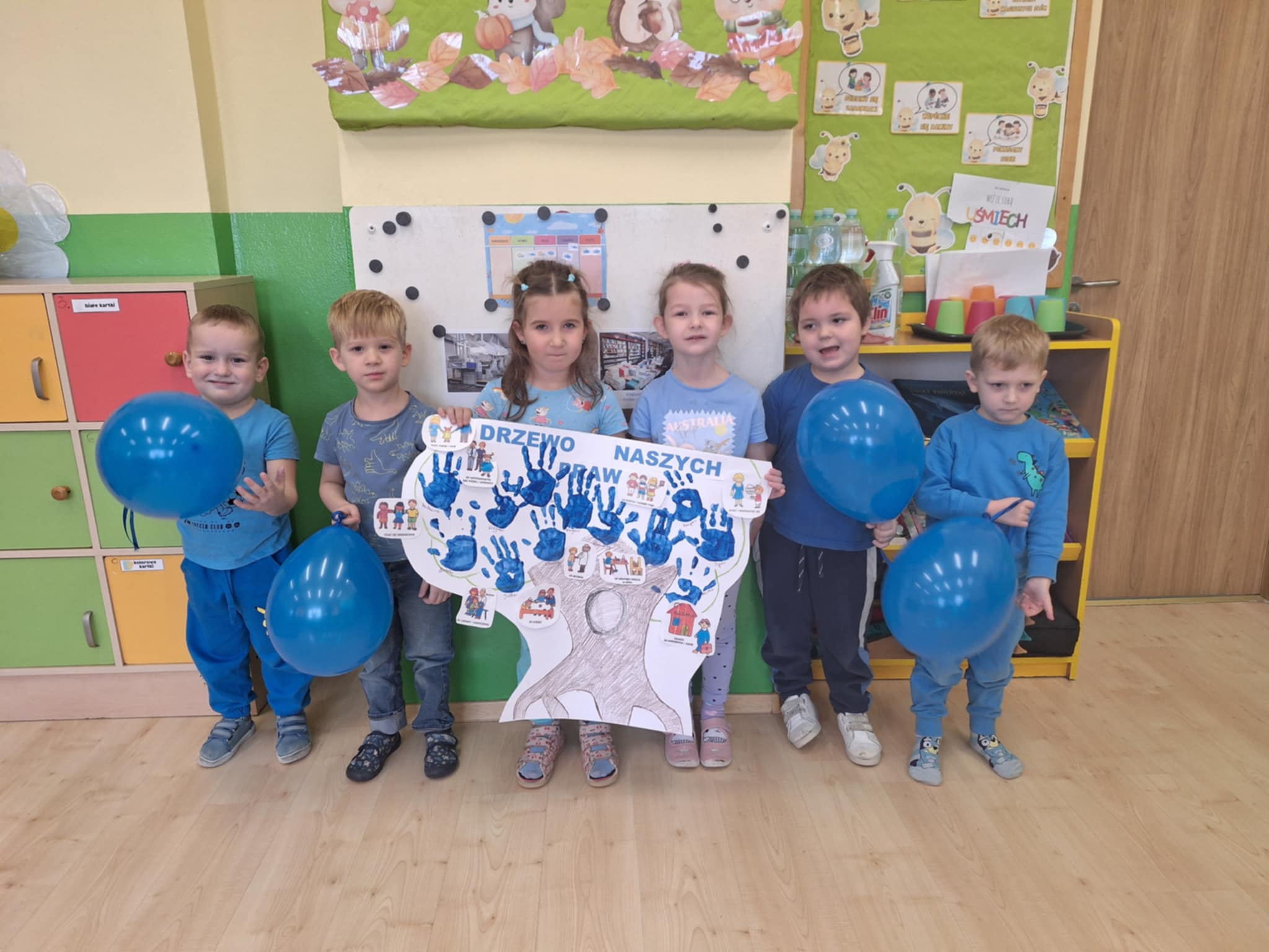 20 listopada obchodzony jest Międzynarodowy Dzień Praw Dziecka. Jest to dzień podkreślający znaczenie praw najmłodszych oraz okazja do okazywania solidarności dzieciom na całym świecie, których prawa są naruszane. Również nasze przedszkole włączyło się do tej akcji, w której dzieci symbolicznie ubrane na niebiesko poznawały swoje prawa i brały udział w różnych zabawach . Przedszkolaki z grup Sówek i Lisków uczestniczyły w apelu przygotowanym z tej okazji przez klasy trzecie. Wszystkie dzieci wykonały różnorodne prace plastyczne, plakaty, a na pamiątkę każde z dzieci otrzymało symbolicznego niebieskiego balonika. To był bardzo radosny dzień ale z poważnym przesłaniem