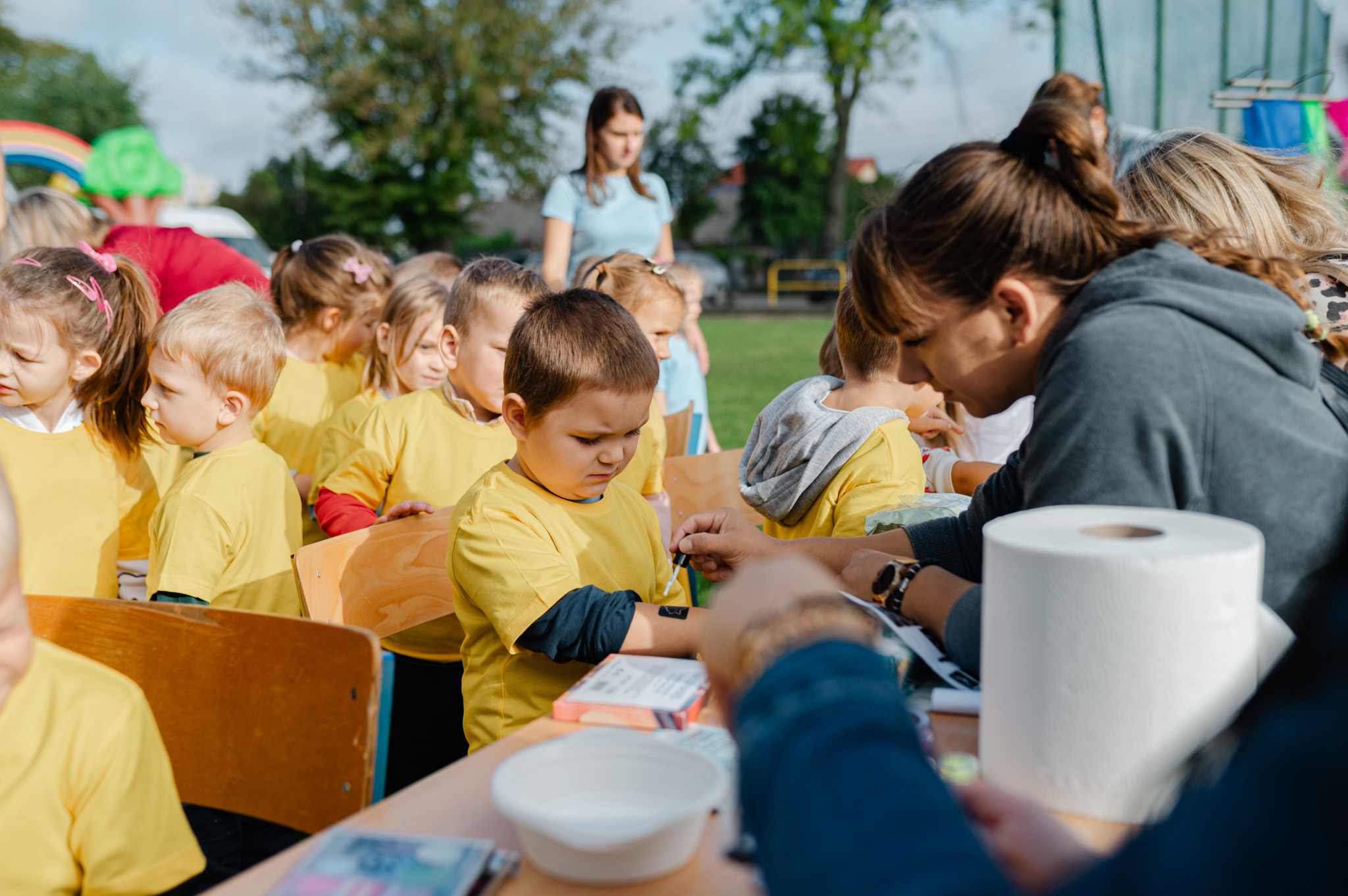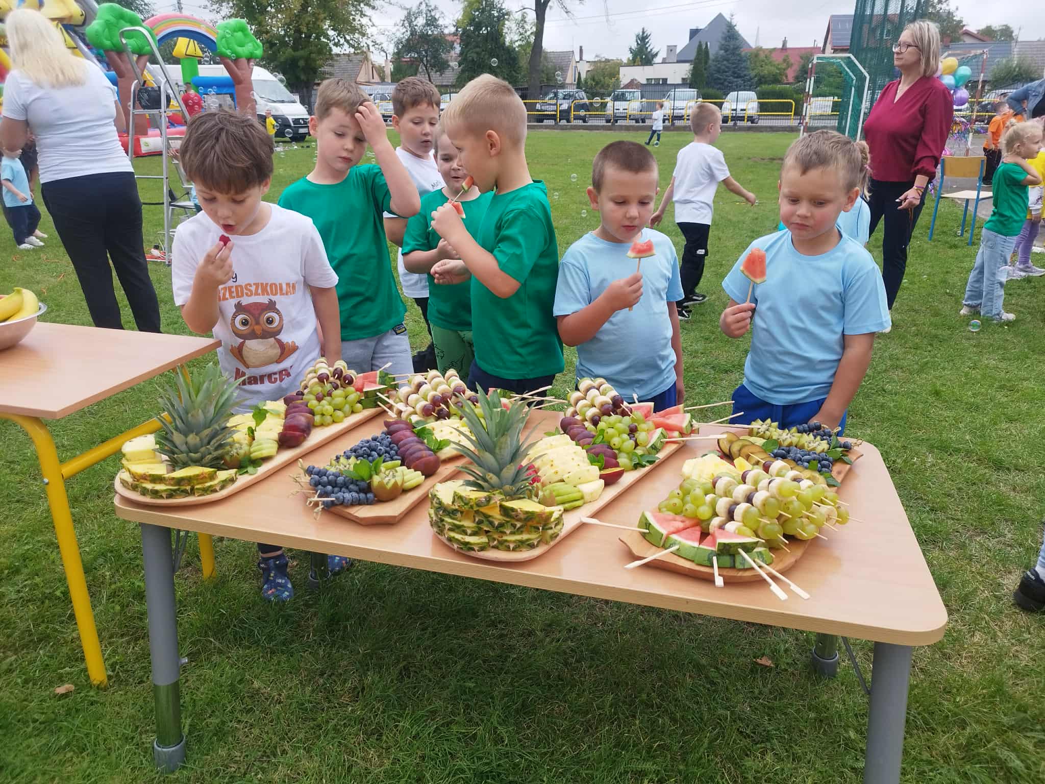 Dnia 19 września w Naszej Placówce obchodziliśmy Ogólnopolski Dzień Przedszkolaka. Dla naszych najmłodszych wychowanków to czas świętowania, zabawy i czerpania radości z bycia dzieckiem. W tym roku główną atrakcją były zjeżdżalnie z „Alei Marzeń” oraz niespodzianki przygotowane przez Radę Rodziców: kolorowa wata cukrowa, popcorn, brokatowe tatuaże oraz barwne warkoczyki, za które serdecznie dziękujemy. Podziękowania kierujemy również do KGW „Nasza Pasja” w Konarach za przygotowanie pysznych i zdrowych owoców. Zabawę uświetnił prezent od Pani Przewodniczącej Izabeli Grzegórskiej, który będzie nam towarzyszył na pewno przez długi czas.