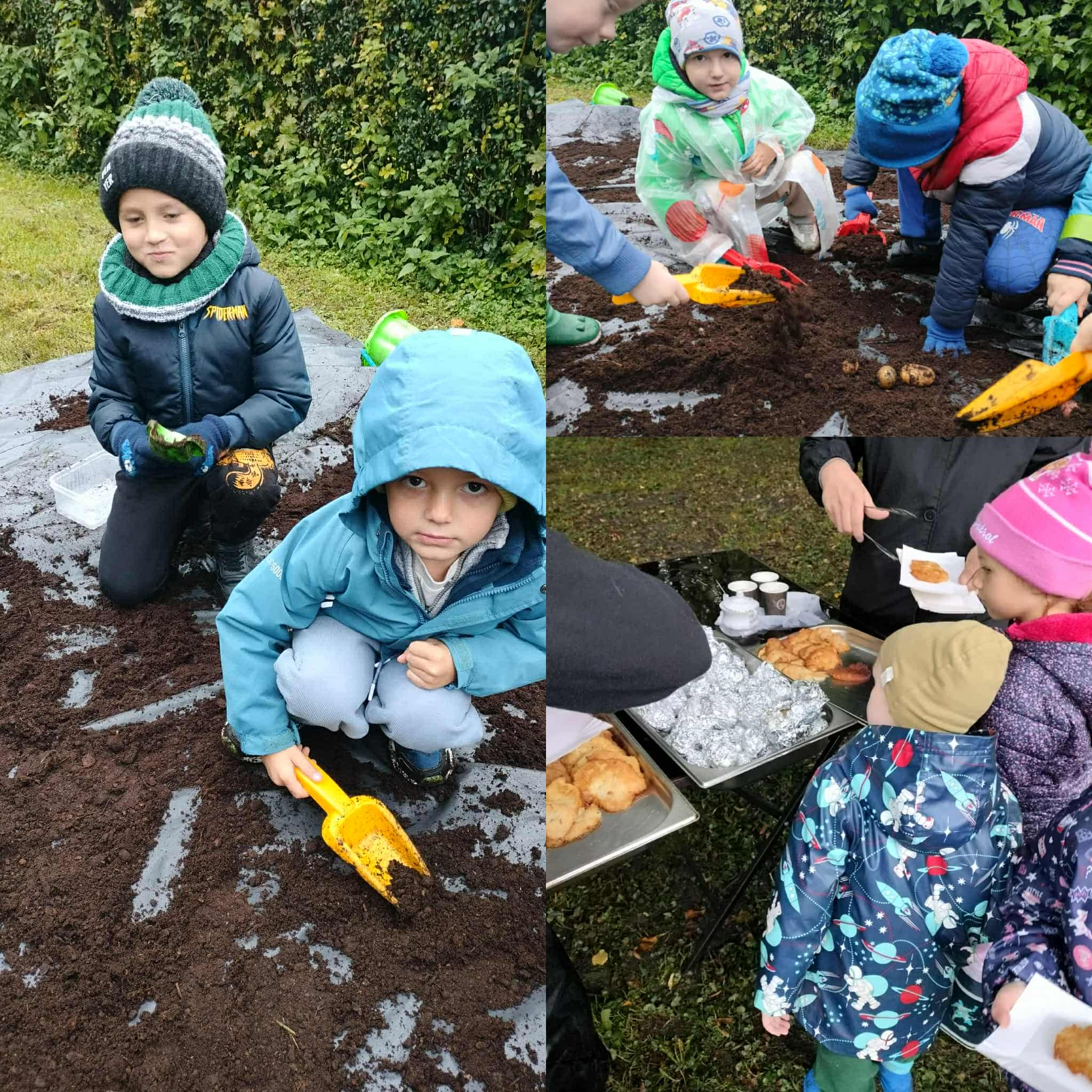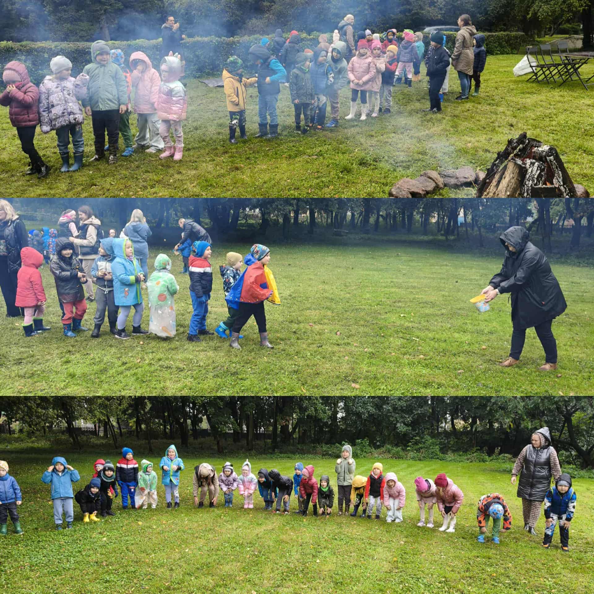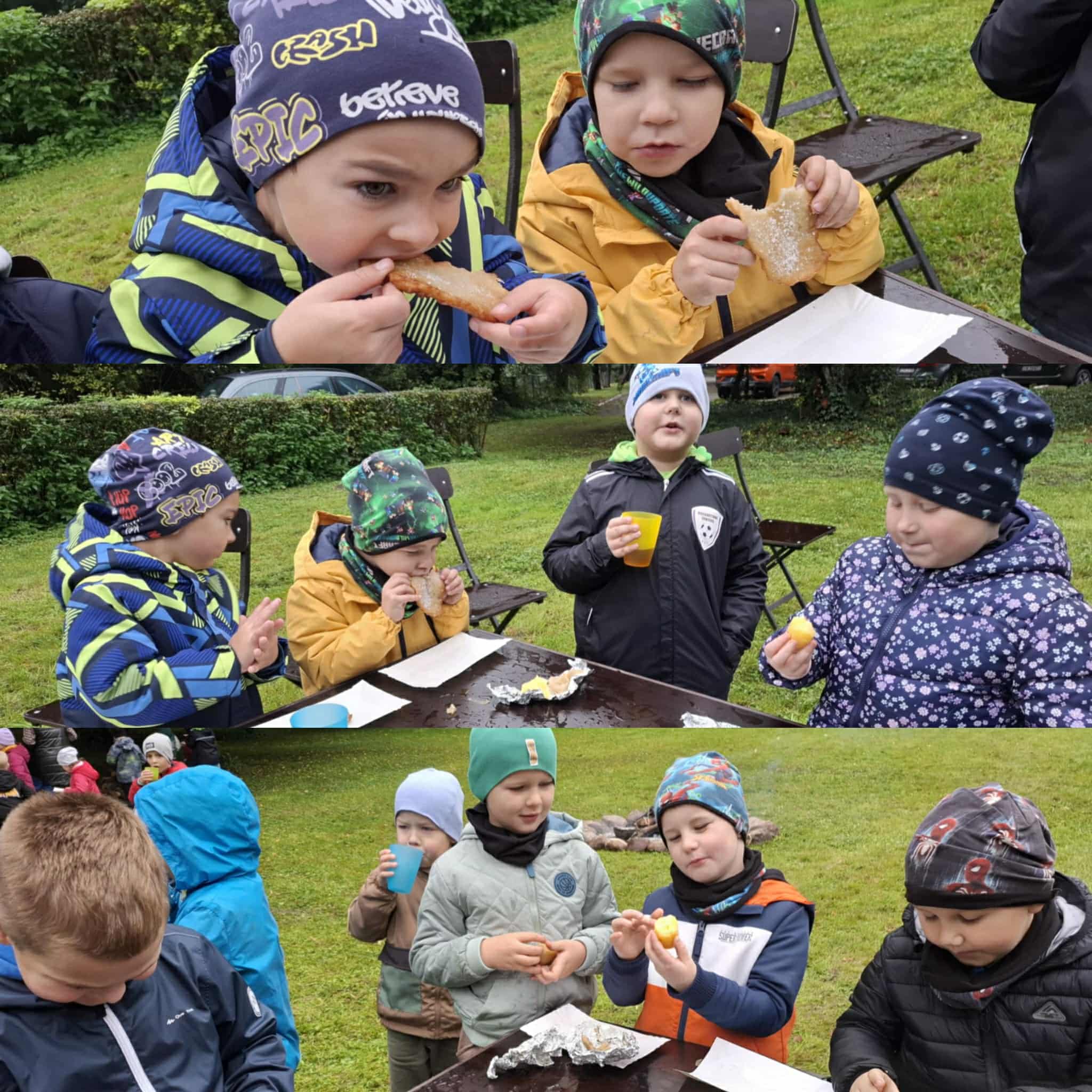 Święto Ziemniaka to już tradycja w naszym przedszkolu. W tym roku pogoda spłatała nam figla, deszcz jednak nas nie przestraszył i było wspaniale. Zabawy sportowe i zajęcia w dniu dzisiejszym były skoncentrowane wokół ziemniaka oraz wspaniałego ogniska- dzięki życzliwości i udostępnieniu miejsca przez OHZ w Osięcinach. Po męczących konkurencjach dzieci mogły skosztować pieczonego ziemniaka, placków ziemniaczanych oraz frytek. Bardzo dziękujemy wszystkim zaangażowanym w pomoc tego dnia.
