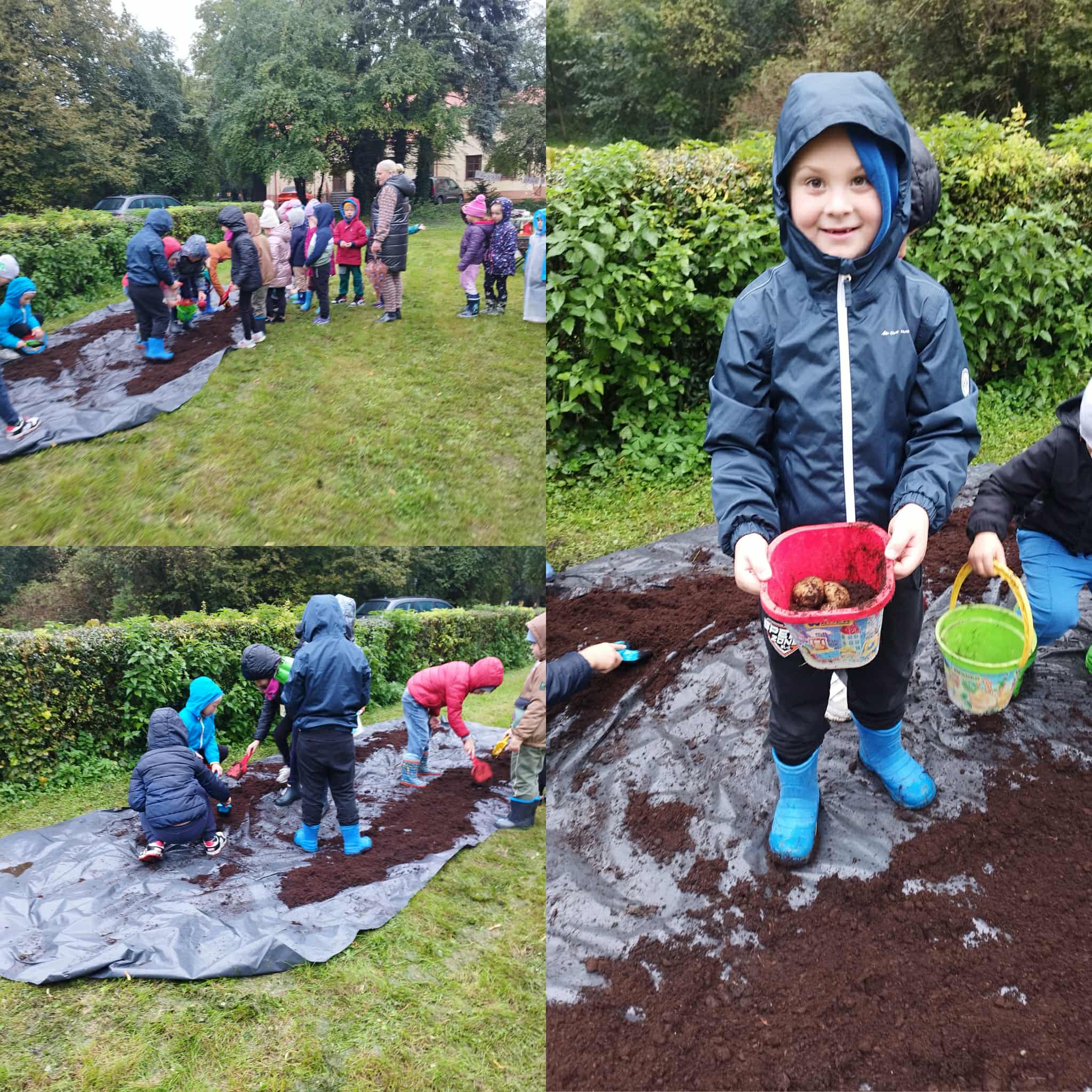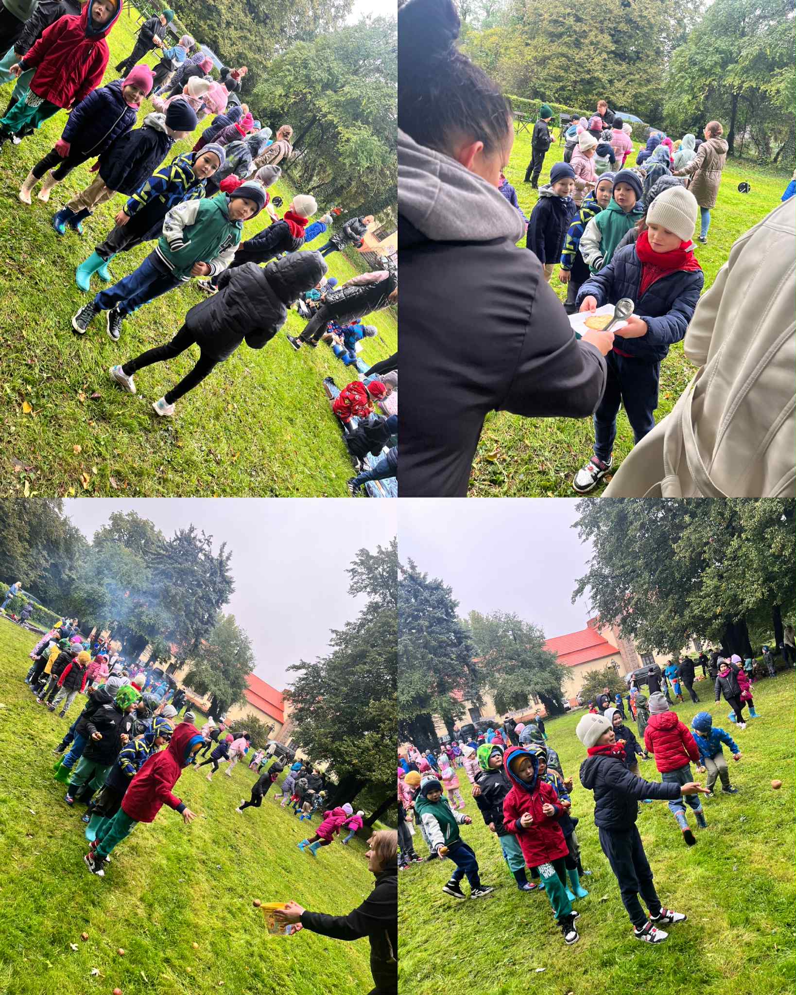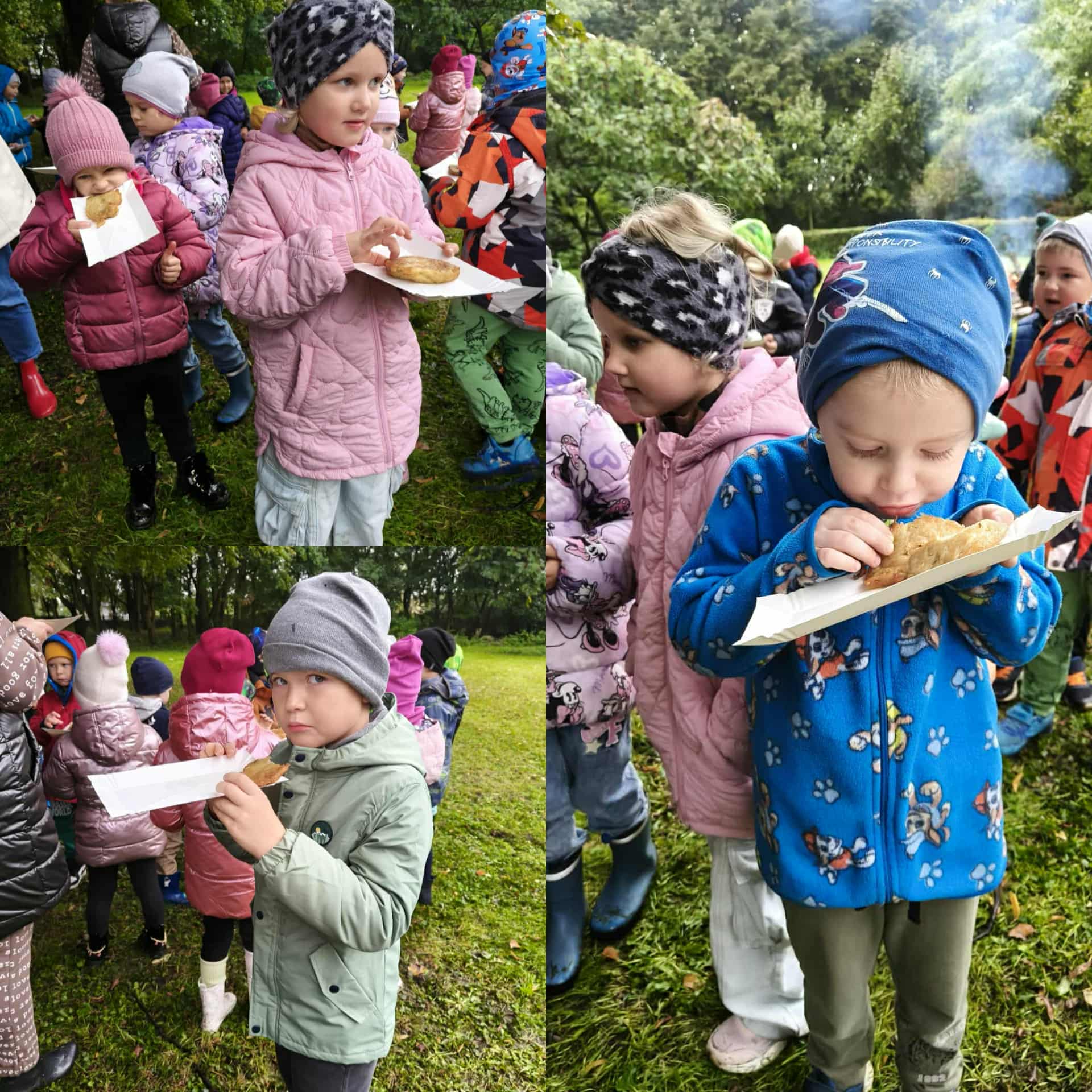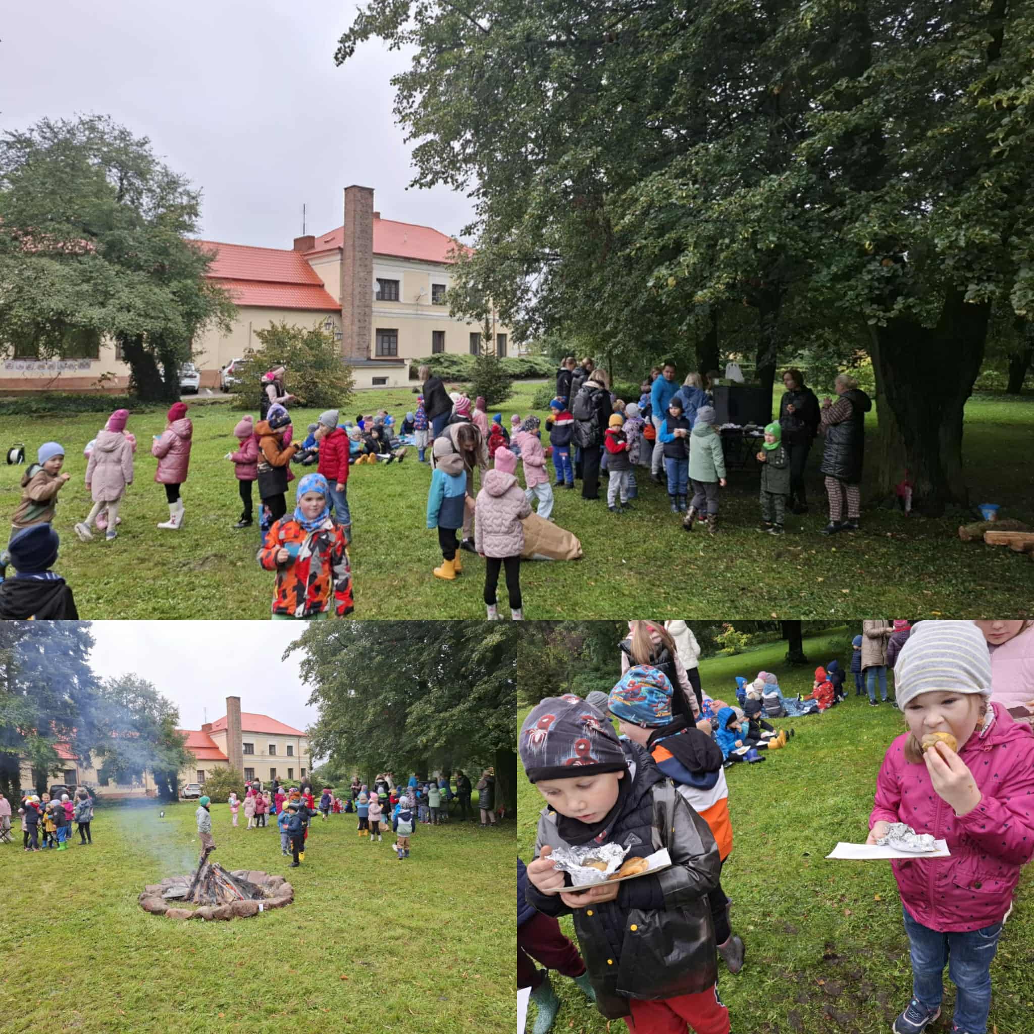 Święto Ziemniaka to już tradycja w naszym przedszkolu. W tym roku pogoda spłatała nam figla, deszcz jednak nas nie przestraszył i było wspaniale. Zabawy sportowe i zajęcia w dniu dzisiejszym były skoncentrowane wokół ziemniaka oraz wspaniałego ogniska- dzięki życzliwości i udostępnieniu miejsca przez OHZ w Osięcinach. Po męczących konkurencjach dzieci mogły skosztować pieczonego ziemniaka, placków ziemniaczanych oraz frytek. Bardzo dziękujemy wszystkim zaangażowanym w pomoc tego dnia.