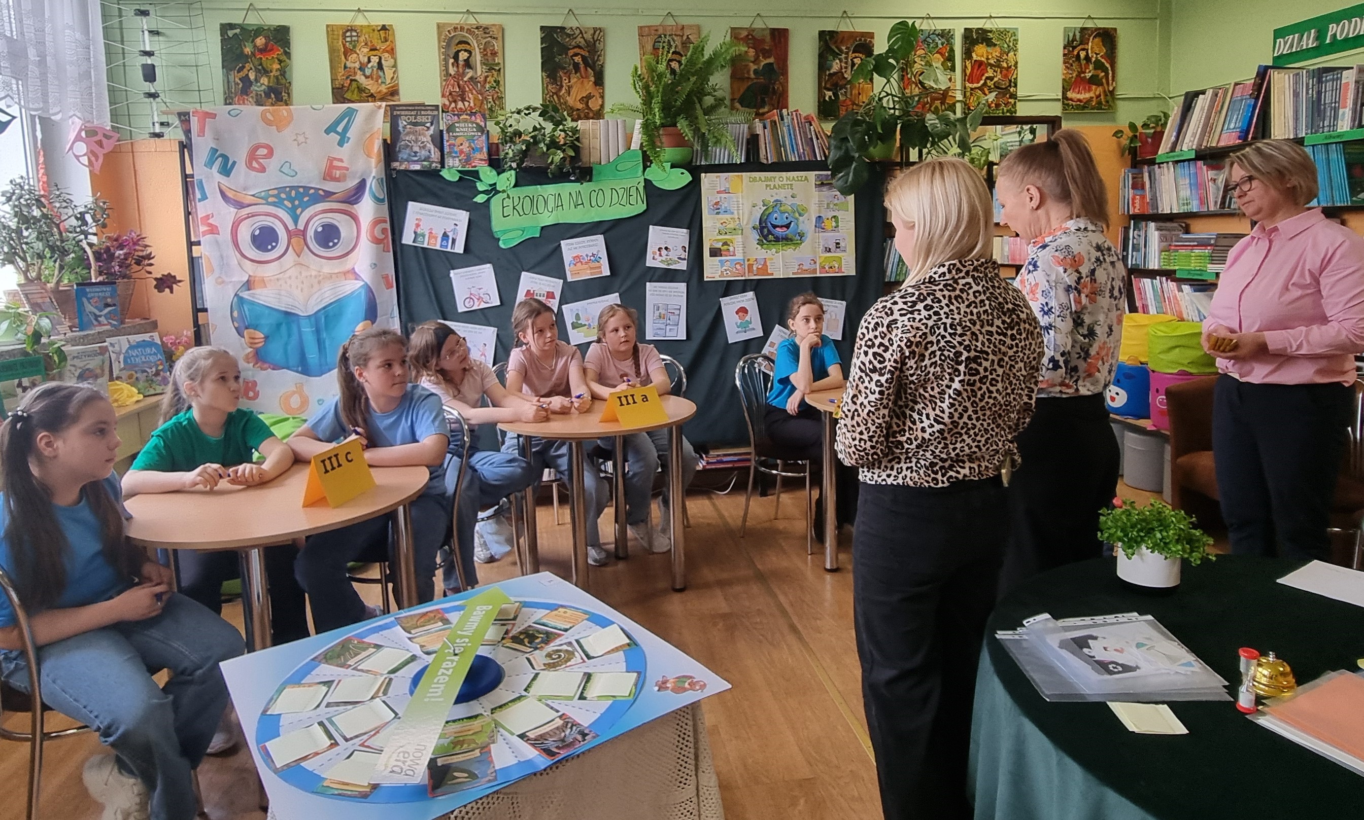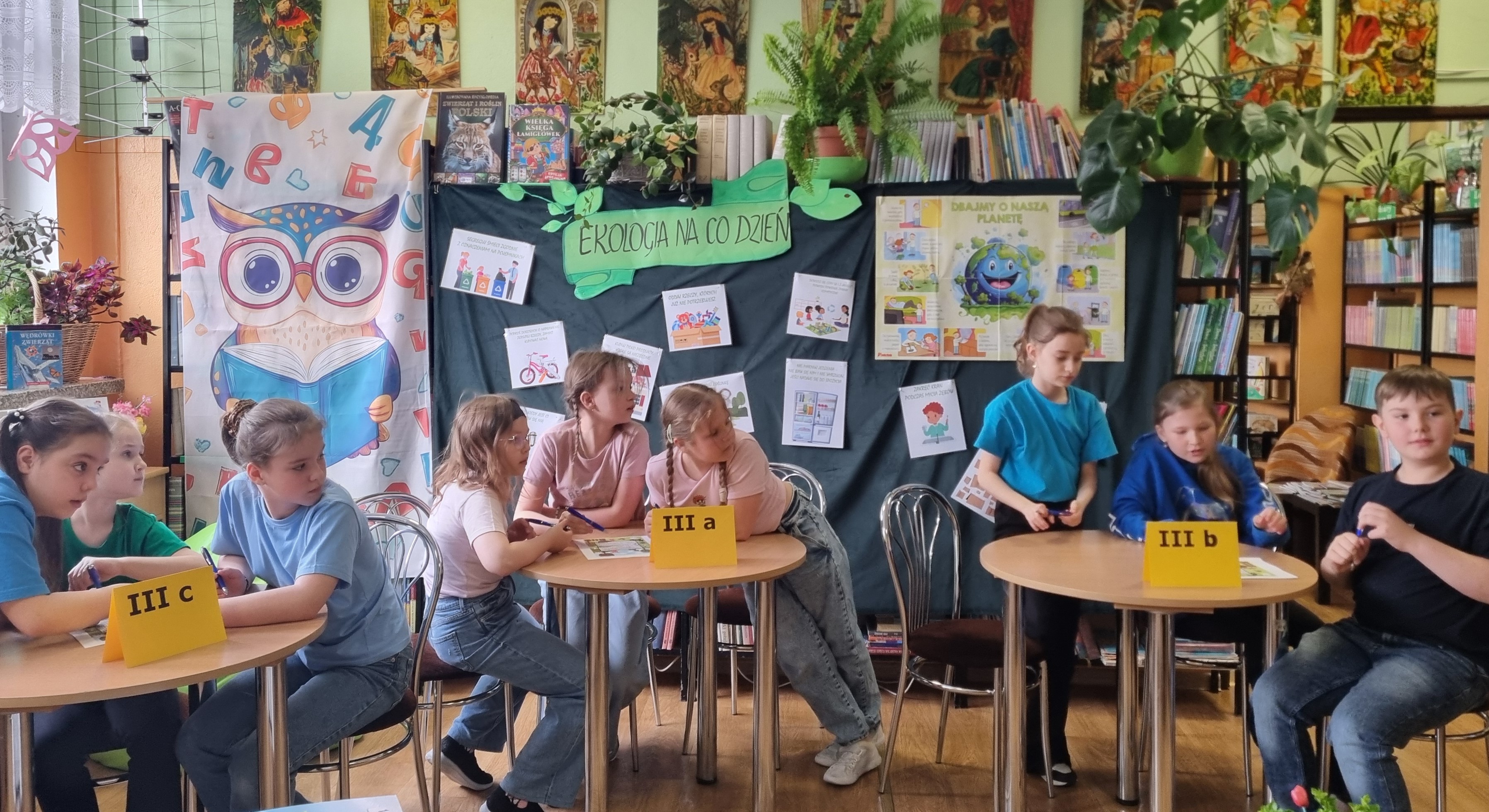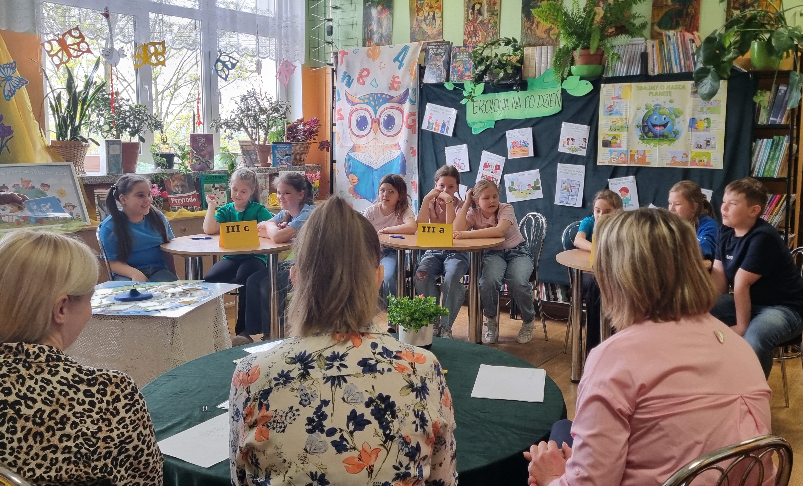 15 kwietnia 2026 r. biblioteka Szkoły Podstawowej w Osięcinach zamieniła się w miejsce pełne ekologicznych wyzwań oraz świetnej zabawy! Tym razem do konkursu „Ekologia na co dzień” stanęli uczniowie klas trzecich. Każdą klasę reprezentowała trzyosobowa drużyna młodych miłośników przyrody – gotowych na wszystko!