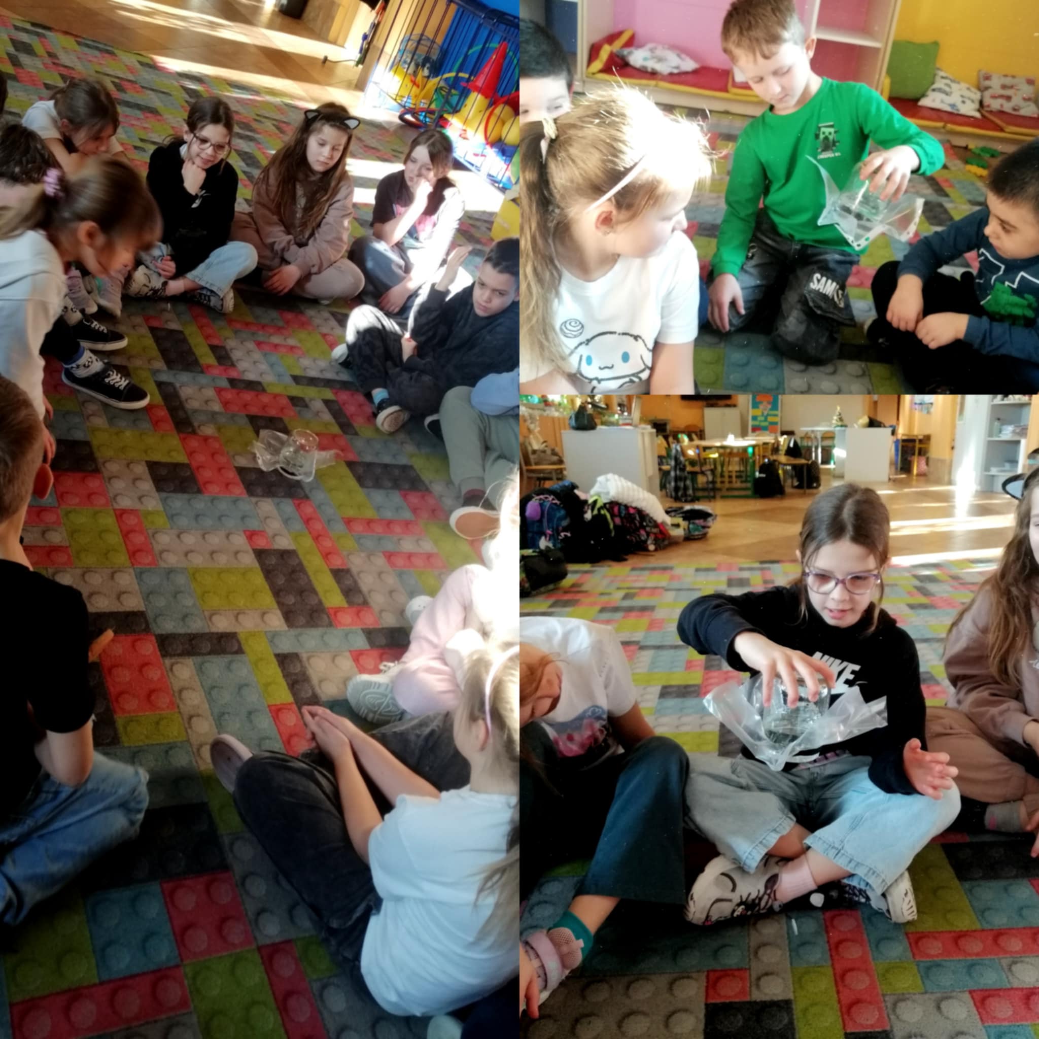 Jesteśmy po drugim bloku innowacji pedagogicznej „Eksperymenty przyrodnicze”, realizowanej w świetlicy szkolnej. Tematem zajęć była woda, a na zdjęciach przedstawiono wybrane, przykładowe doświadczenia – odkrywanie istnienia ciśnienia atmosferycznego oraz badanie zjawiska osmozy.