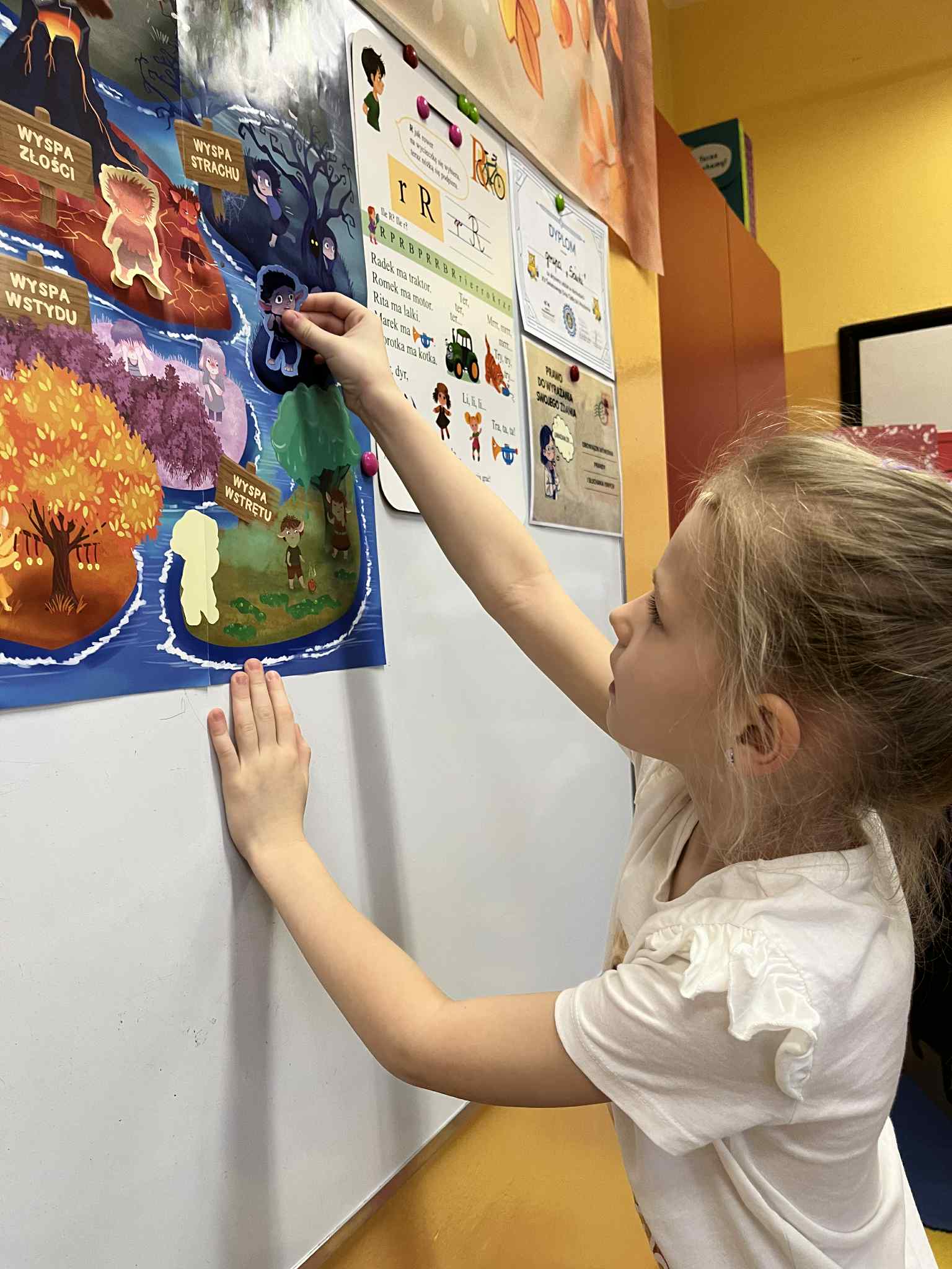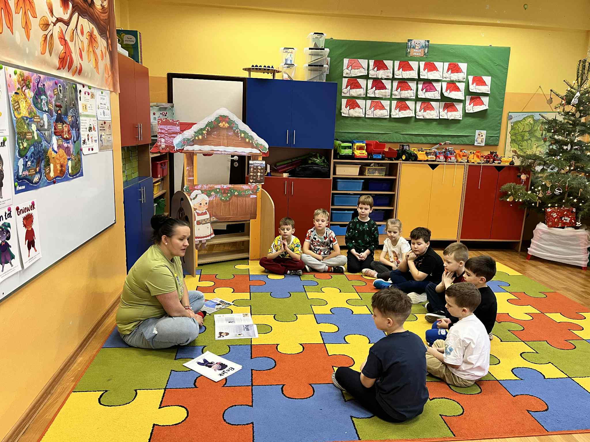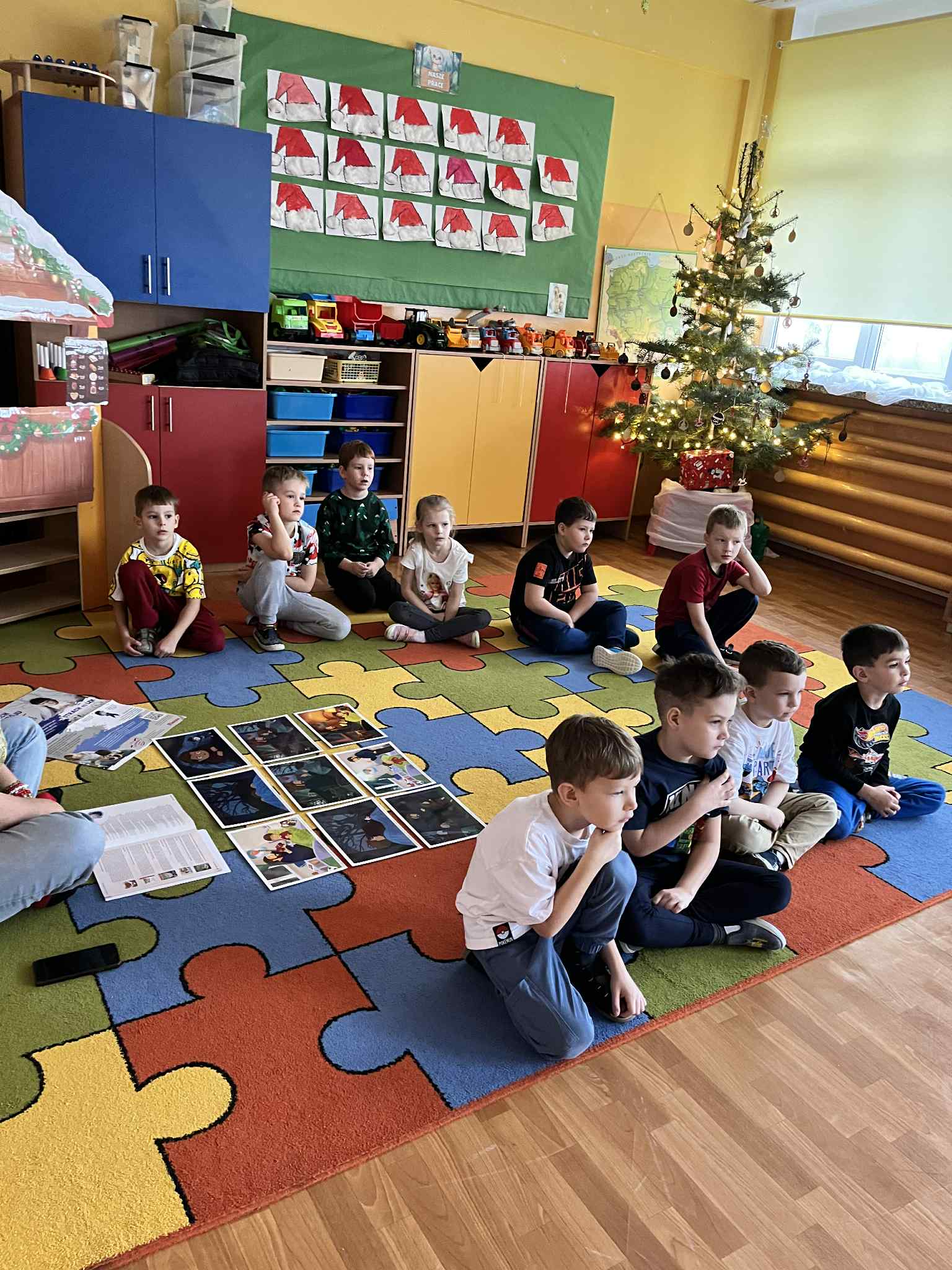 W grudniu dzieci z grupy Sówek podjęły kolejne zadanie z projektu „Czuciaki w krainie emocji”. Tym razem poznały Bojka z Wyspy Strachu, który uczył dzieci oswajać strach i radzić sobie z lękiem. Podczas zajęć przedszkolaki wysłuchały opowiadania o Jasiu, który bał się ciemności. Za pomocą rysunku przedstawiły to, czego same się boją i mówiły jakie mają sposoby na strach. Zamieniły swoje strachy w śmieszne potworki, aby kojarzyły się im się z czymś zabawnym. Na zakończenie zajęć wszystkie dzieci pokolorowały Bojka i uzupełniły „książeczki emocjonalne”. Bojek natomiast wrócił na swoją wyspę.  Podczas zajęć dzieci  nauczyły się, że strach nie jest czymś złym ani wstydliwym. To sygnał, który warto zauważyć, nazwać i oswoić – w bezpiecznej, spokojnej przestrzeni, z uważnym dorosłym obok. „Czuciaki z Wyspy Emocji” pokazują dzieciom, że każda emocja jest ważna, a kiedy ją poznają, przestaje być taka straszna.