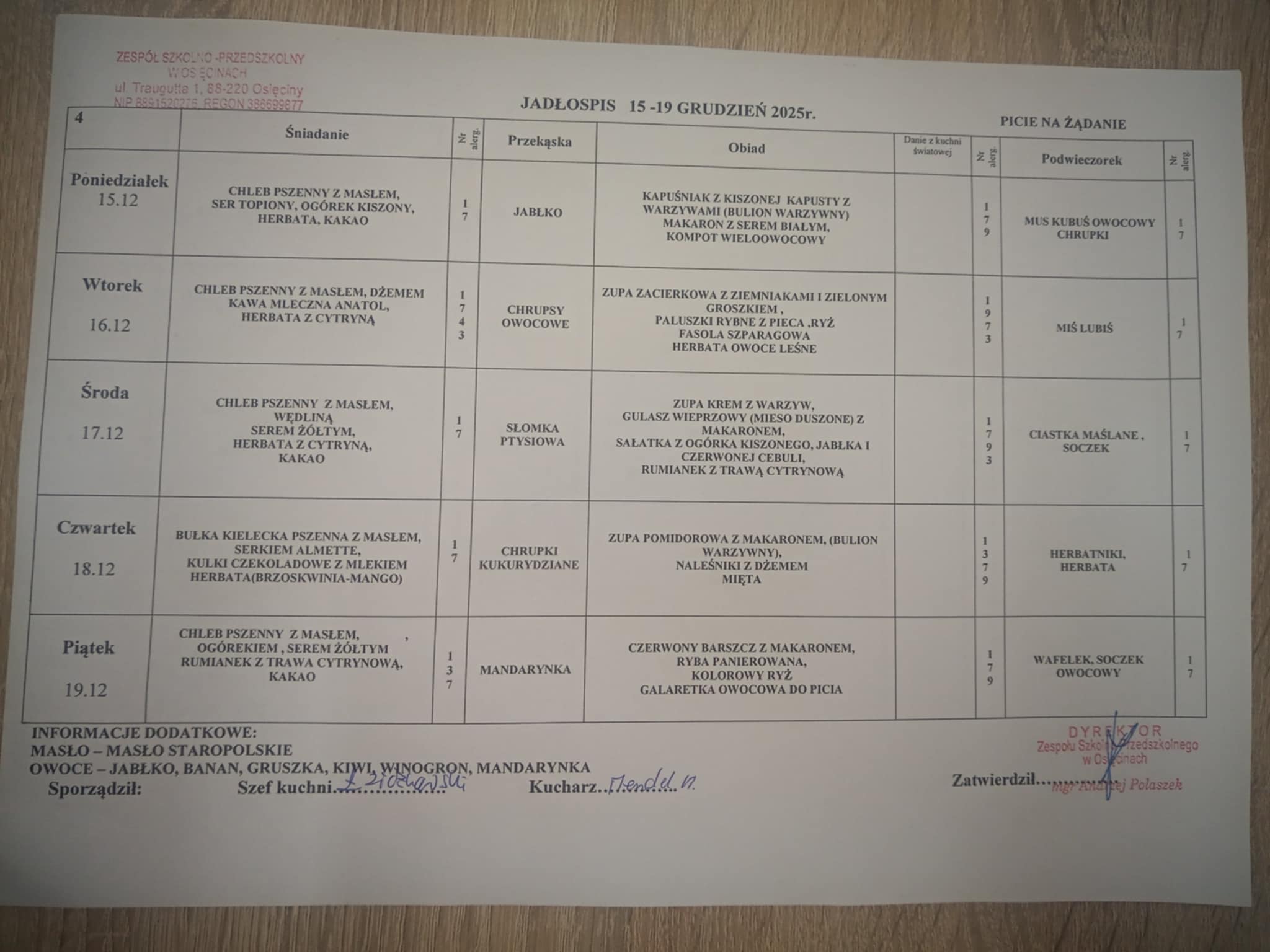 Jadłospis 15.12.2025 - 19.12.2025