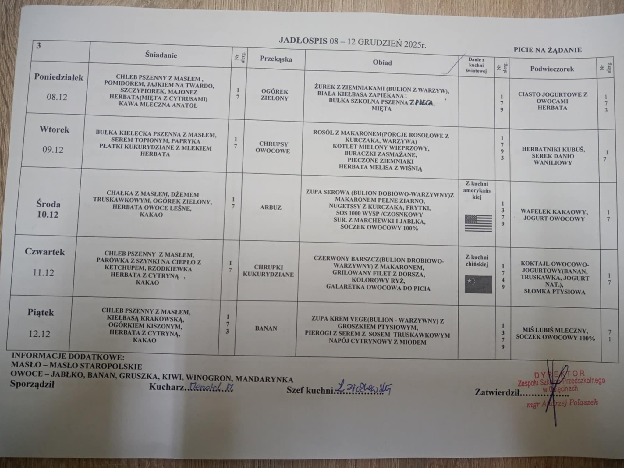 Jadłospis 08.12.2025 - 12.12.2025