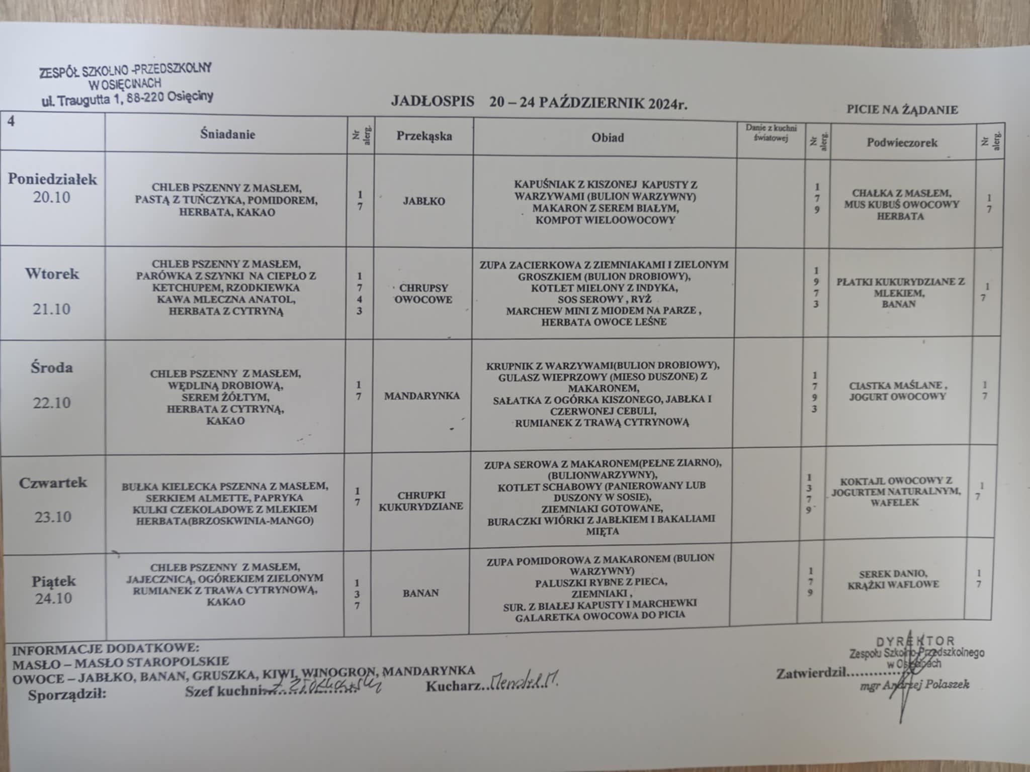 Prosimy o systematyczne i terminowe regulowanie odpłatności za wyżywienie.