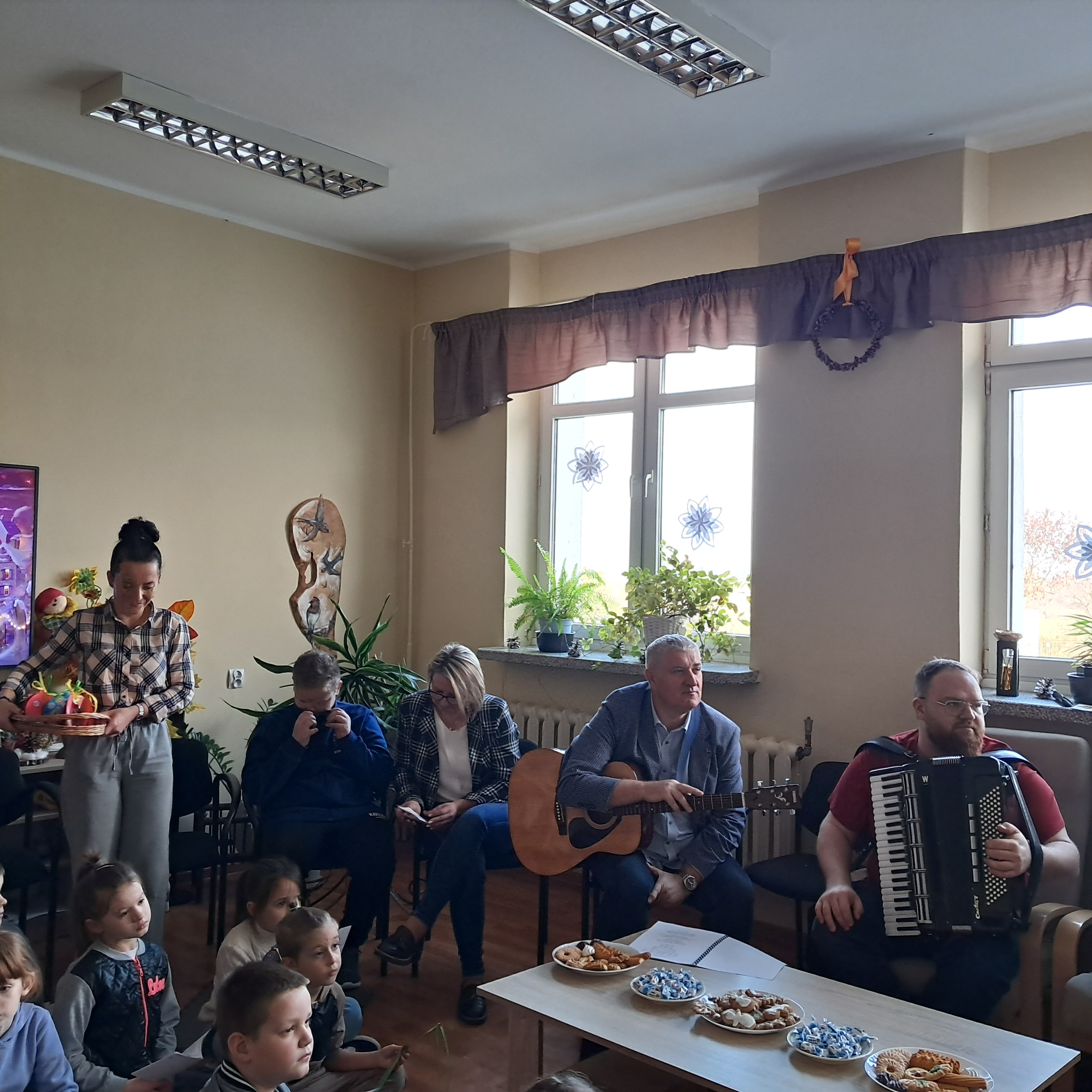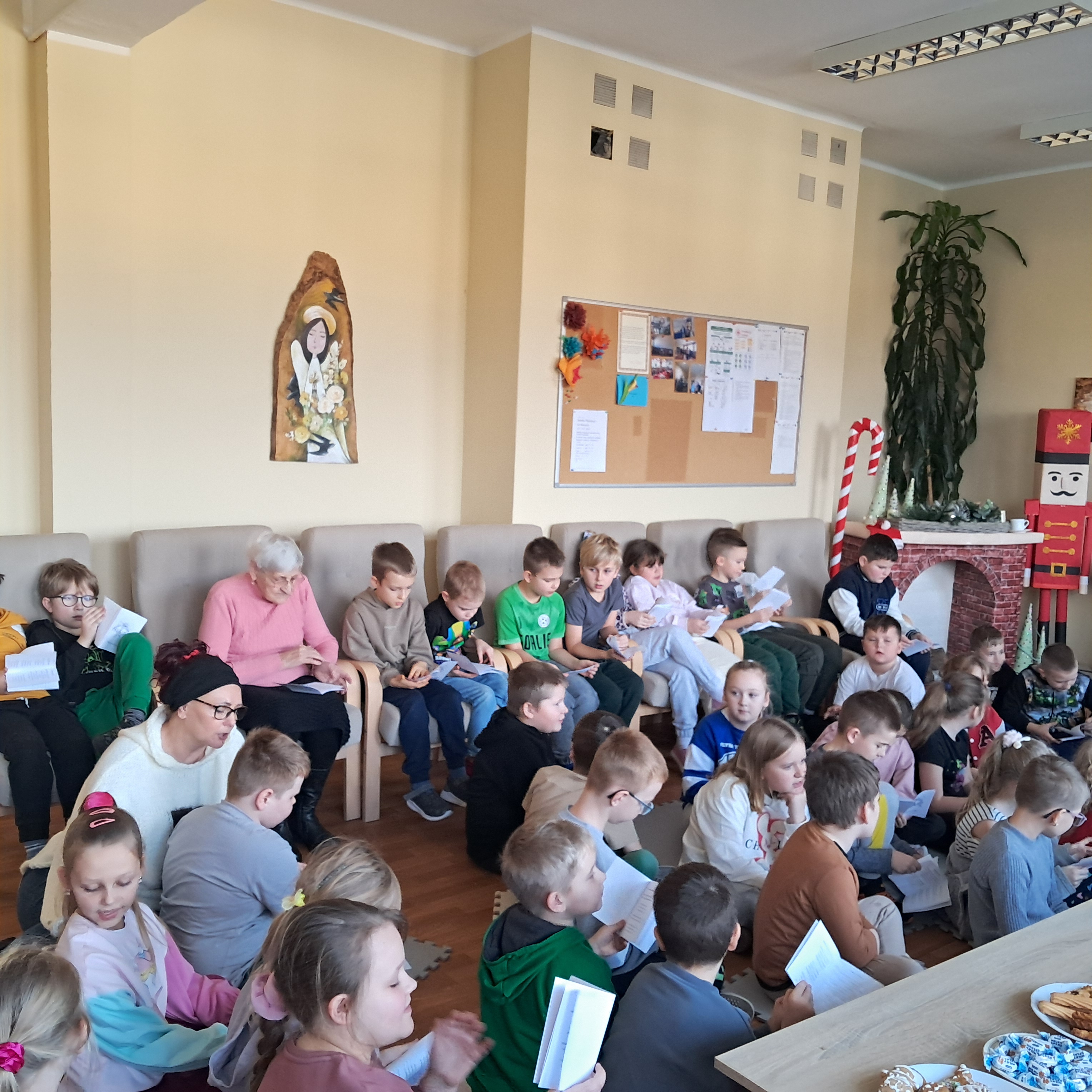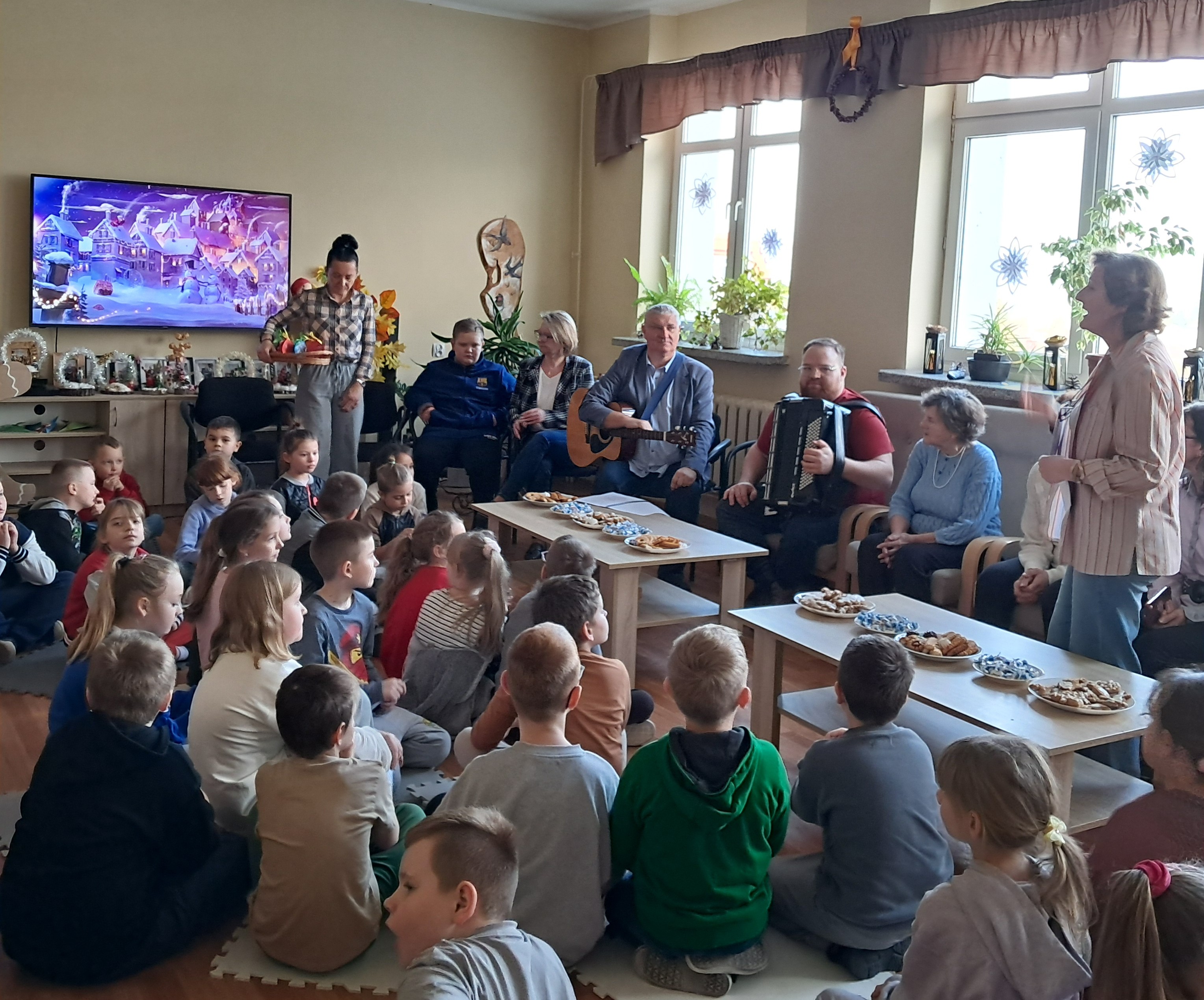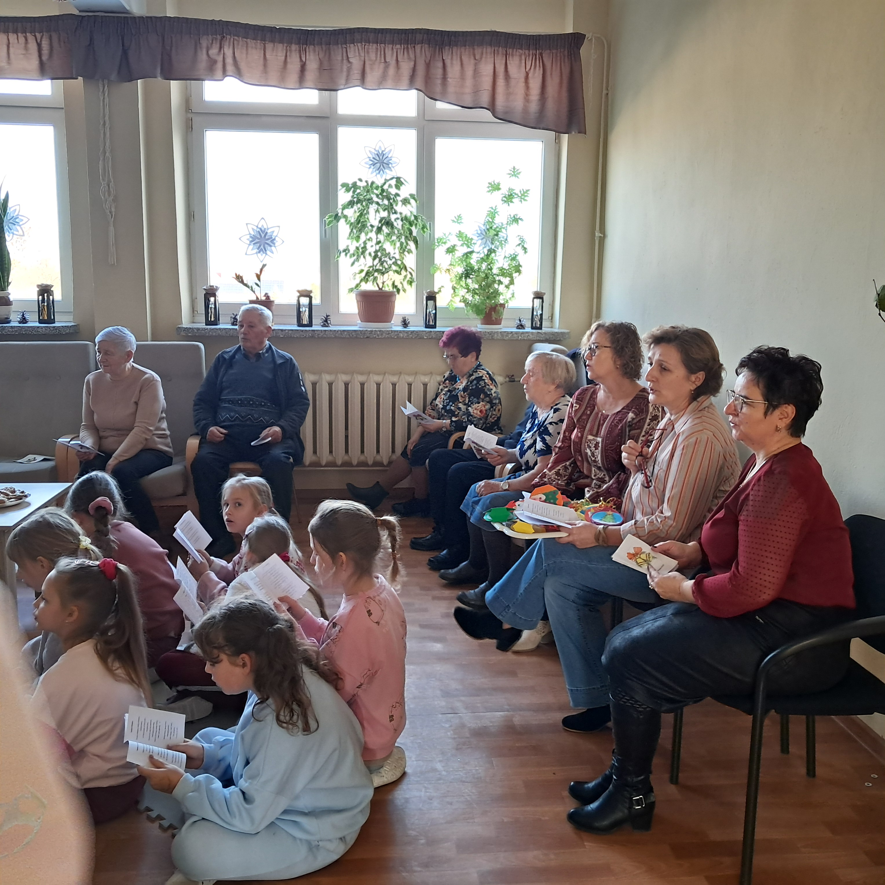 Seniorzy chętnie dzielili się wspomnieniami świąt z lat młodości, a młodsi uczestnicy z radością towarzyszyli im w śpiewie. Wspólne muzykowanie przyniosło wiele uśmiechu i stworzyło wyjątkowy, rodzinny nastrój, przypominając o tym, jak ważna jest obecność i bliskość drugiego człowieka.