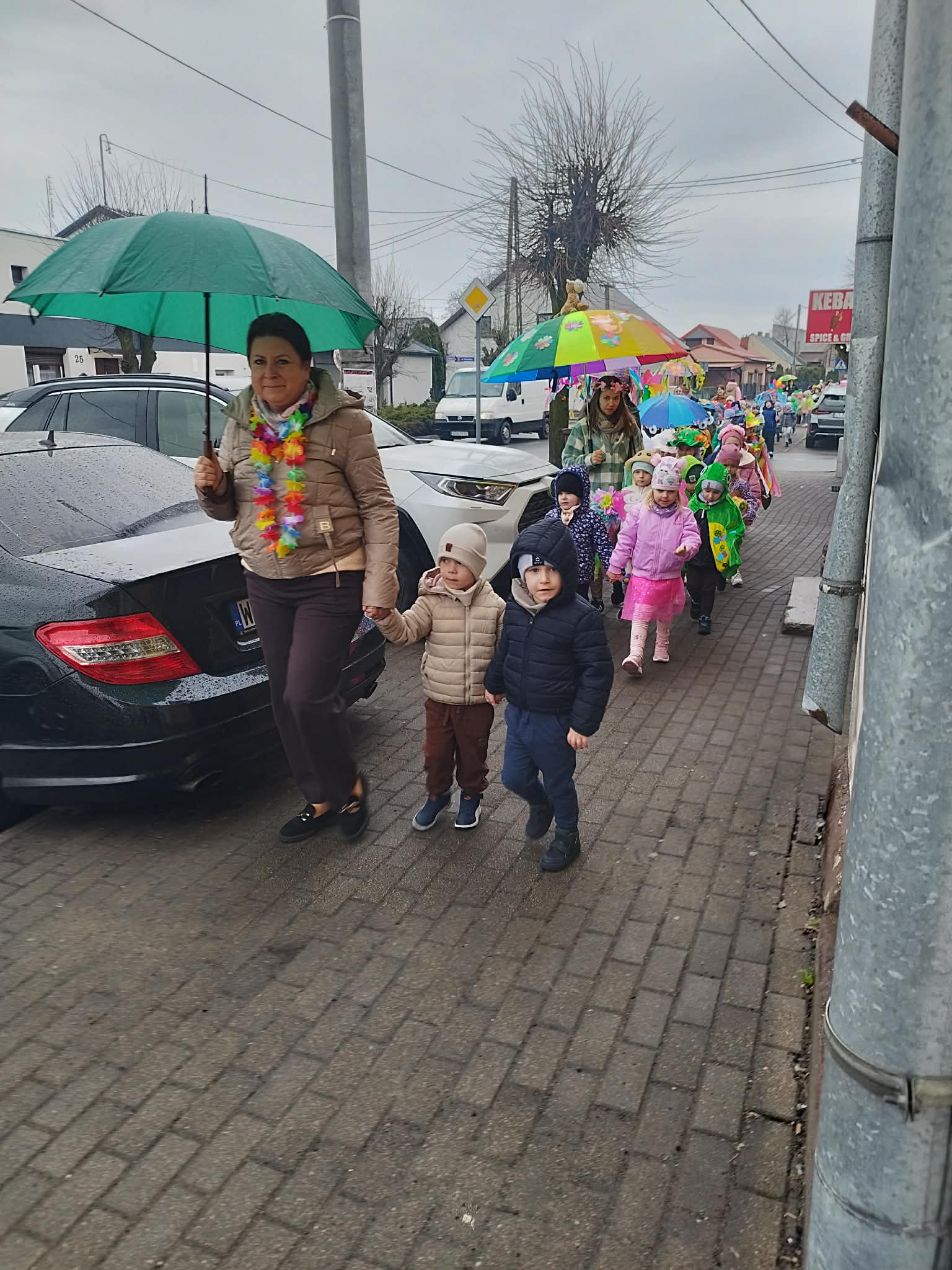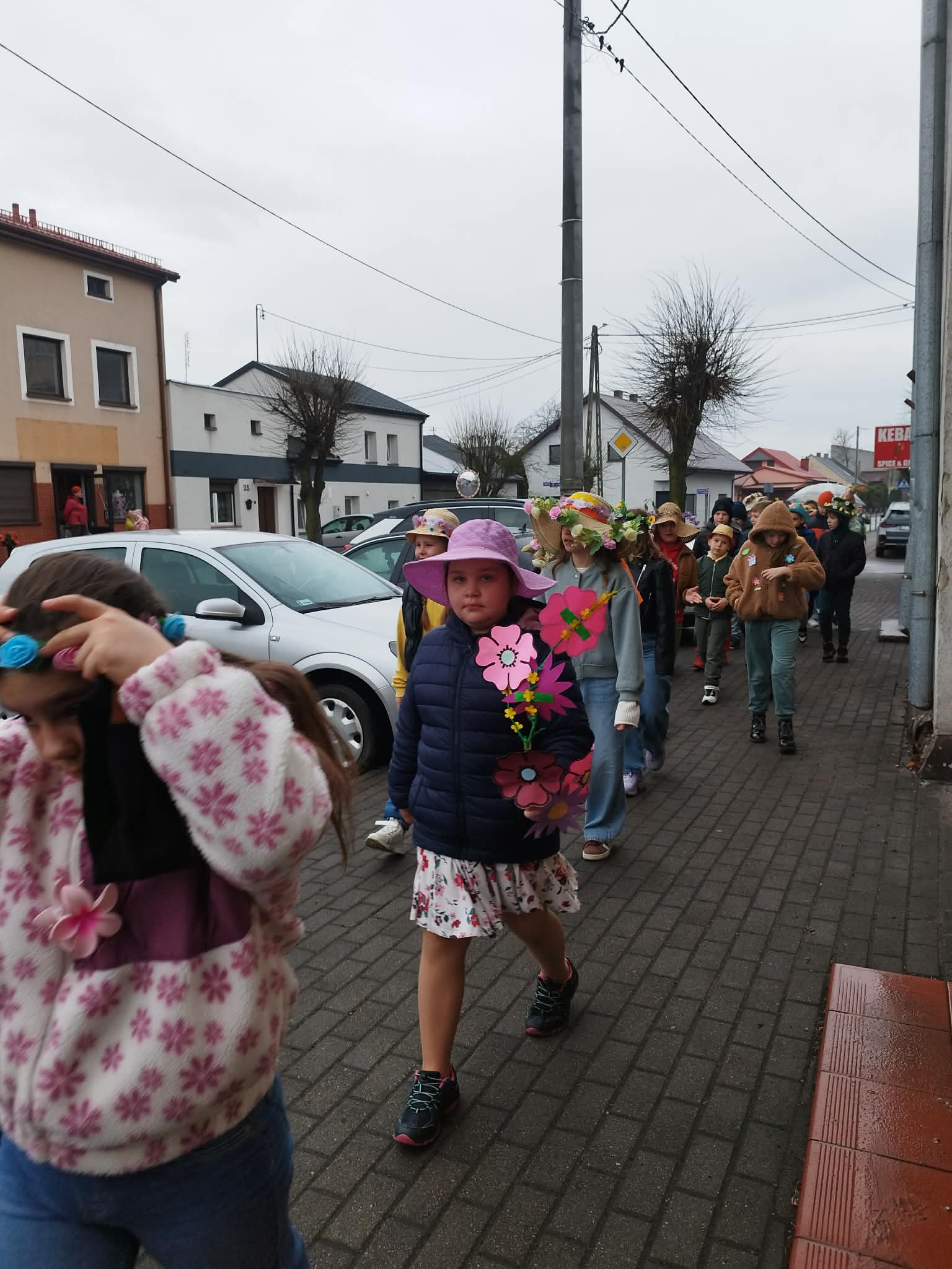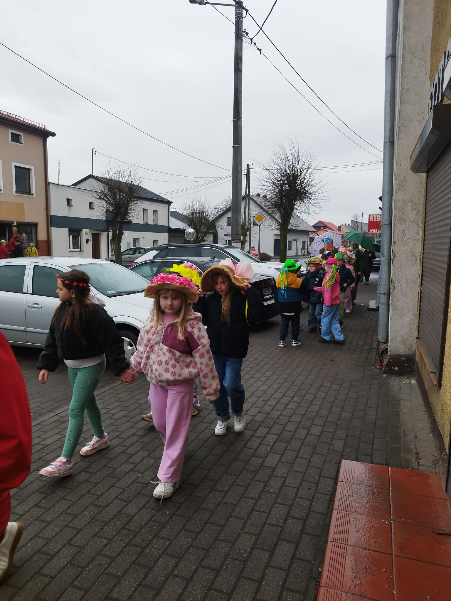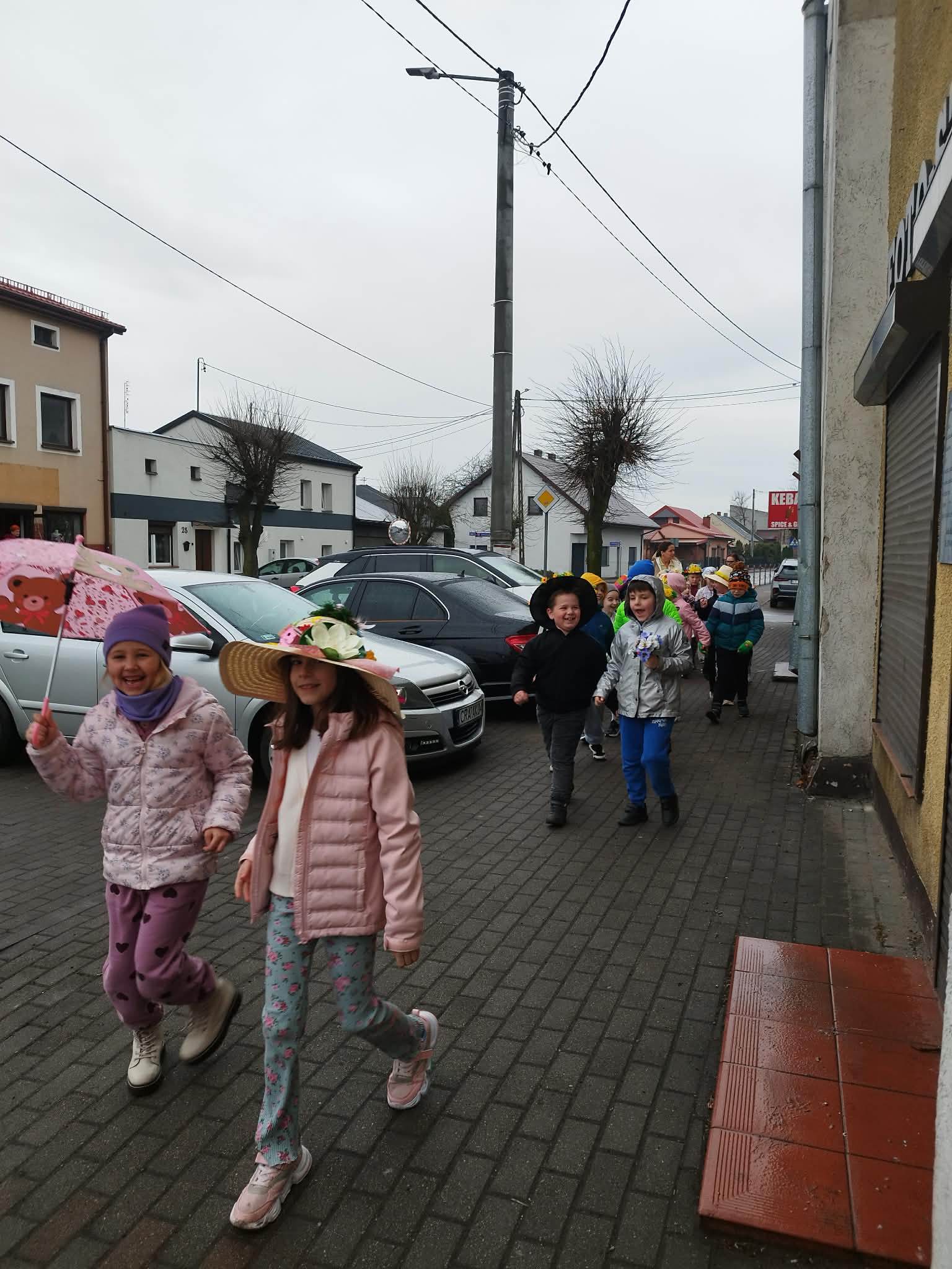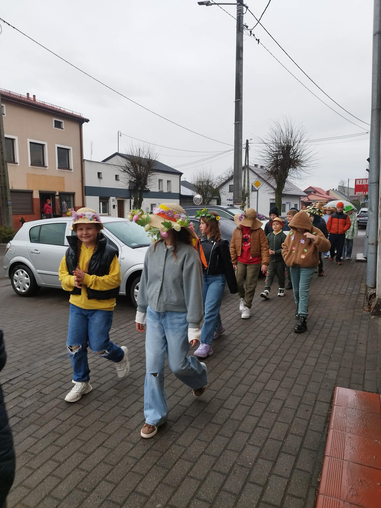 20 marca w pierwszy dzień astronomicznej wiosny dzieci z grup przedszkolnych oraz klas I-III wyruszyły barwnym korowodem, aby powitać wiosnę. Podczas marszu dzieci śpiewały wiosenne piosenki, dzięki którym nasz korowód nie pozostał niezauważony. Wszyscy przechodnie uśmiechem reagowali na widok tak barwnej i roześmianej gromady dzieci. Tradycyjnie żegnaliśmy zimę wypuszczając w niebo niebieskie balony z helem. Do przedszkola wracaliśmy niosąc kolorowe gaiki – maiki, parasolki oraz inne elementy związane z wiosną. Teraz pozostało nam już tylko czekać, aż wiosna zagości u nas na dobre