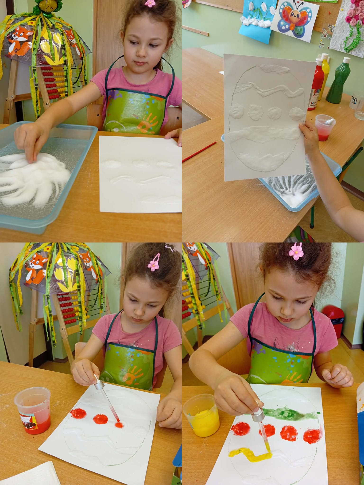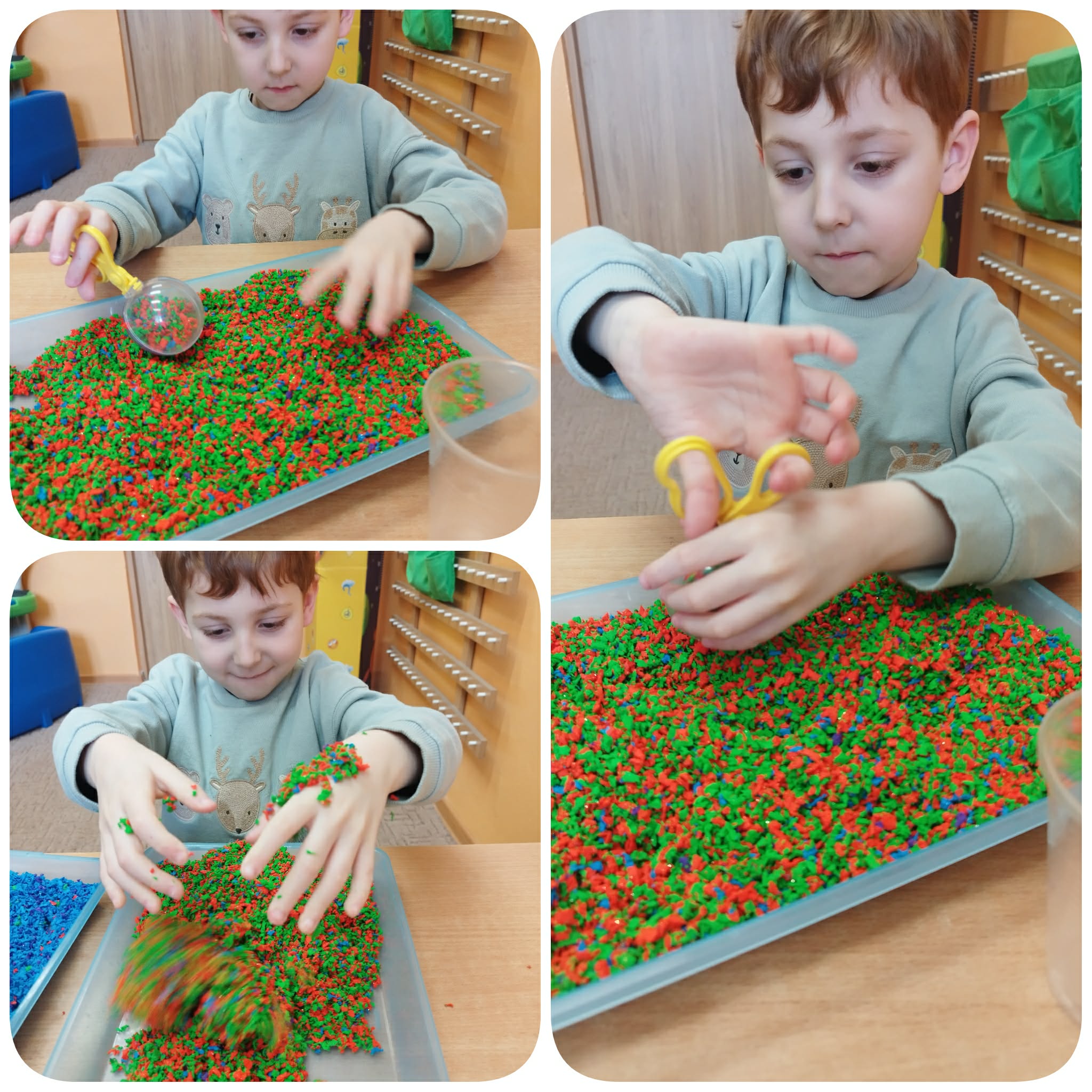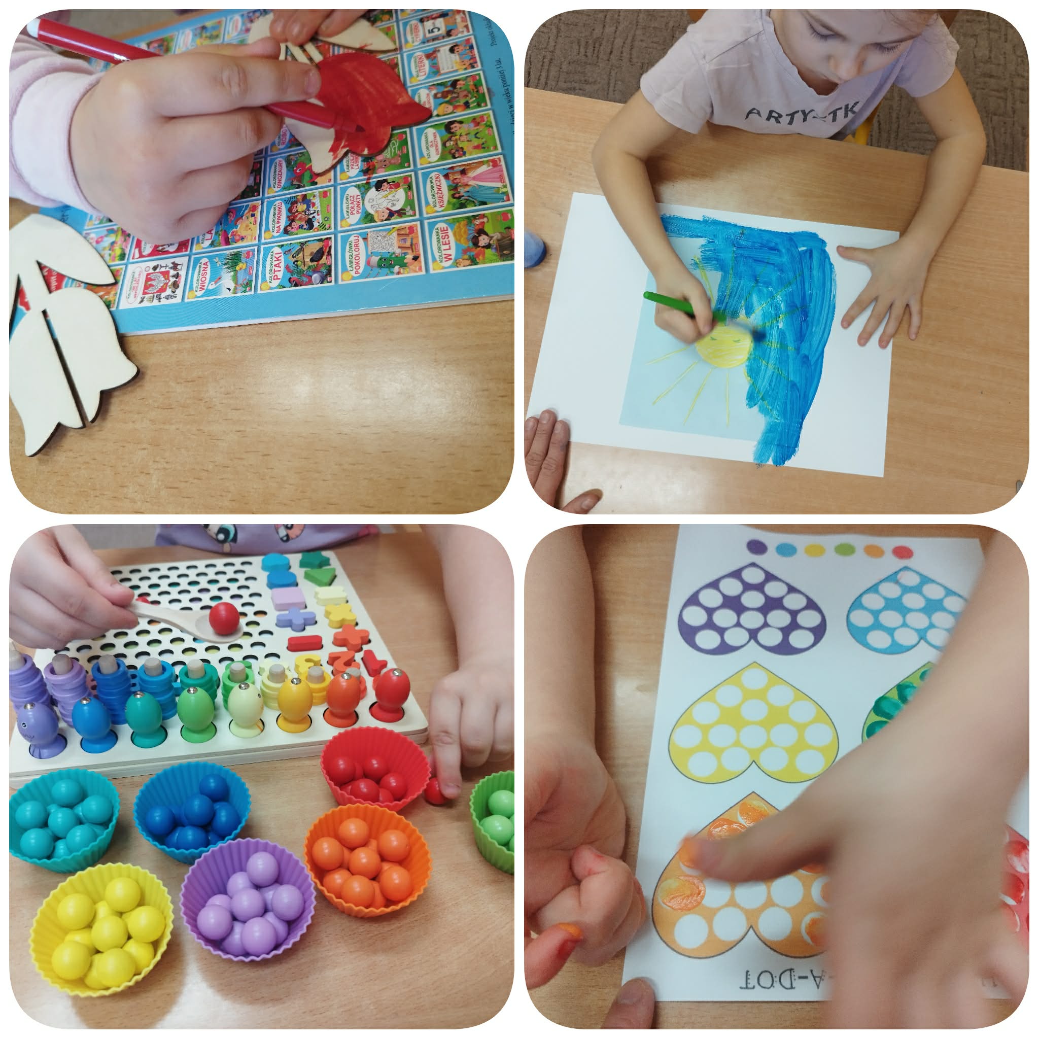 Marcowe zajęcia były dla naszych „Asów” wyjątkowe. Angażowaliśmy wszelkie zmysły by odnaleźć wiosnę oraz przygotować się na Wielkanocne święta. Zabawy sensoryczne angażowały zmysły dzieci, rozwijały motorykę małą i poznawanie faktur. Popularne aktywności na zajęciach to tworzenie sensorycznych pisanek (z makaronu, pomponów), memo, ścieżki sensoryczne, poszukiwanie ukrytych jajek oraz zabawy z masami plastycznymi (ciastolina, masa solna, korkolina itp.).