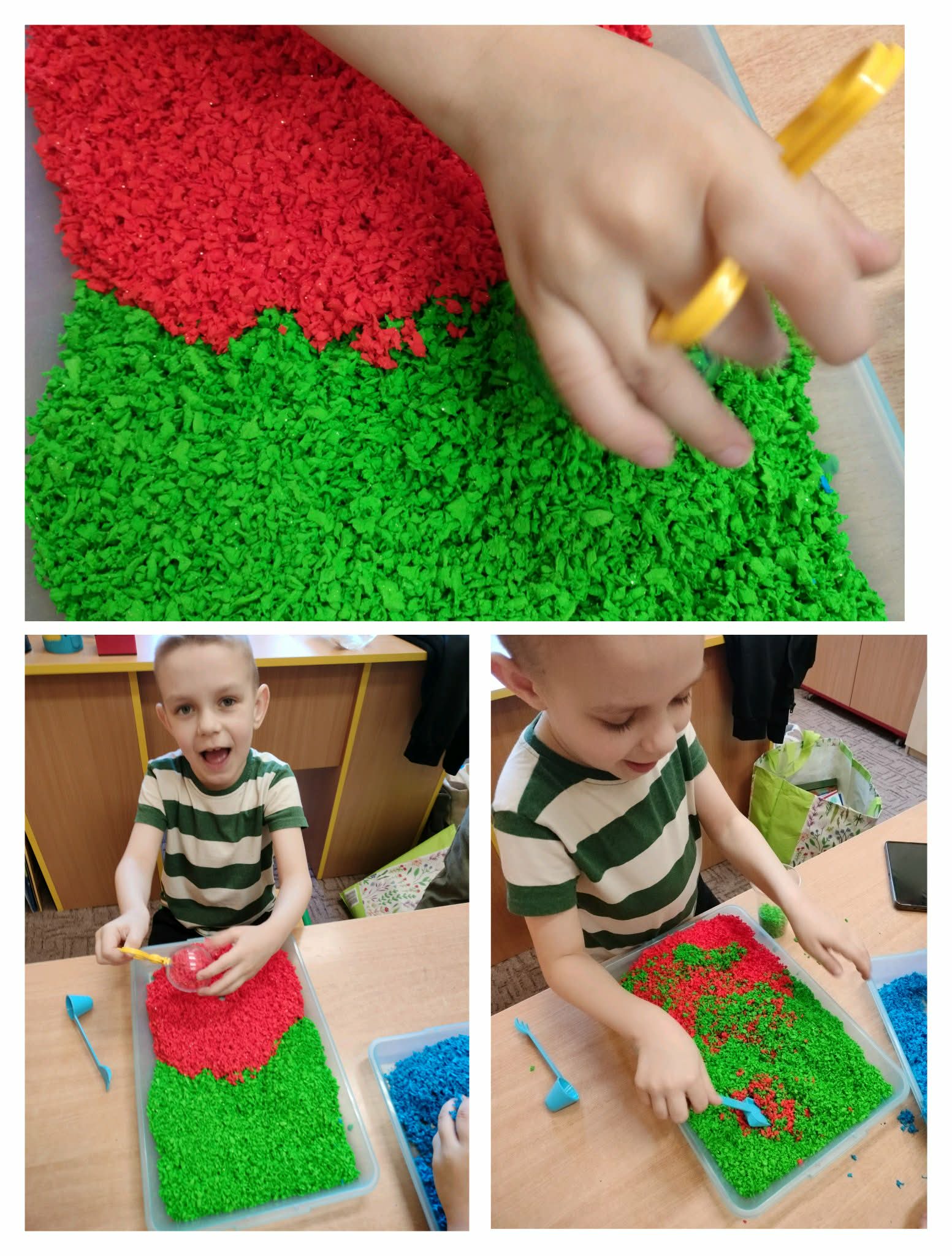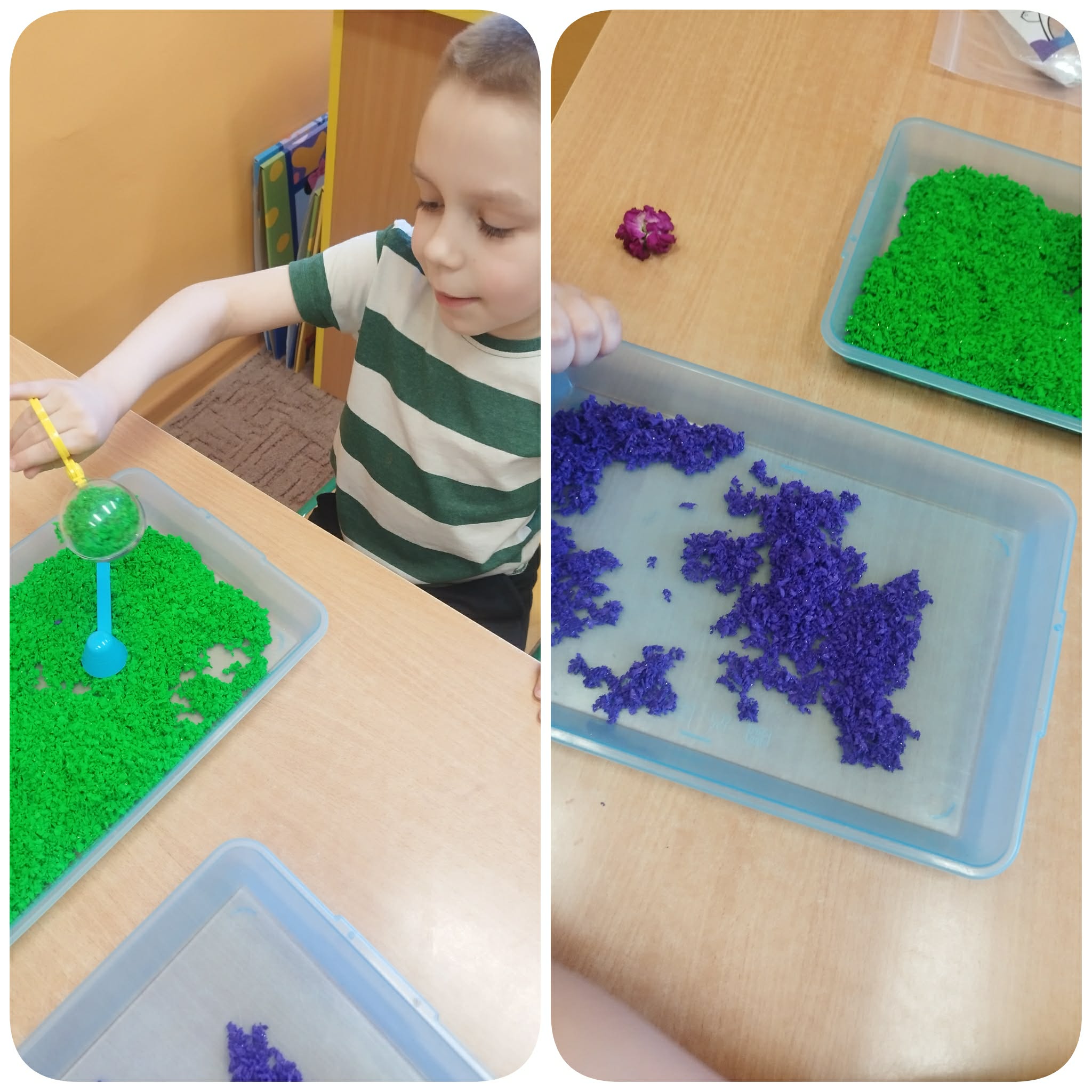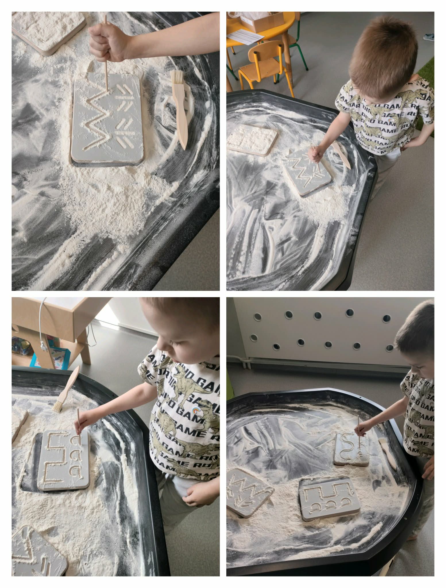Marcowe zajęcia były dla naszych „Asów” wyjątkowe. Angażowaliśmy wszelkie zmysły by odnaleźć wiosnę oraz przygotować się na Wielkanocne święta. Zabawy sensoryczne angażowały zmysły dzieci, rozwijały motorykę małą i poznawanie faktur. Popularne aktywności na zajęciach to tworzenie sensorycznych pisanek (z makaronu, pomponów), memo, ścieżki sensoryczne, poszukiwanie ukrytych jajek oraz zabawy z masami plastycznymi (ciastolina, masa solna, korkolina itp.).