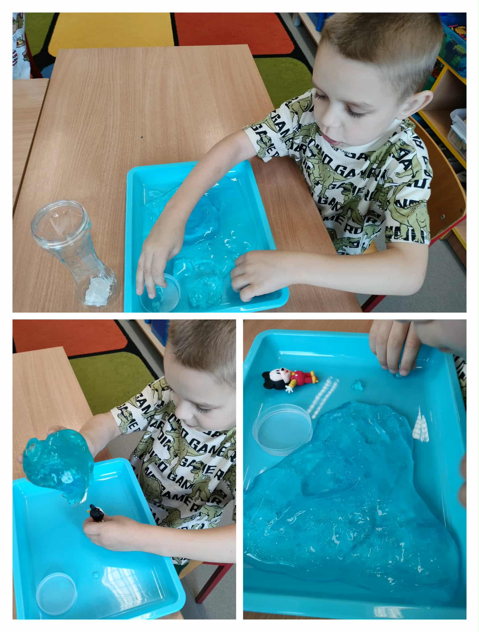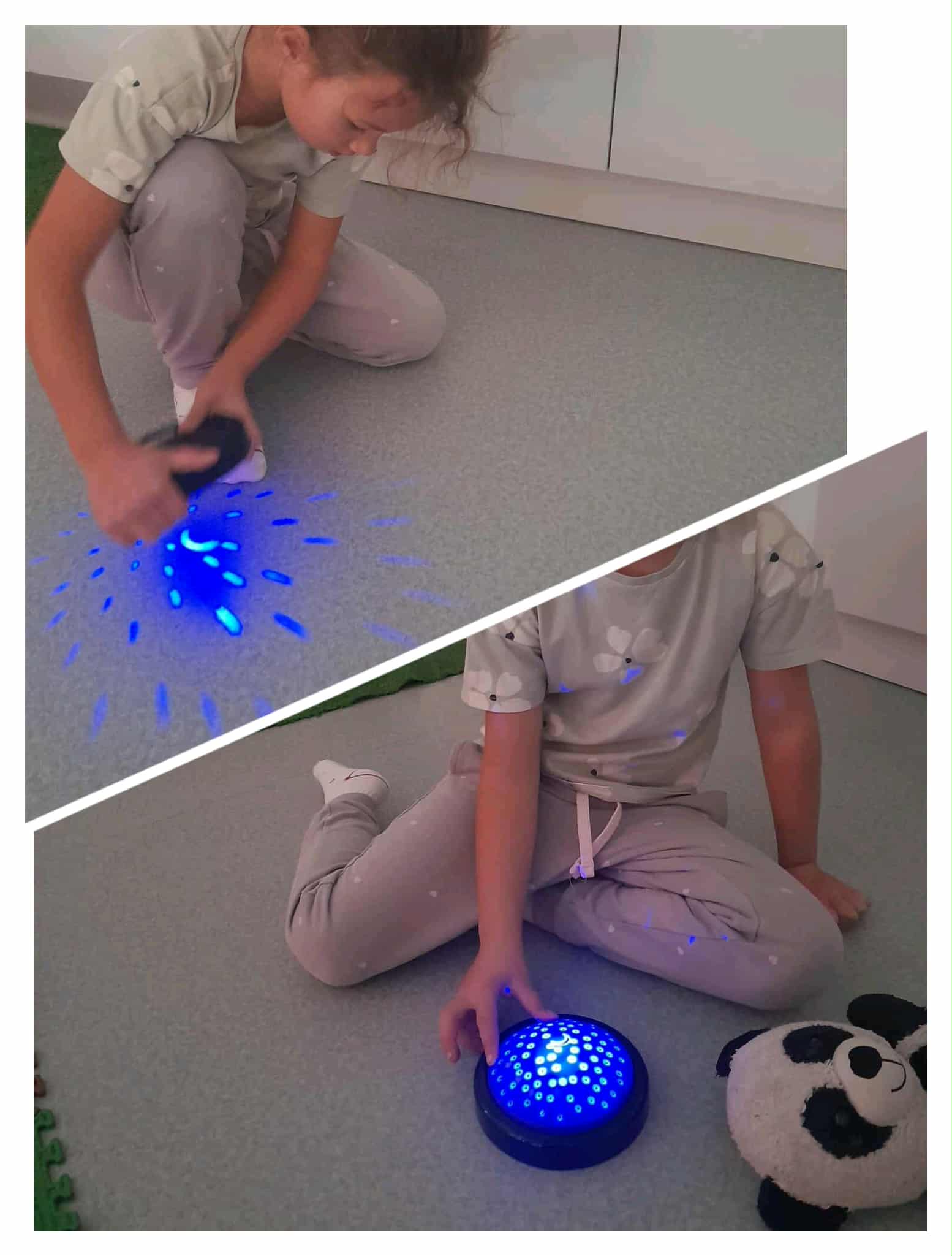 W tym roku szkolnym nasi podopieczni ze specjalnymi potrzebami edukacyjnymi rozpoczęli przygodę z innowacją pt. “Kreatywne zabawy z Asem”, której głównym celem jest wsparcie wszechstronnego rozwoju dzieci angażując ich zmysły w różnorodnych zabawach sensorycznych. We wrześniu dzieci bawiły się: Slimem, klockami na podświetlanym stoliku, sensorycznym pociągiem bujając się jednocześnie na platformie , ścieżką i lampką sensoryczną, różnymi materiałami plastycznymi i pomocami sensorycznymi. Zabawy te sprawiły im wiele radości a jednocześnie wpłynęły pozytywnie na odbiór poszczególnych bodźców.