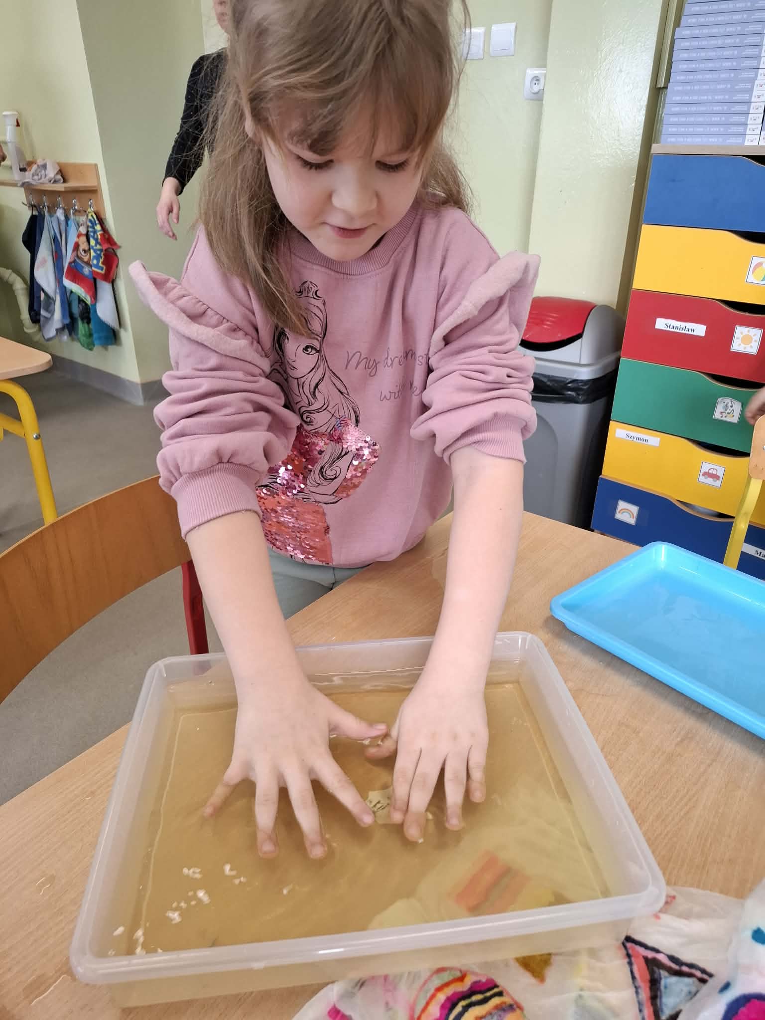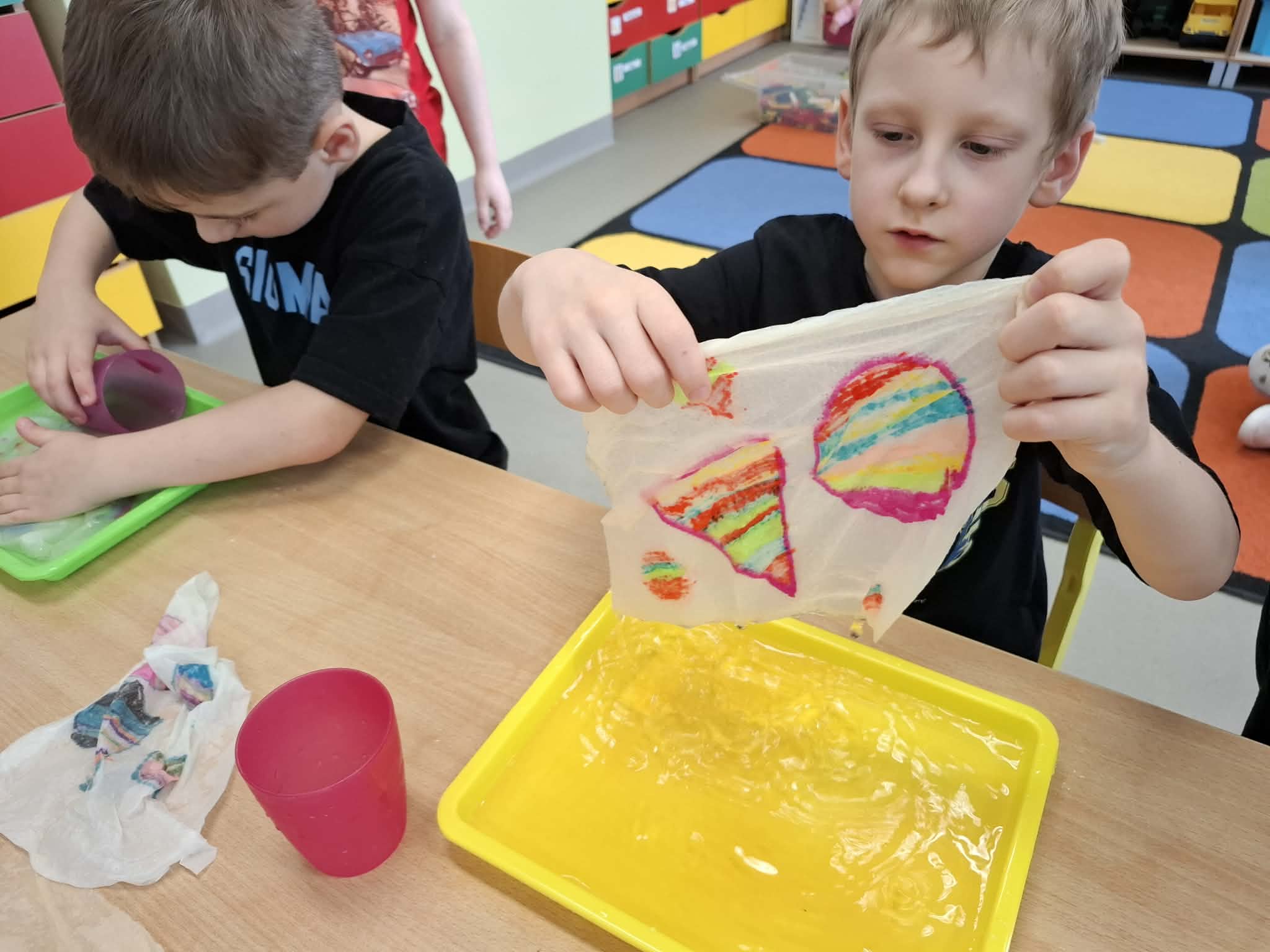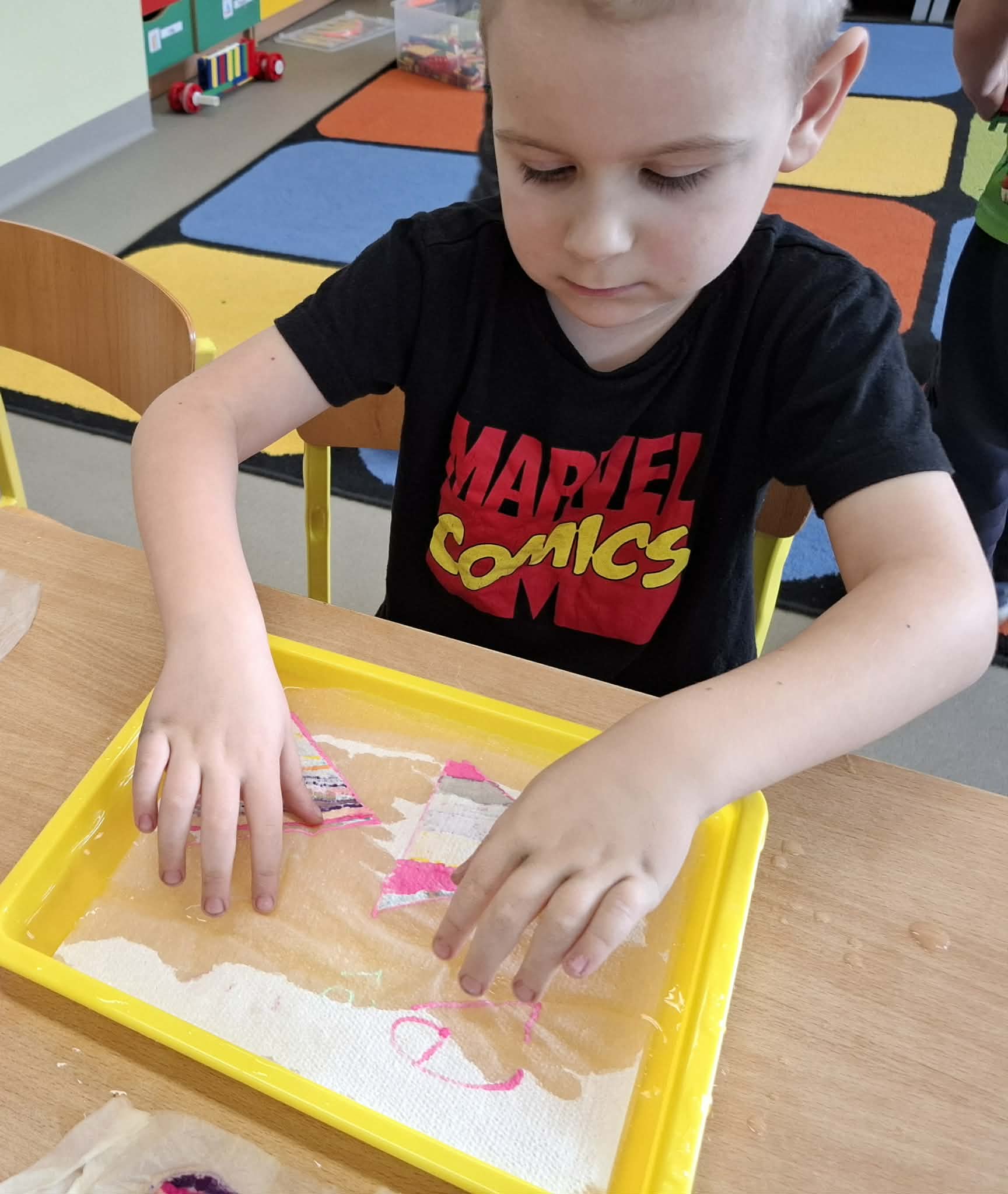 Angażując zmysł wzroku i dotyku ,dzieci wykonały prosty eksperyment, który pobudził ich ciekawość i rozwinął myślenie przyczynowo-skutkowe.