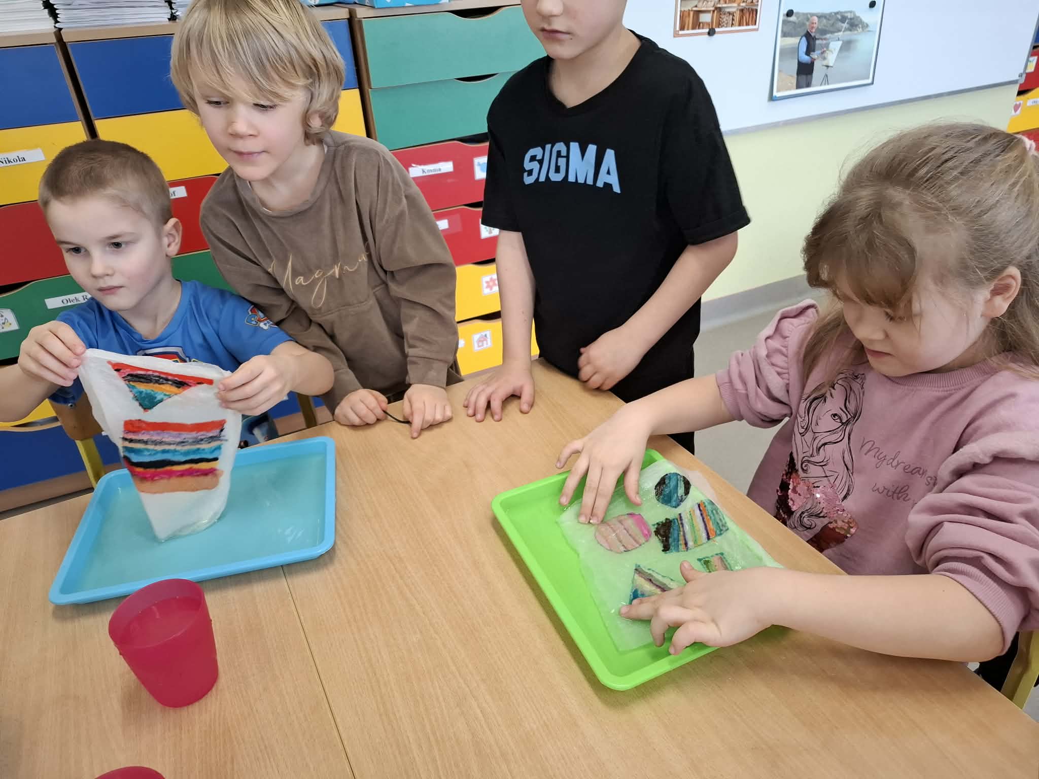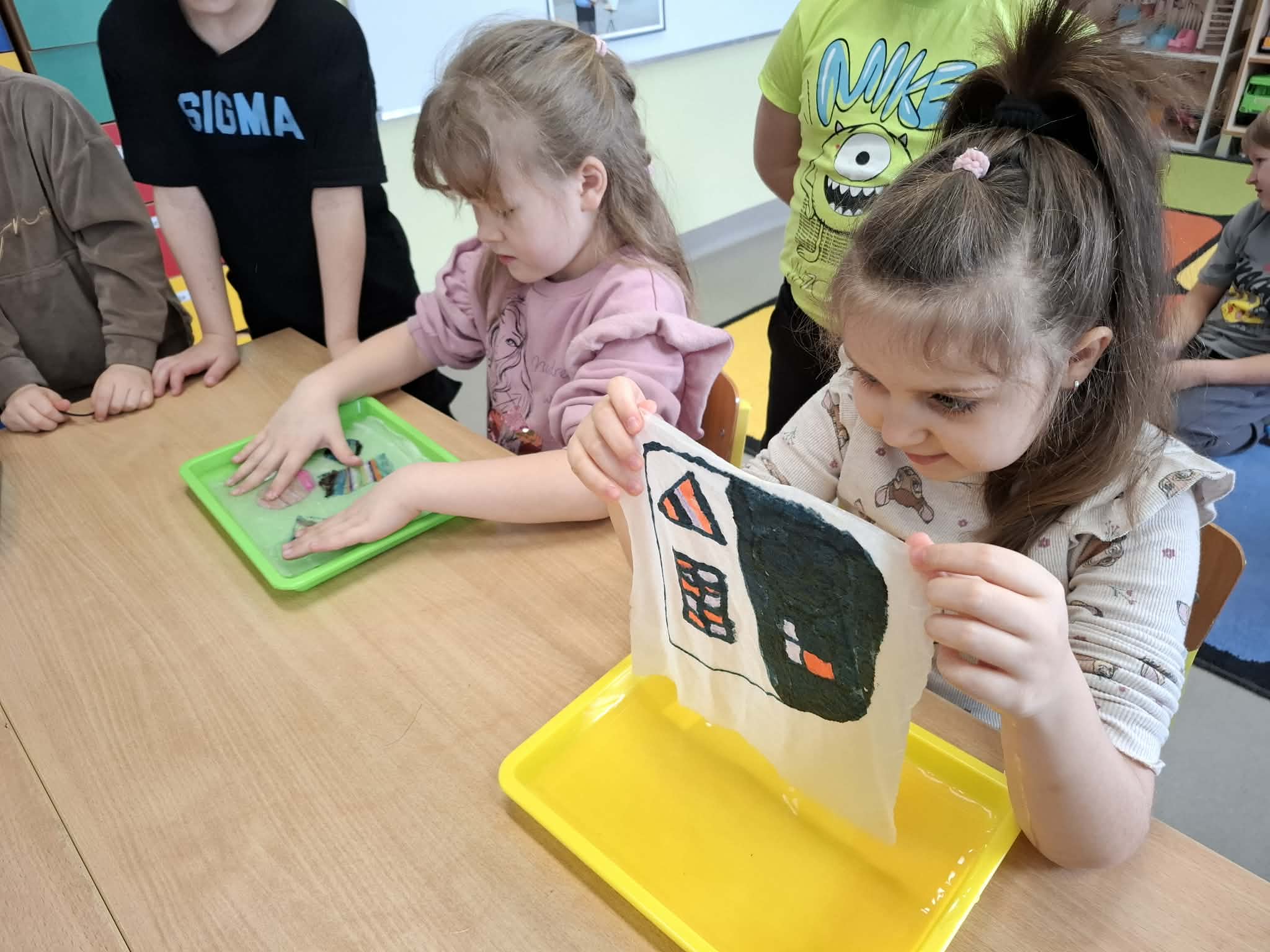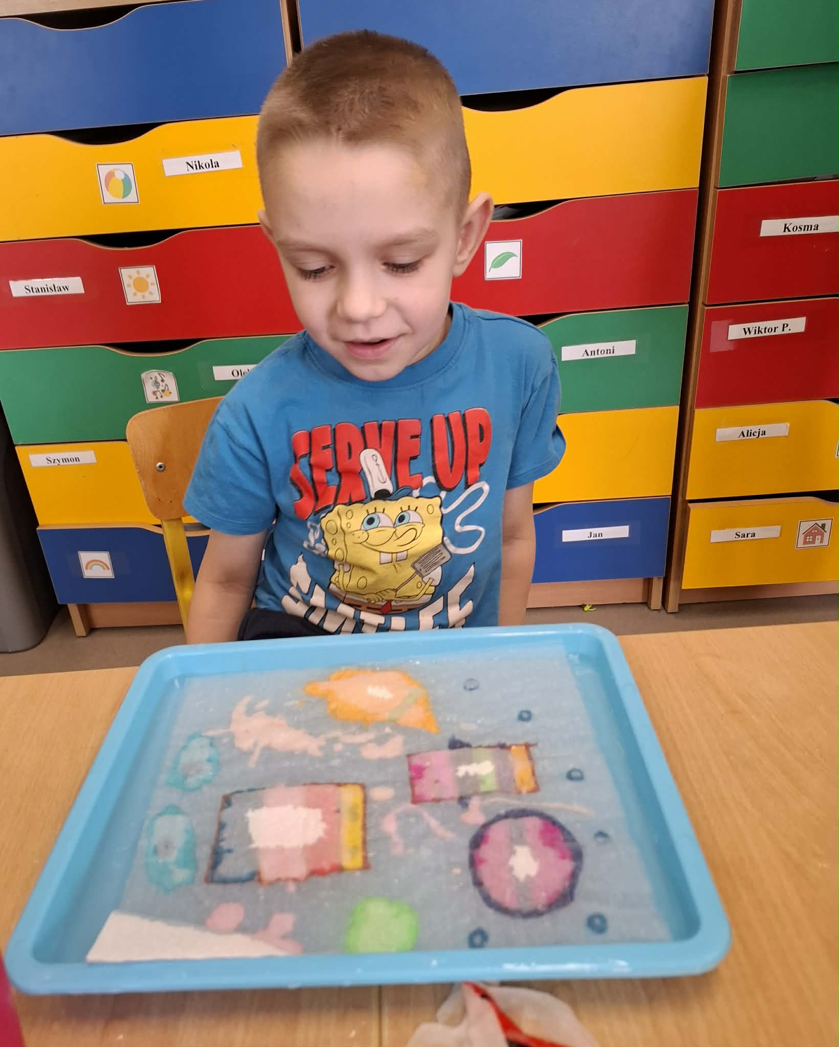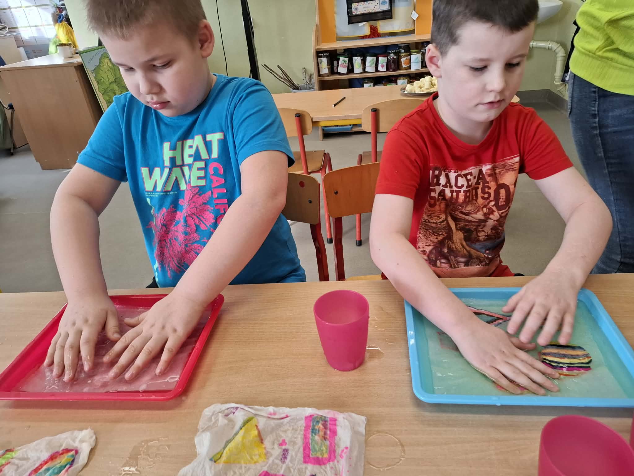 Angażując zmysł wzroku i dotyku ,dzieci wykonały prosty eksperyment, który pobudził ich ciekawość i rozwinął myślenie przyczynowo-skutkowe.