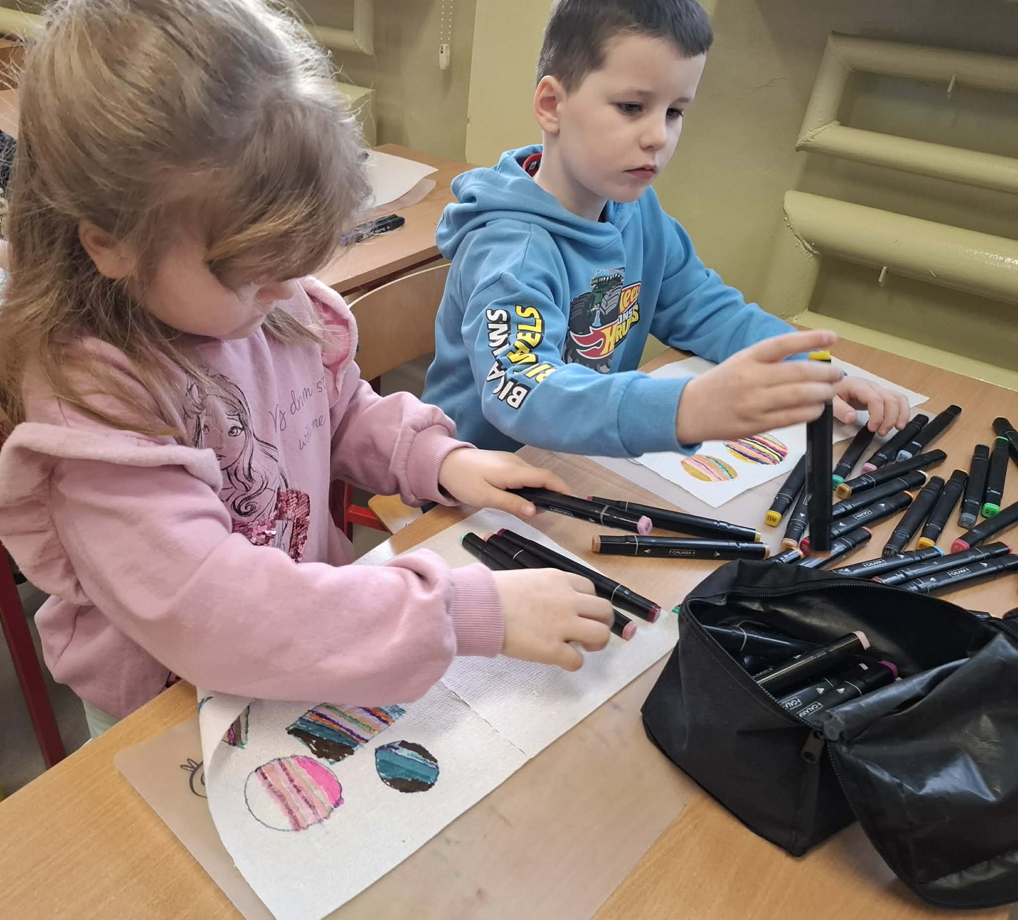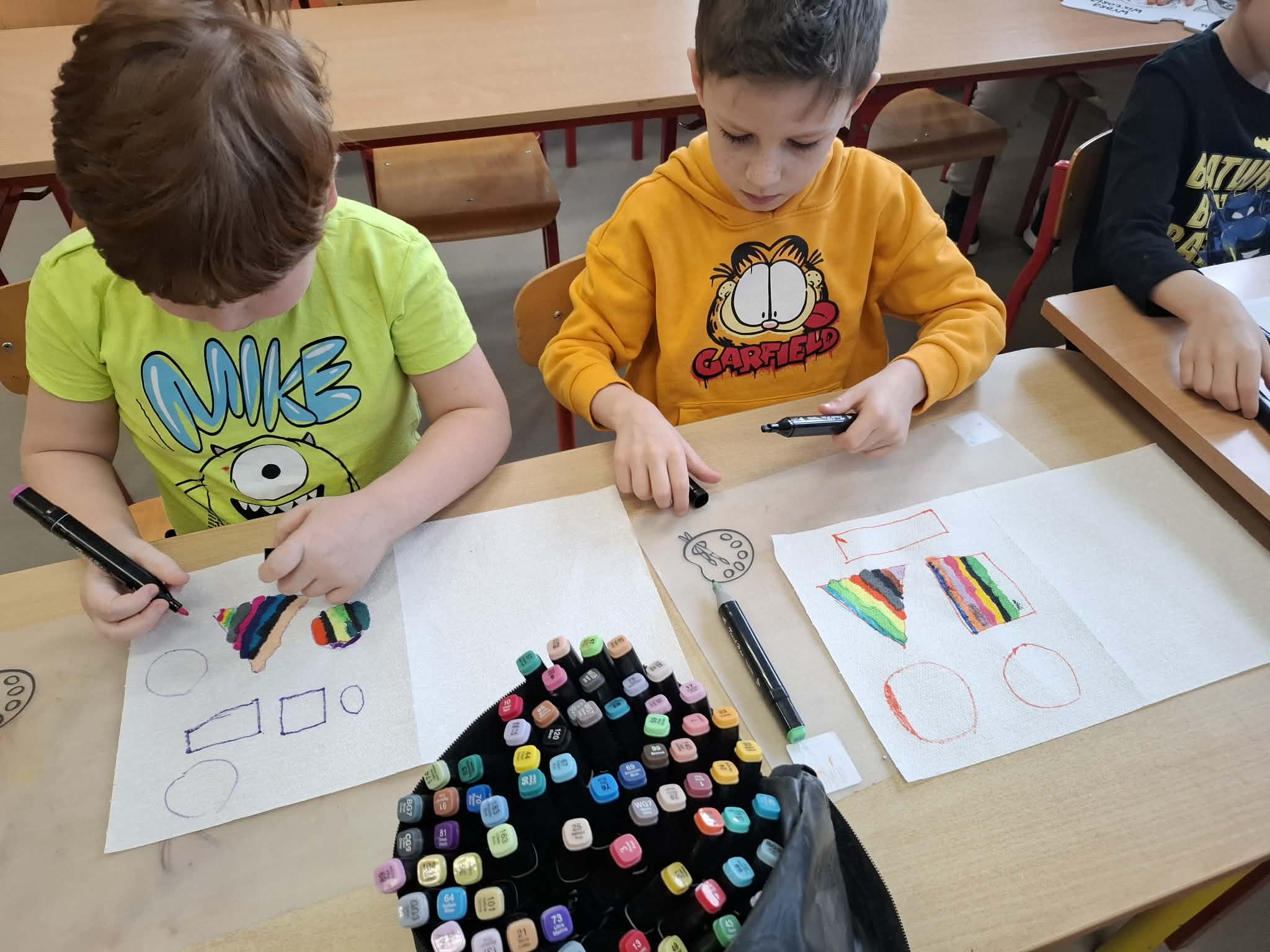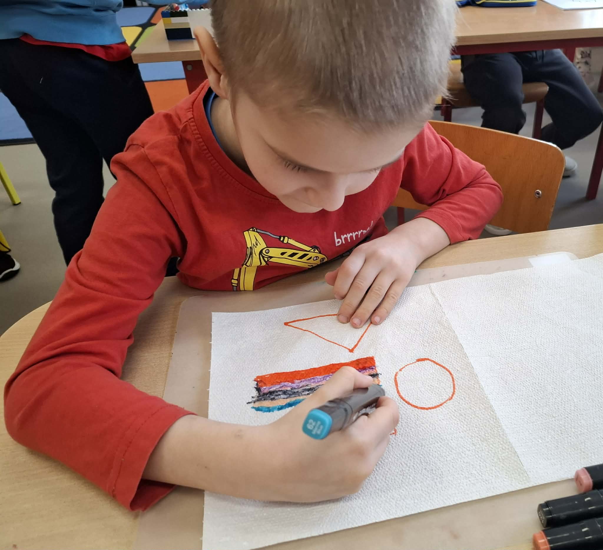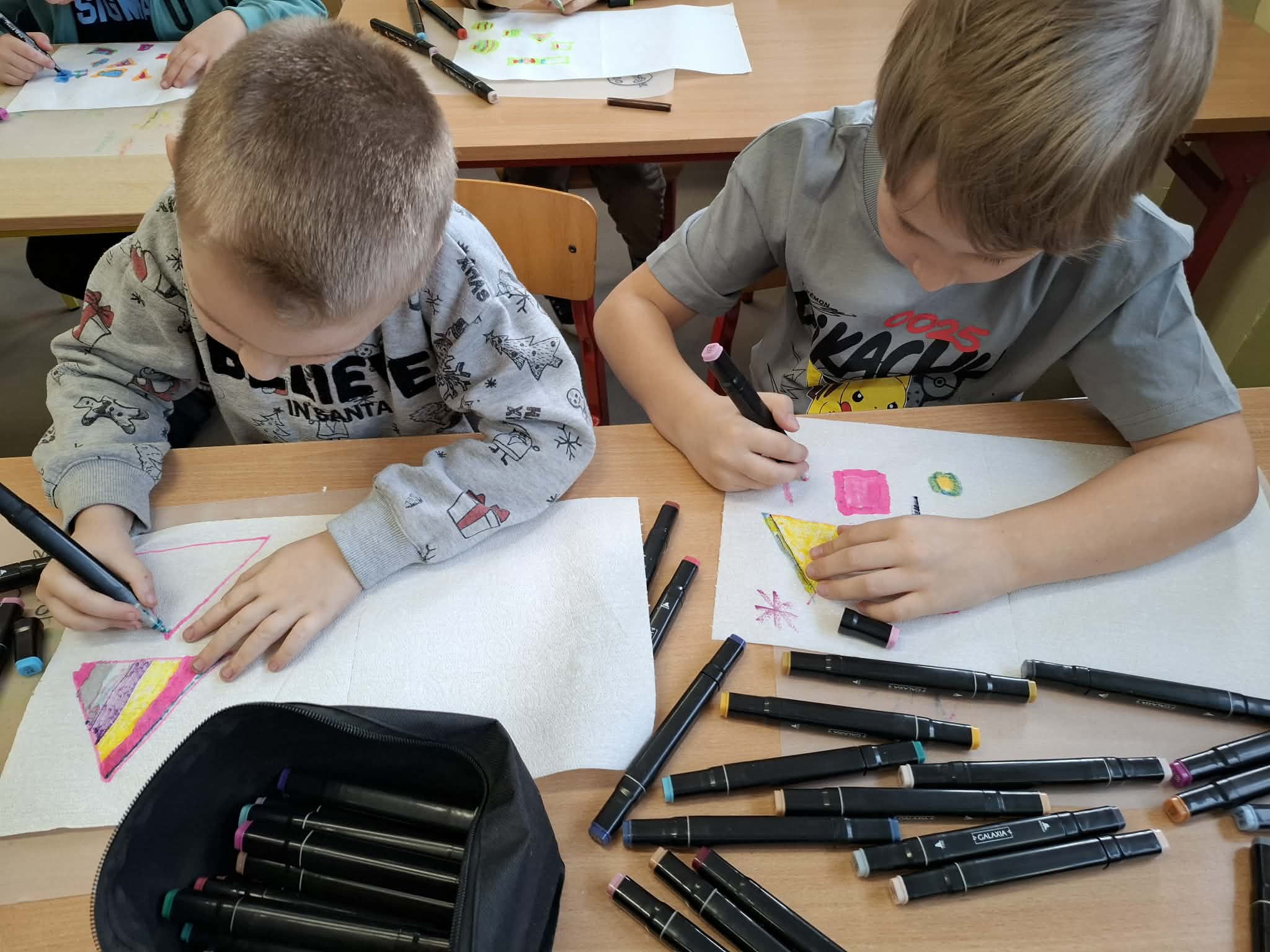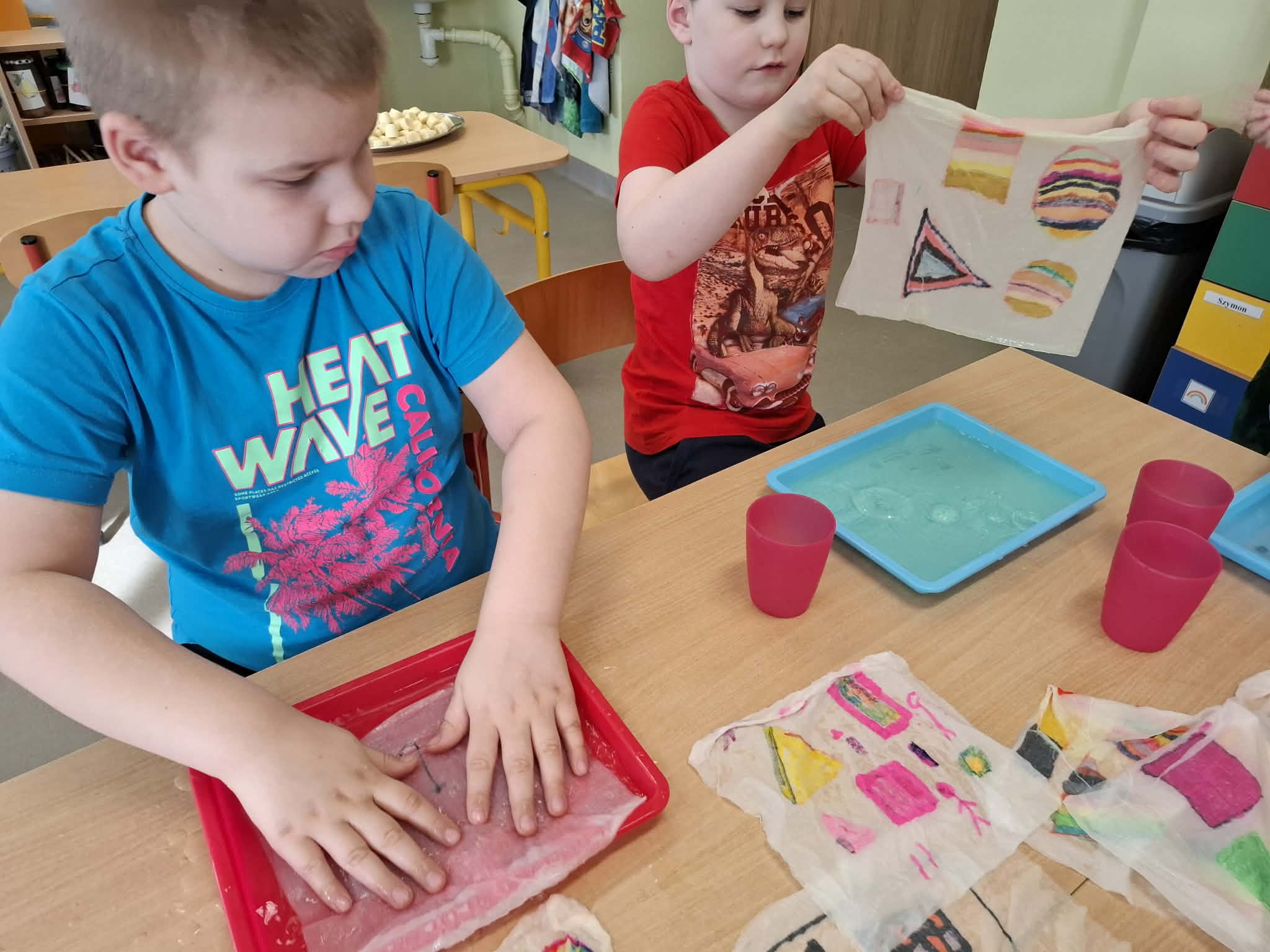 Dziś przedszkolaki zrealizowały piąte zadanie z Ogólnopolskiego Projektu Edukacyjnego “Kreatywna Matematyka”. Na papierowych ręcznikach rysowaly flamastrami figury geometryczne oraz dowolne wzory, składały ręcznik na pół , zanurzały w wodzie i obserwowały , jak kolory rozpuszczają i rozchodzą tworząc efekt “rozmycia”.