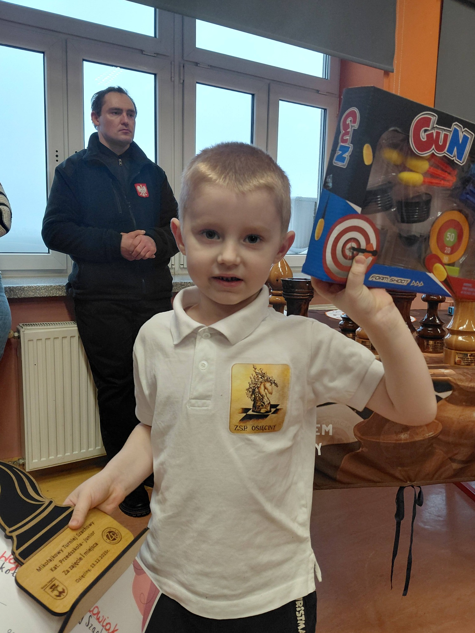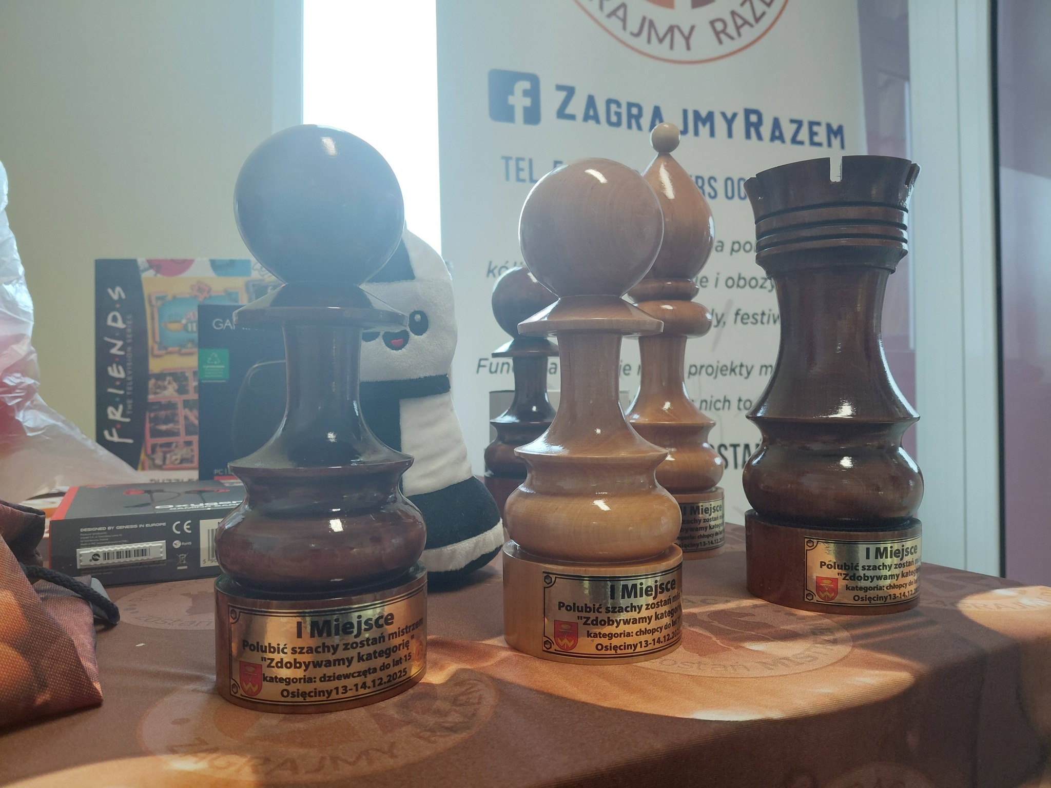 W sobotę nasi szachiści mieli możliwość szlifować umiejętności gry uczestnicząc w turnieju zorganizowanym w ZSP w Osięcinach. Ogromne emocje i zaangażowanie królowały na wszystkich szachownicach. Jesteśmy bardzo dumni z dzieci – wykazały się odwagą, samodzielnym szukaniem najlepszych ruchów i rozwiązywań trudnych szachowych sytuacji. Ćwiczyły koncentrację i wytrwałość grając w 7 rundach. Ta duża porcja myślenia logicznego bardzo się przyda w innych edukacyjnych wyzwaniach. Wszystkim gratulujemy i życzymy dalszych sukcesów. W sobotnim turnieju statuetki trafiły do: Alicji Krajewskiej – II miejsce w grupie dziewczynek. Wojtka Stachowiaka – I miejsce, Mateusza Zeszuta – II miejsce, Szymona Cybulskiego – III miejsce w grupie chłopców.