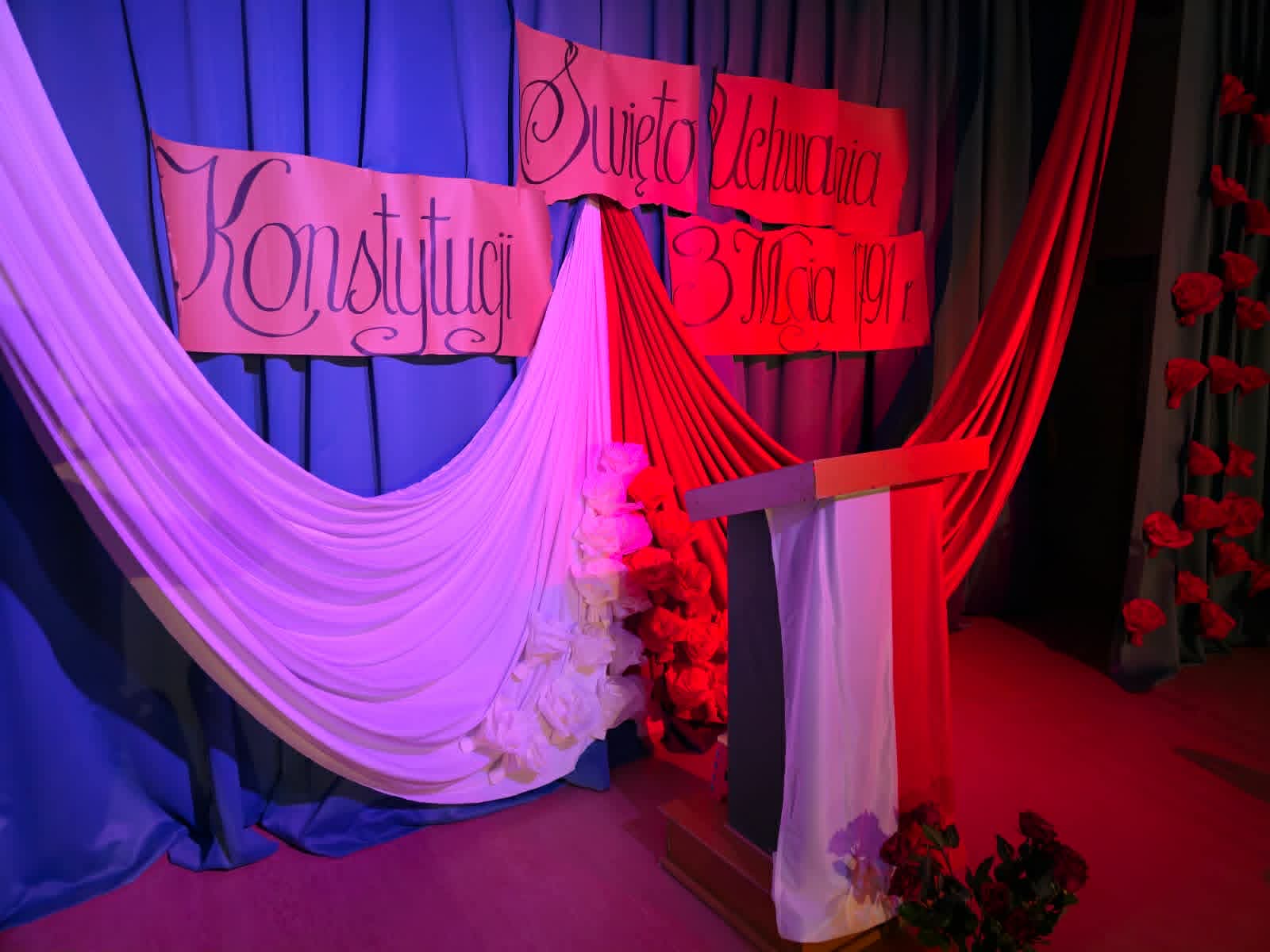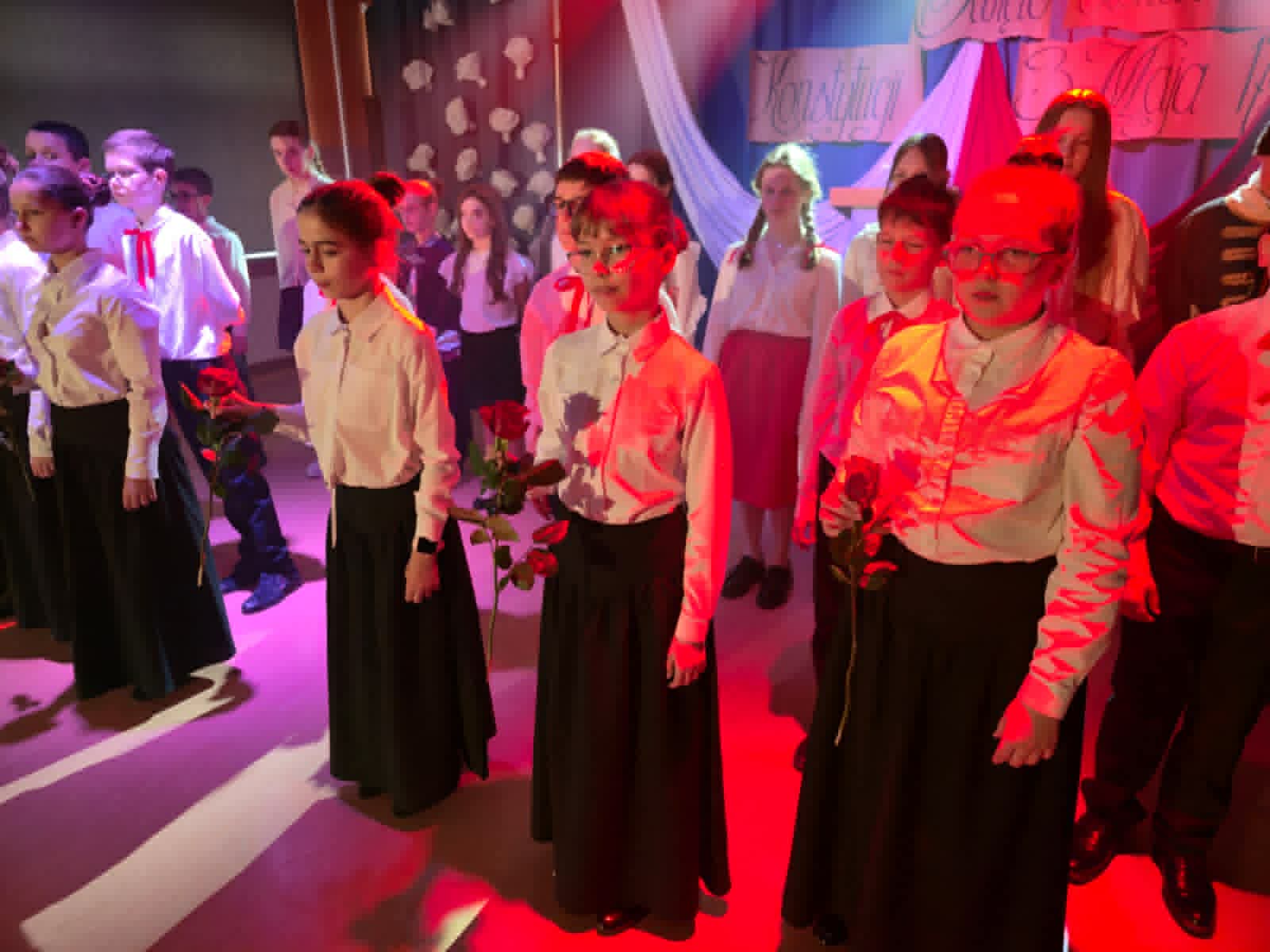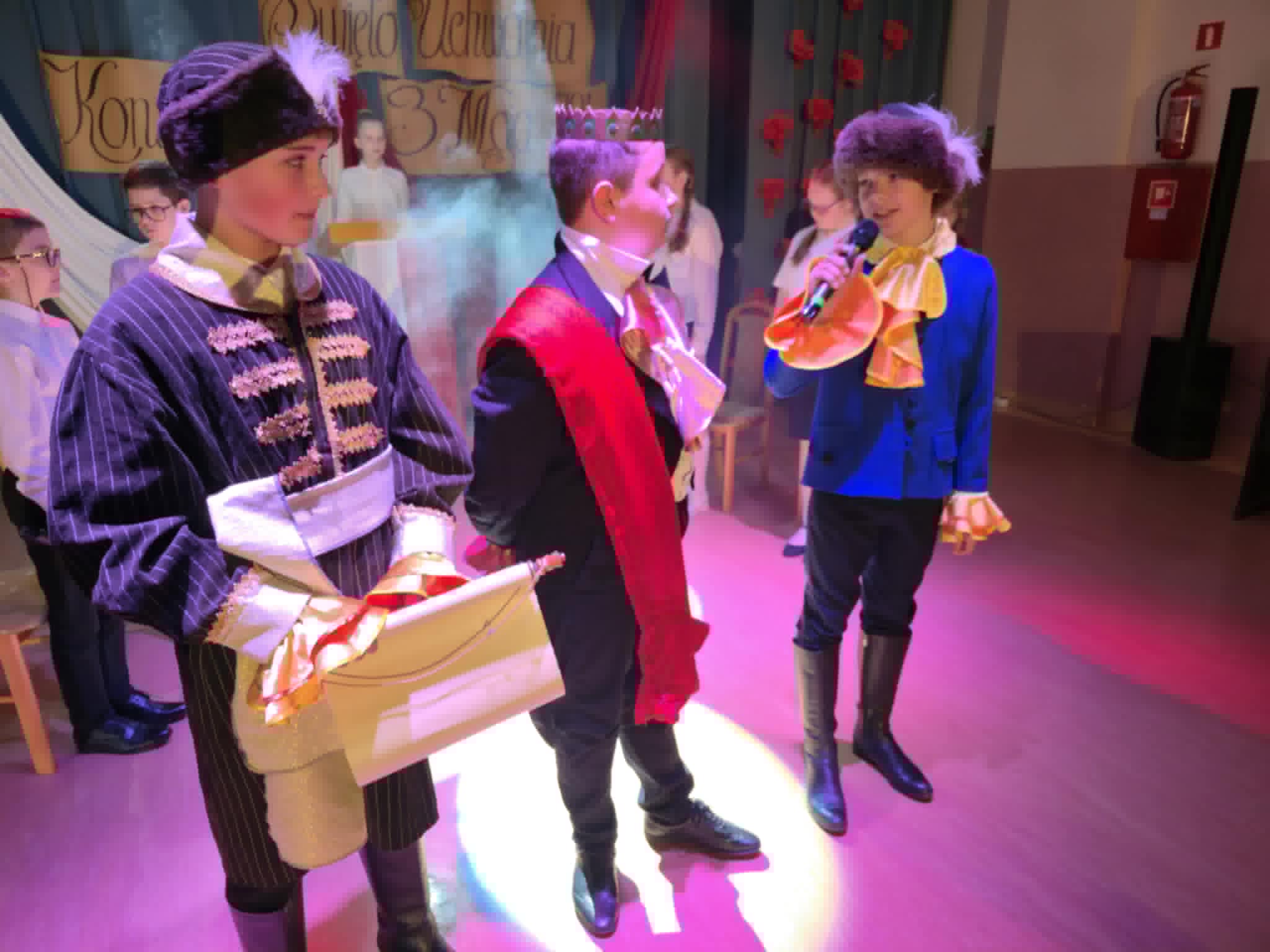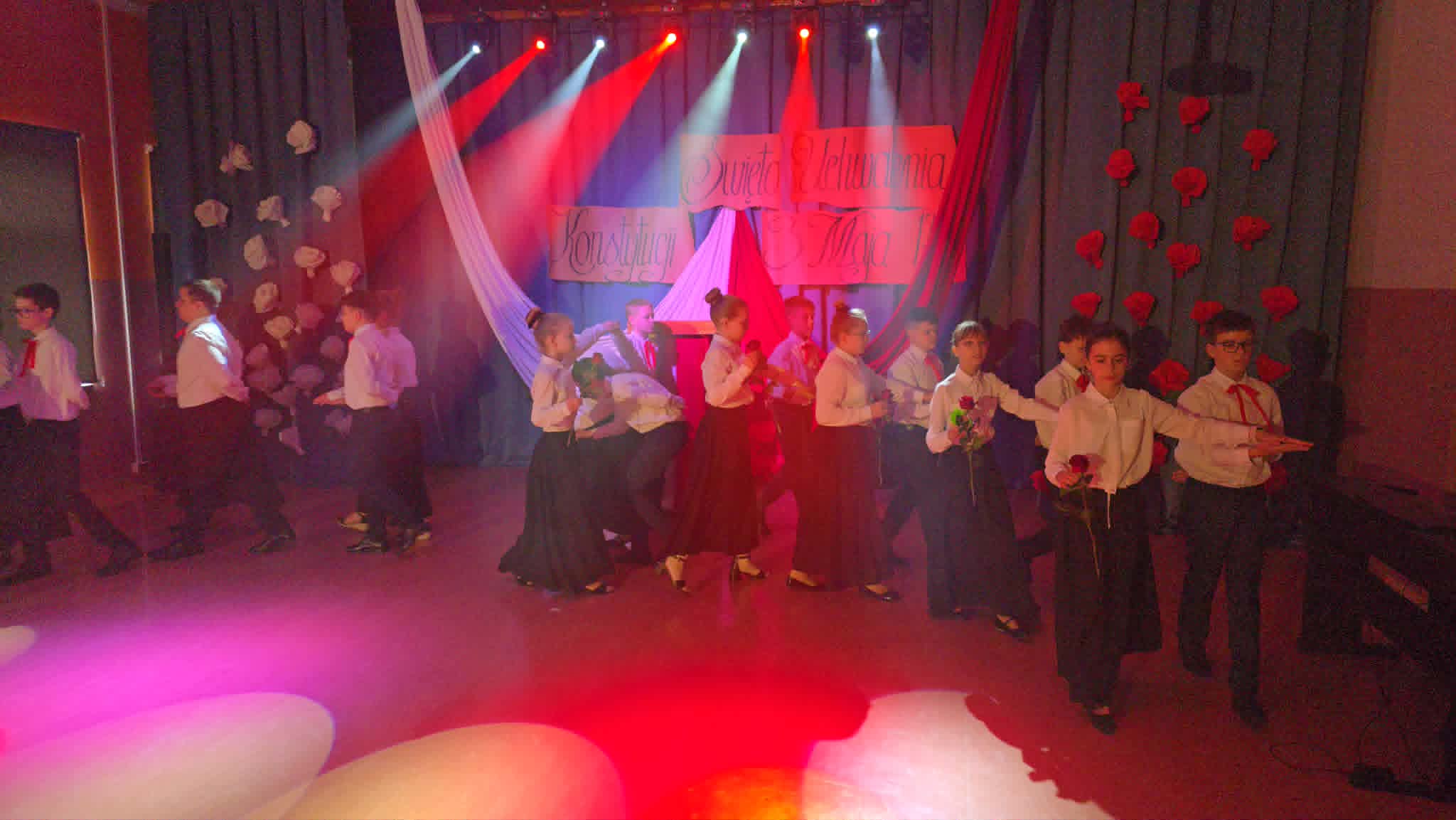 Wolność, Naród, Ojczyzna to hasła przewodnie tegorocznego apelu z okazji 235. rocznicy Uchwalenia Konstytucji 3-go Maja. Uroczystość rozpoczął swoim przemówieniem dyrektor szkoły p. Andrzej Polaszek. Występ artystyczny w wykonaniu uczniów z klasy 5a, 5b, 5c, który miał miejsce 30 kwietnia br. łączył teraźniejszość z przeszłością i przybrał formę sejmiku uczniowskiego, na którym uczniowie mieli okazję poznać ważne fakty historyczne związane z Uchwaleniem Konstytucji. Nie zabrakło wierszy, samodzielnie skomponowanej przez jednego z uczniów prezentacji instrumentalnej oraz piosenek odzwierciedlających klimat tamtych wydarzeń. Zwieńczeniem występu było zatańczenie niezwykle uroczystego poloneza przygotowanego pod profesjonalnym okiem p. A. Rozpędowskiego. Dopełnieniem całości była przepiękna i elegancka dekoracja w biało-czerwonych barwach wykonana przez p. Małgorzatę Hejman z pomocą p. I. Zakrzewskiej. Oryginalną i twórczą oprawę muzyczną tego przedsięwzięcia przygotował p. T. Cybulski. Nad całością montażu słowno-muzycznego czuwały autorki scenariusza i jednocześnie reżyserki przedstawienia- p. A. Jezierska, p . E. Staniszewska, p. A. Waloszek. Fotorelację z uroczystości wykonał p. Krzysztof Banasiak.