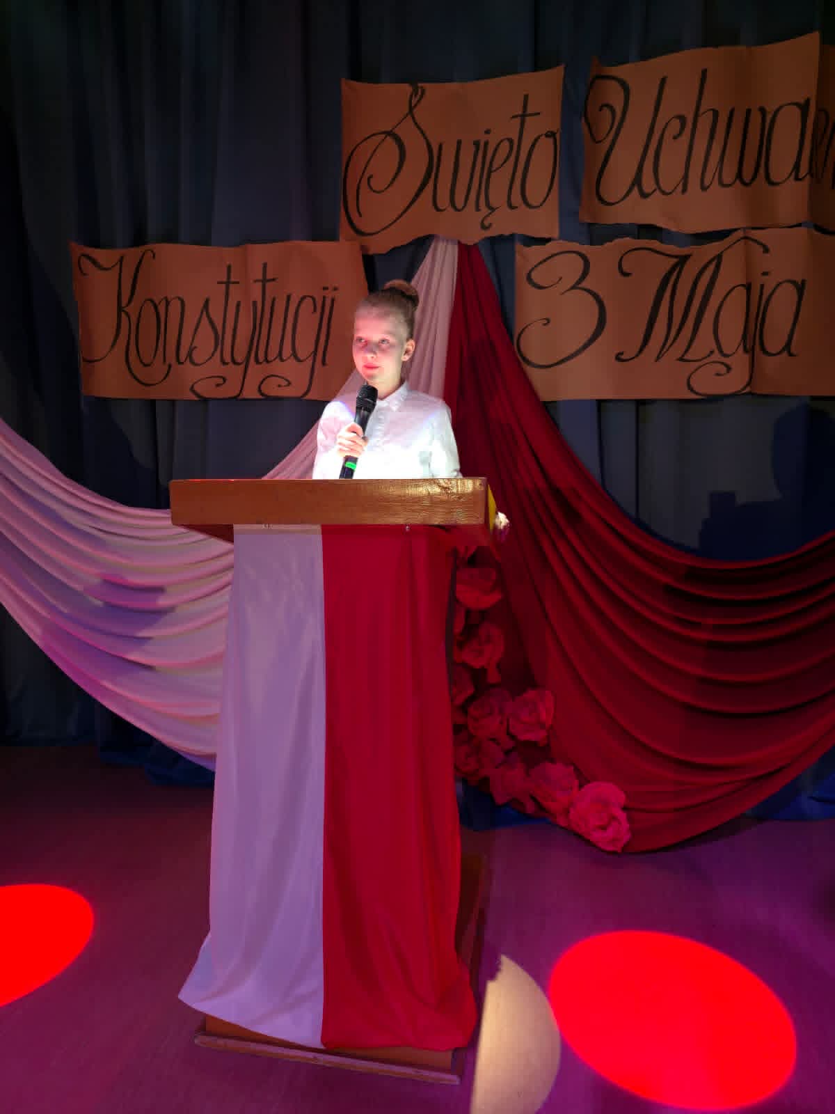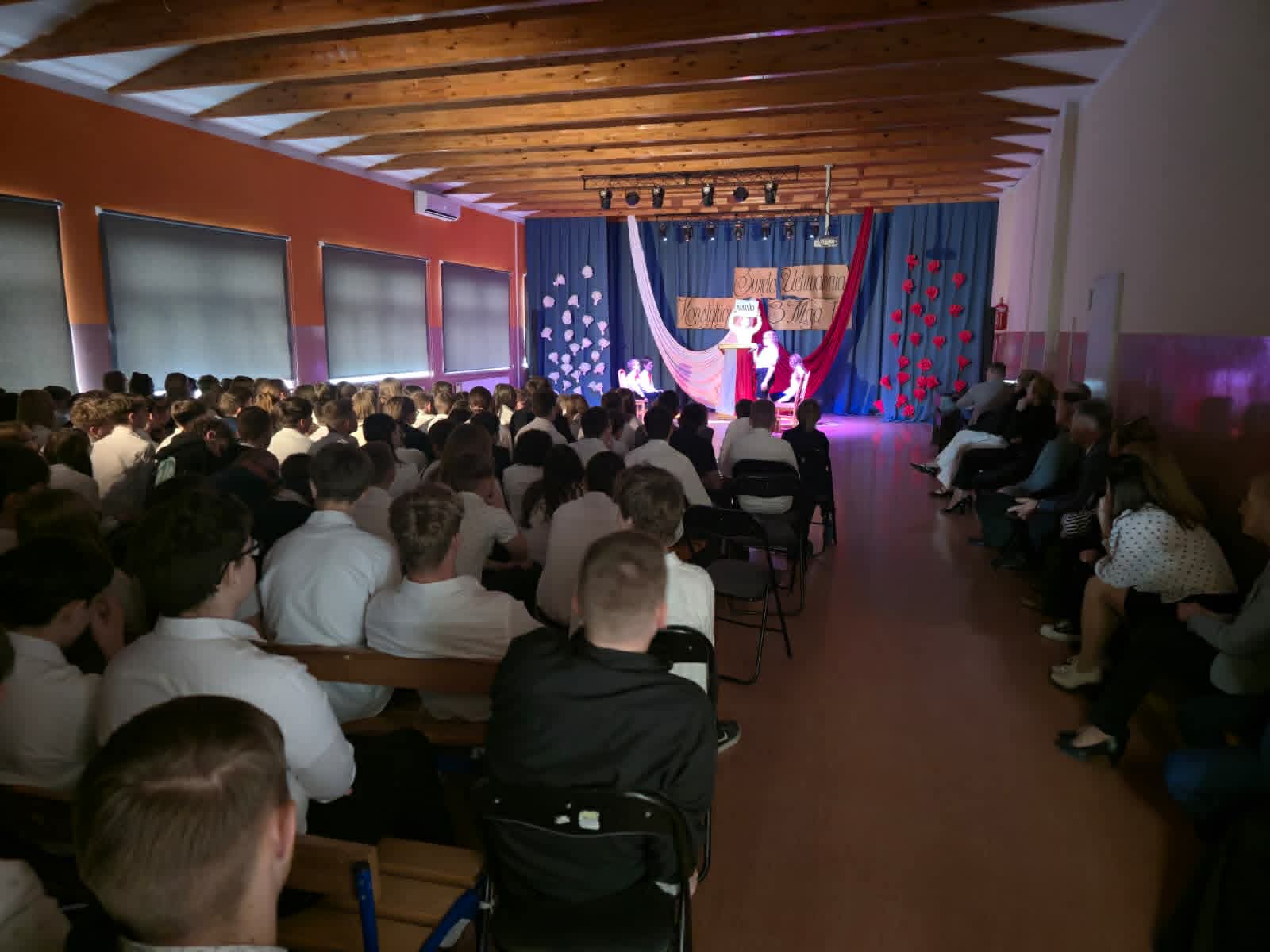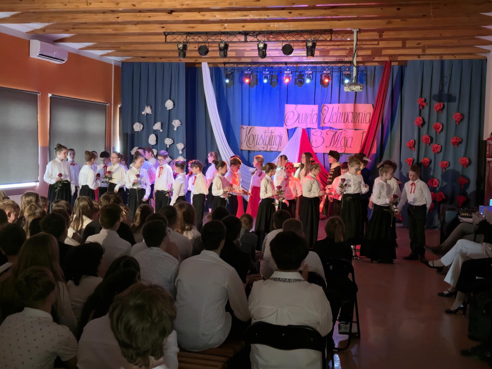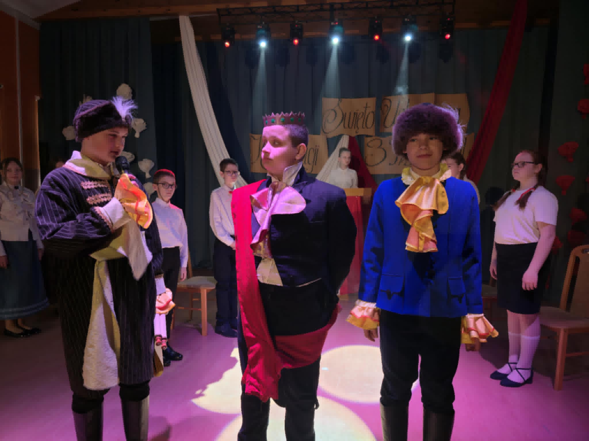 Wolność, Naród, Ojczyzna to hasła przewodnie tegorocznego apelu z okazji 235. rocznicy Uchwalenia Konstytucji 3-go Maja. Uroczystość rozpoczął swoim przemówieniem dyrektor szkoły p. Andrzej Polaszek. Występ artystyczny w wykonaniu uczniów z klasy 5a, 5b, 5c, który miał miejsce 30 kwietnia br. łączył teraźniejszość z przeszłością i przybrał formę sejmiku uczniowskiego, na którym uczniowie mieli okazję poznać ważne fakty historyczne związane z Uchwaleniem Konstytucji. Nie zabrakło wierszy, samodzielnie skomponowanej przez jednego z uczniów prezentacji instrumentalnej oraz piosenek odzwierciedlających klimat tamtych wydarzeń. Zwieńczeniem występu było zatańczenie niezwykle uroczystego poloneza przygotowanego pod profesjonalnym okiem p. A. Rozpędowskiego. Dopełnieniem całości była przepiękna i elegancka dekoracja w biało-czerwonych barwach wykonana przez p. Małgorzatę Hejman z pomocą p. I. Zakrzewskiej. Oryginalną i twórczą oprawę muzyczną tego przedsięwzięcia przygotował p. T. Cybulski. Nad całością montażu słowno-muzycznego czuwały autorki scenariusza i jednocześnie reżyserki przedstawienia- p. A. Jezierska, p . E. Staniszewska, p. A. Waloszek. Fotorelację z uroczystości wykonał p. Krzysztof Banasiak.