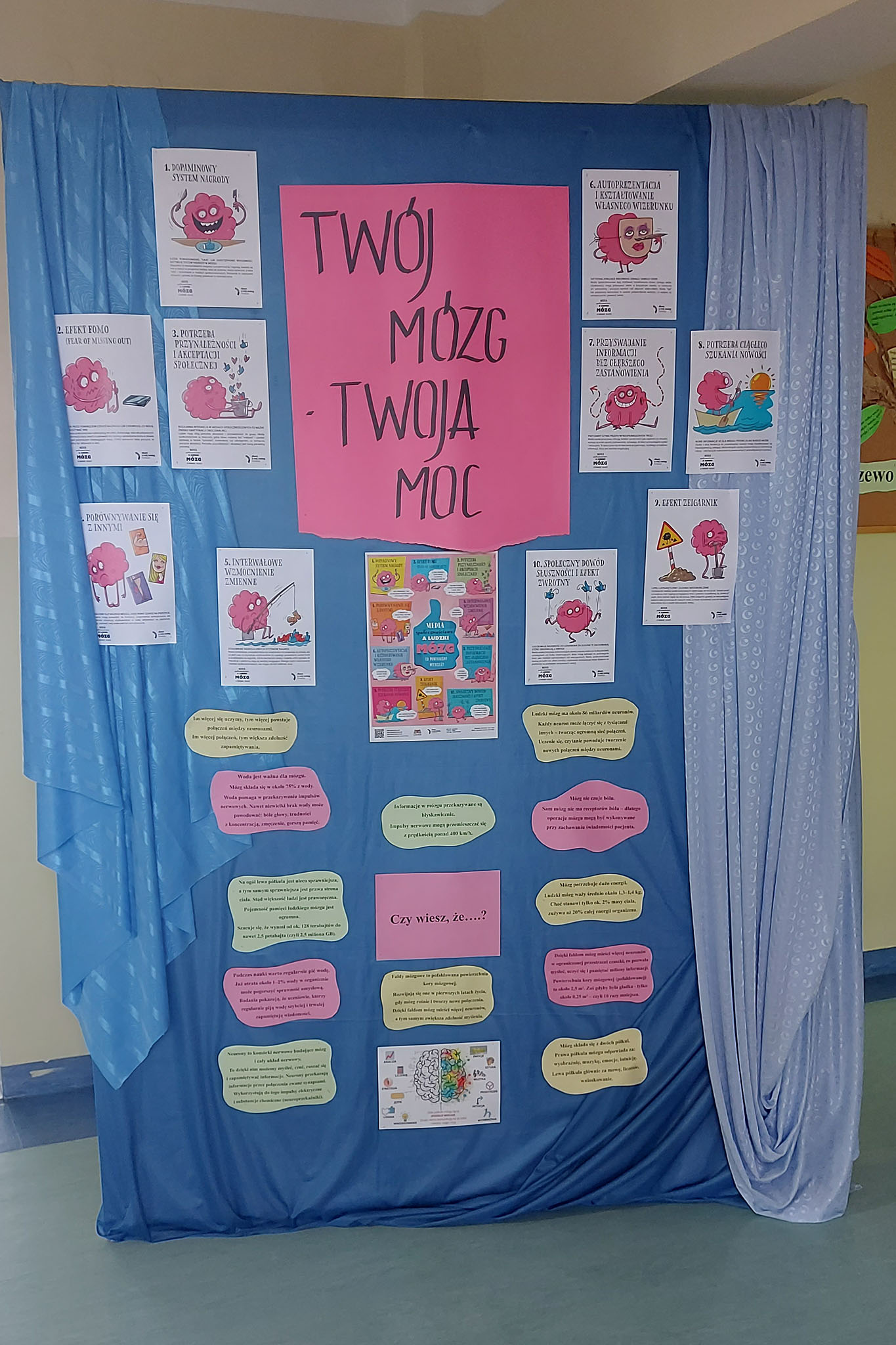 Warto dodać, że w ramach obchodów ,,Tygodnia Mózgu” przygotowano w szkole okolicznościową dekorację: gazetkę ,,Twój mózg-Twoja moc” oraz plakaty motywacyjne. Zaś w klasach IV-VIII odbyły się zajęcia, podczas których omówiono zagadnienia dotyczące tego, co lubi mózg, jak pobudzić pracę mózgu i trenować pamięć.