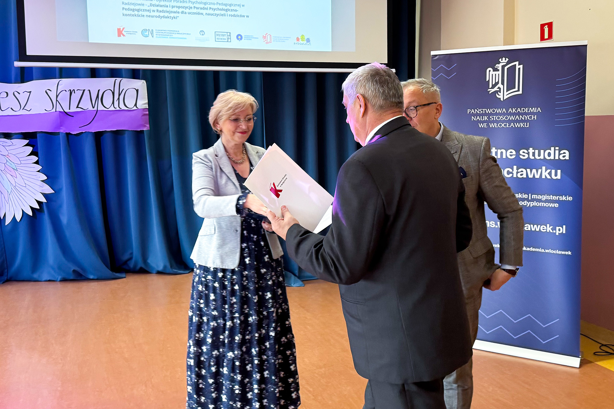 Pierwszą prelegentką była dr Karolina Kaszlińska, prof. PANS, kierownik Zakładu Pedagogiki PANS we Włocławku, która zaprezentowała temat ,,Ocenianie szkolne w perspektywie neurodydaktycznej”. W swoim wystąpieniu zwróciła uwagę na znaczenie wiedzy o funkcjonowaniu mózgu w procesie oceniania uczniów oraz na rolę motywacji i emocji w uczeniu się.