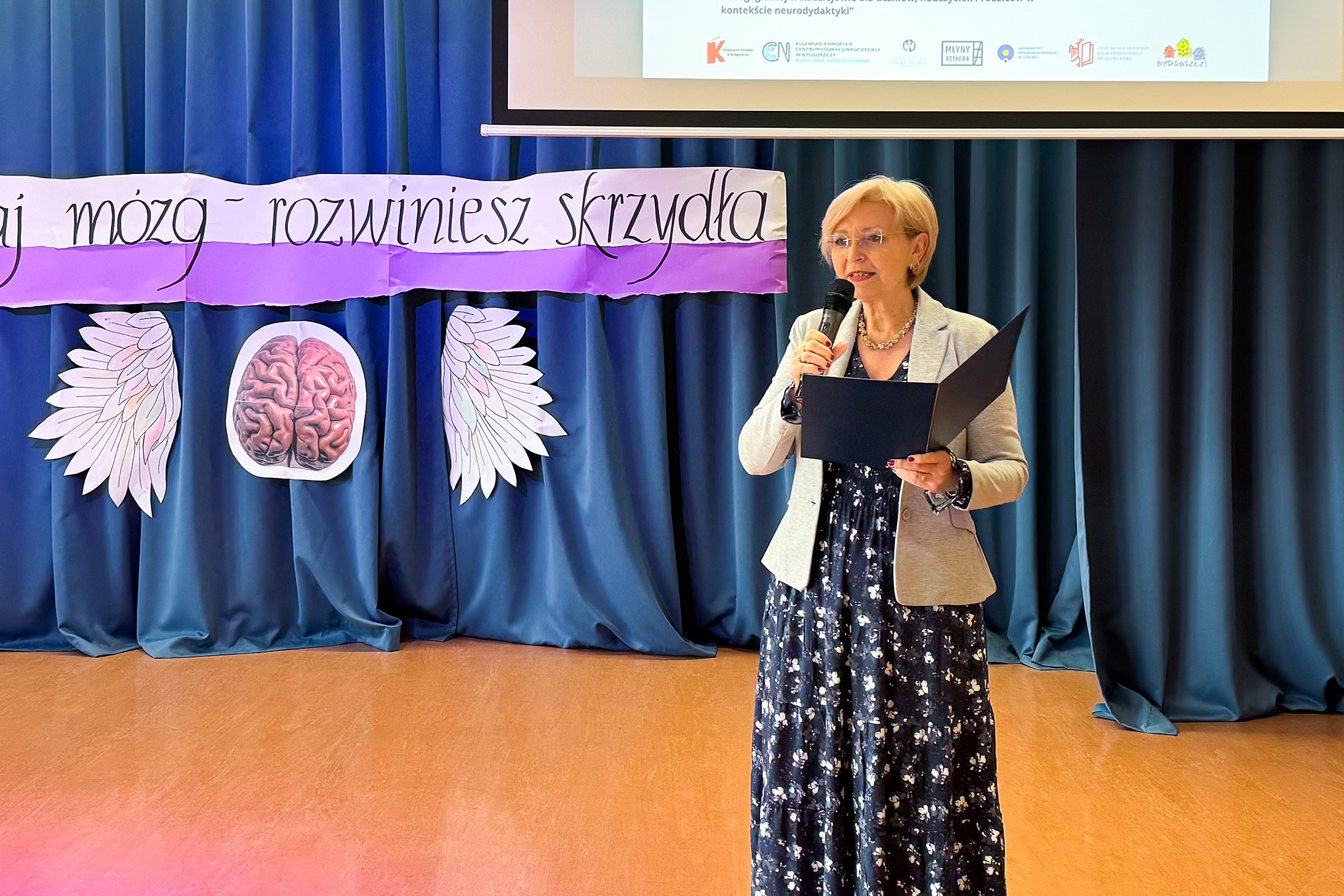 Konferencję prowadziła p. Ewa Adamczyk, starszy wizytator Kuratorium Oświaty w Bydgoszczy Delegatura we Włocławku, która wprowadziła uczestników w tematykę spotkania oraz podkreśliła znaczenie popularyzowania wiedzy o funkcjonowaniu mózgu w środowisku edukacyjnym.