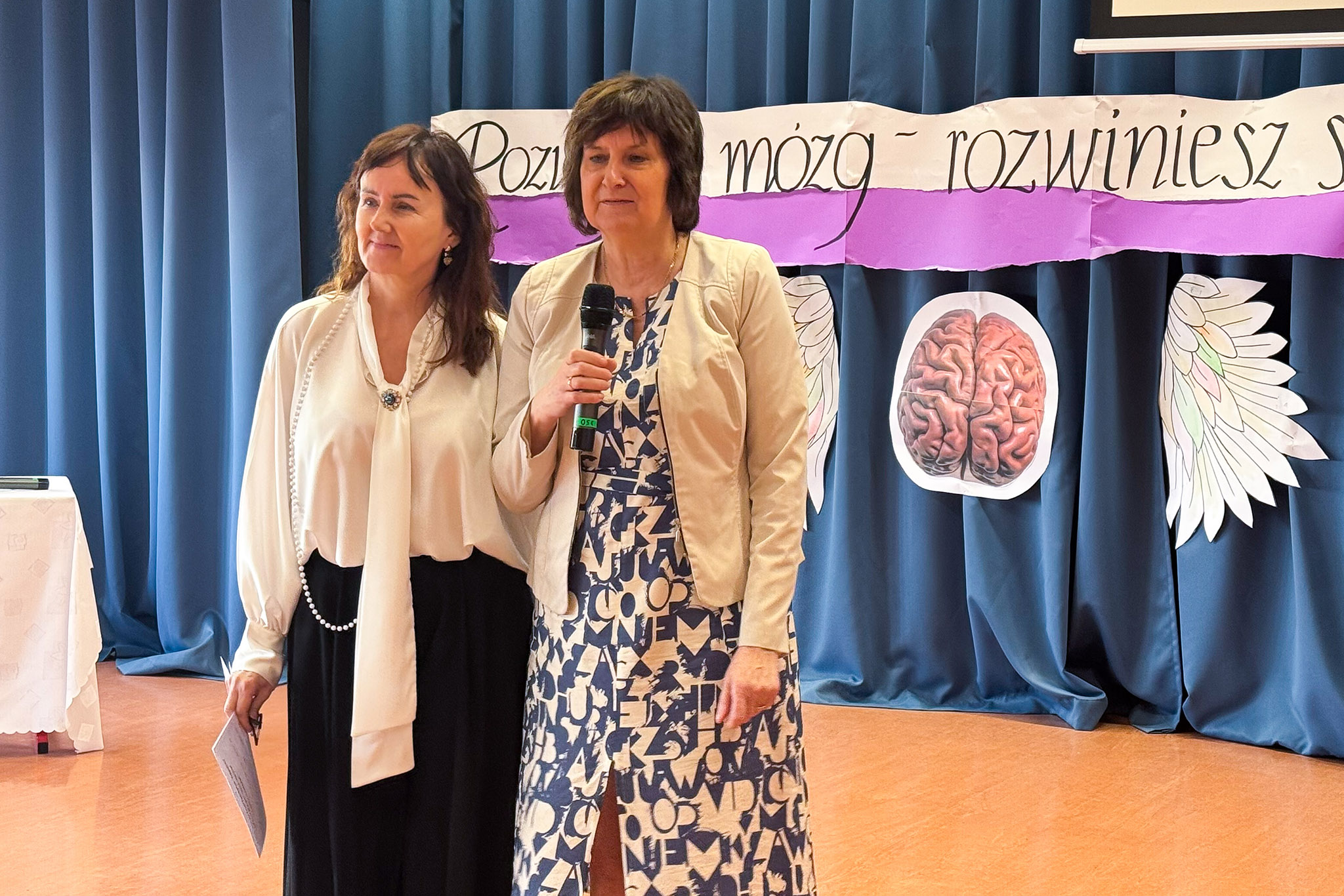 Następnie głos zabrały p. Mariola Pińska, dyrektor Poradni Psychologiczno-Pedagogicznej w Radziejowie oraz p. Jadwiga Lewandowska, pedagog z tejże poradni, przedstawiając temat: „Działania i propozycje Poradni Psychologiczno-Pedagogicznej w Radziejowie dla uczniów, nauczycieli i rodziców w kontekście neurodydaktyki”. Wystąpienie przybliżyło formy wsparcia oferowane przez poradnię oraz możliwości wykorzystania wiedzy o pracy mózgu w praktyce edukacyjnej.