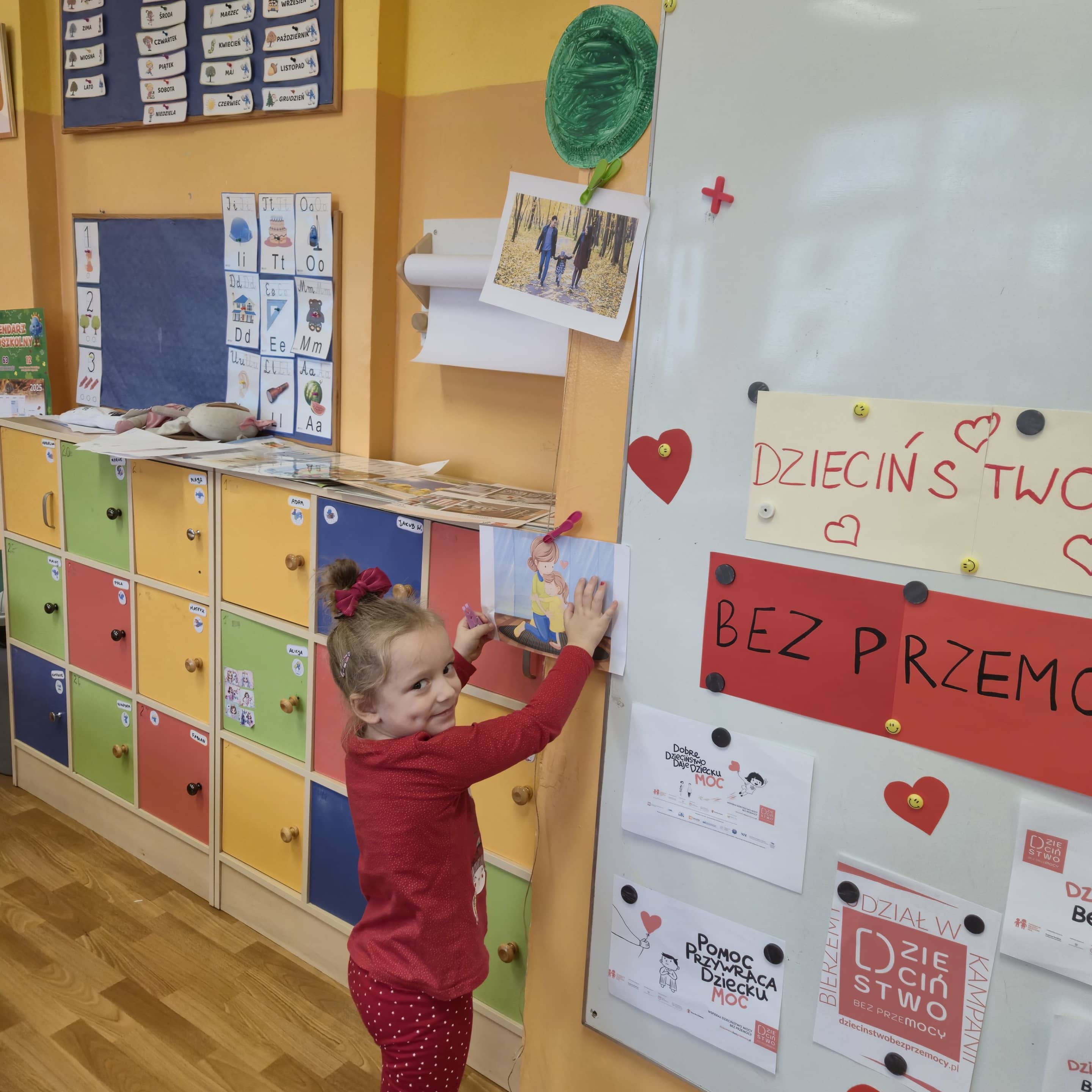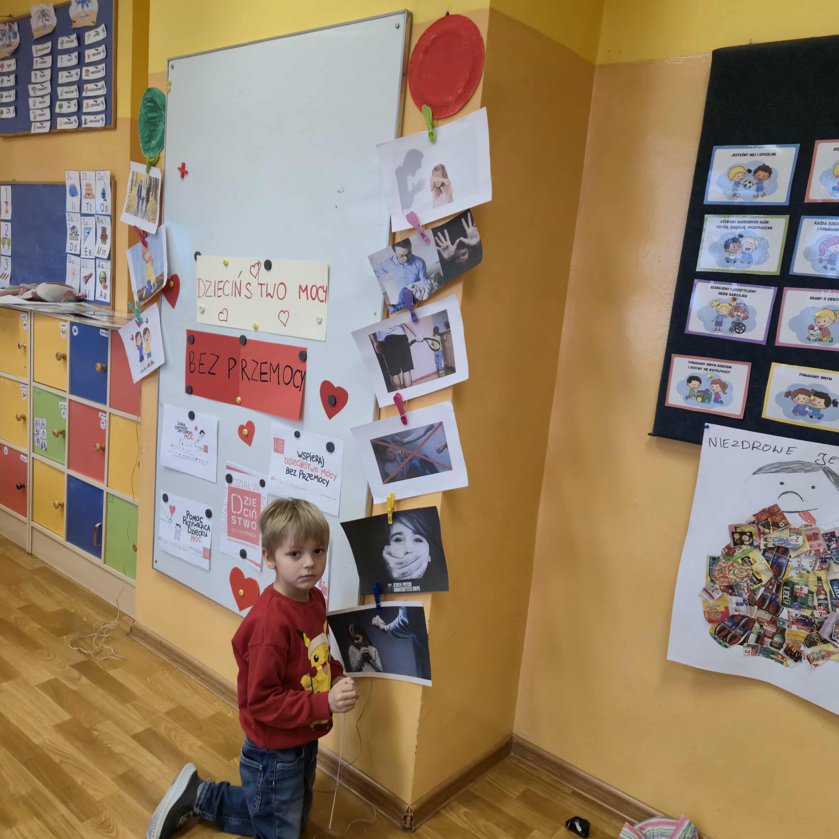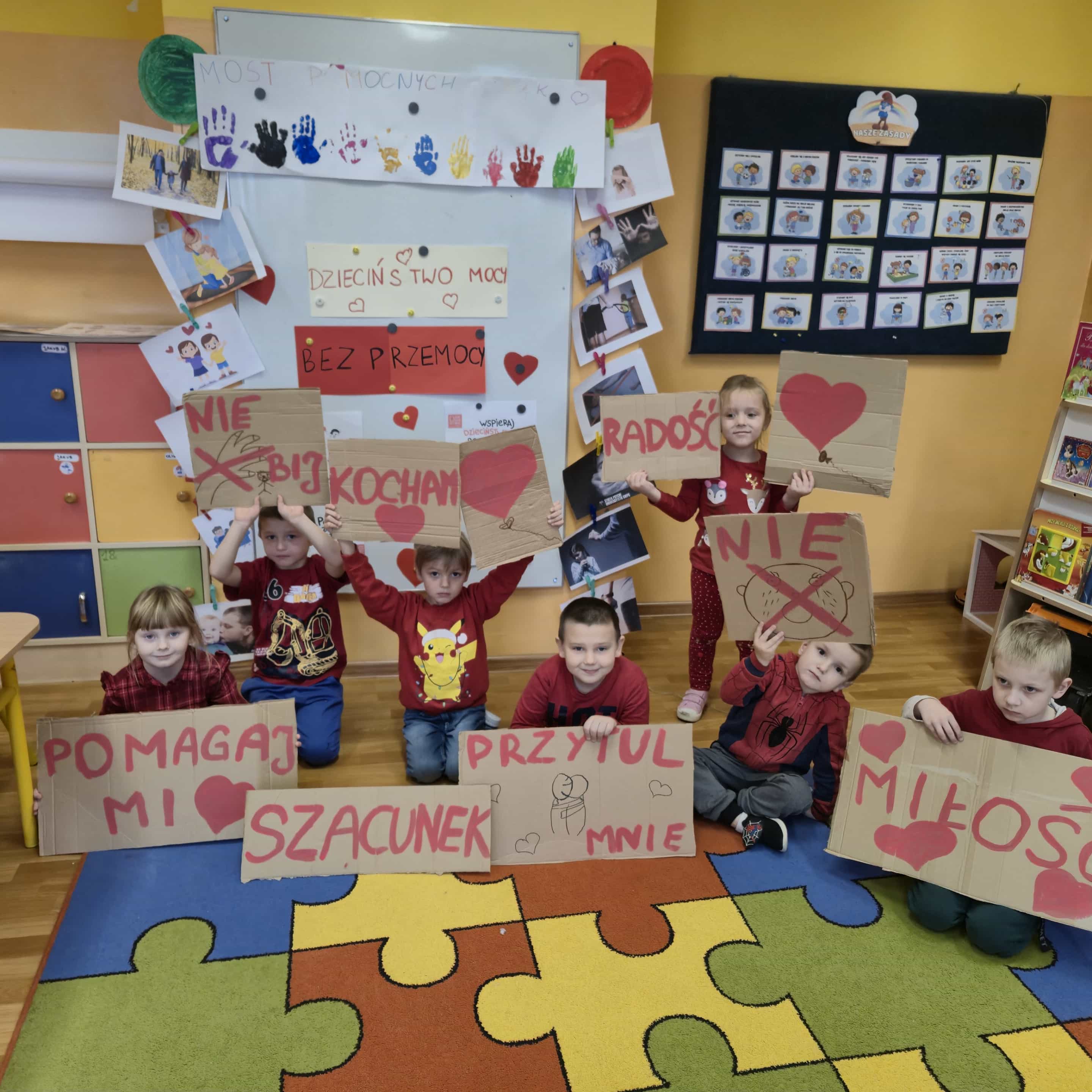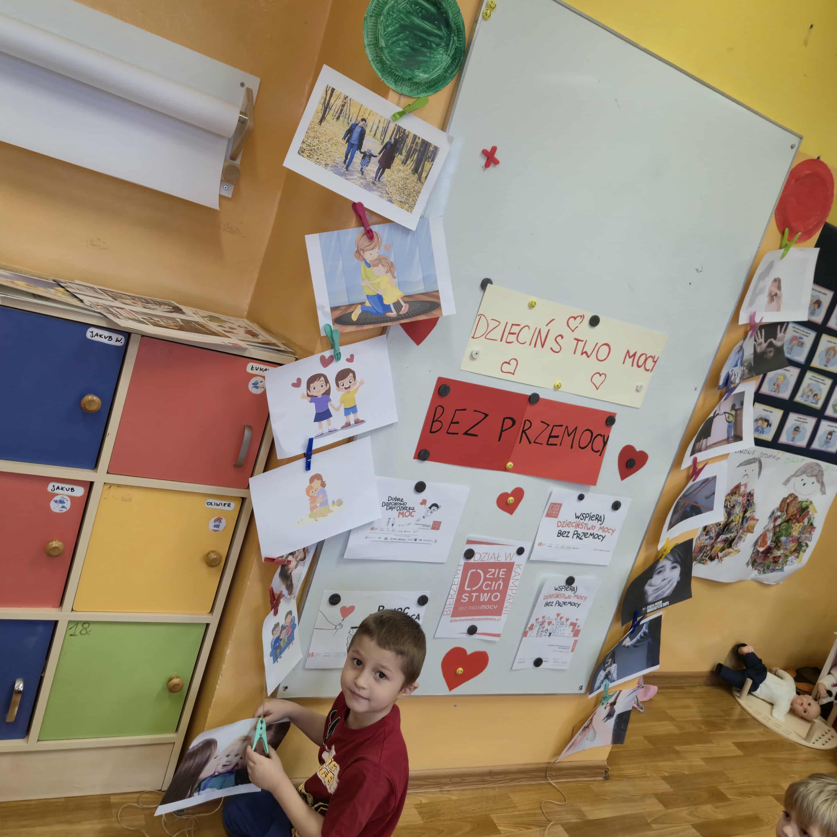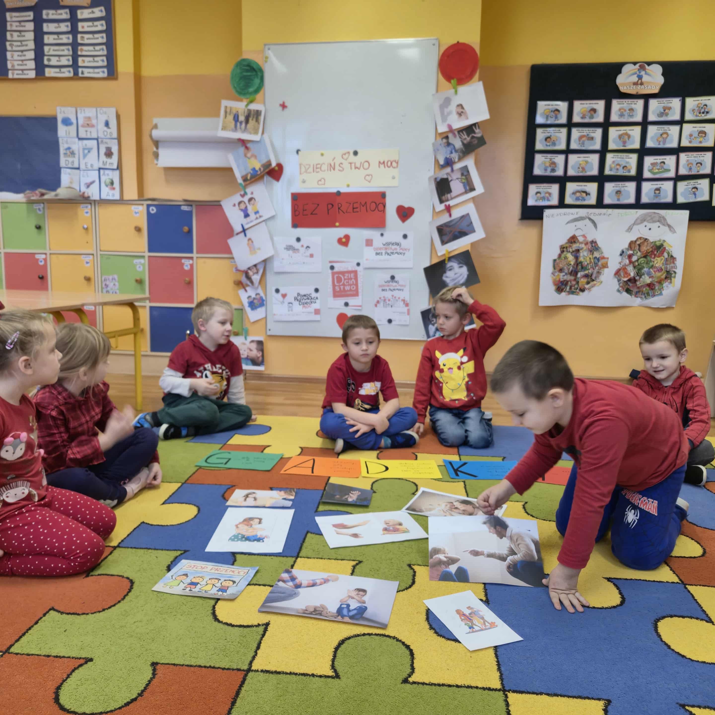 Ogólnopolska Kampania „Dzieciństwo bez Przemocy” ma na celu przeciwdziałanie przemocy wobec dzieci w Polsce, uświadomienie rodzicom negatywnych konsekwencji stosowania kar fizycznych wobec dzieci oraz promowanie pozytywnych metod wychowawczych. Kampania koncentruje się na: uwrażliwianiu społeczeństwa na problem krzywdzenia dzieci w Polsce, wspieraniu ludzi w reagowaniu na przemoc wobec dzieci, promowaniu idei uważnego rodzicielstwa, promocji systemowych rozwiązań na rzecz ochrony dzieci przed krzywdzeniem. Kampania organizowana jest przez Fundację Dajemy Dzieciom Siłę oraz Krajową Koalicję na rzecz Ochrony Dzieci. Głównym partnerem kampanii jest Rzeczniczka Praw Dziecka. Nasze przedszkole również dołączyło do kampanii organizując zajęcia edukacyjne, które pomogą dzieciom: •unikać zagrożeń związanych z przemocą, •uświadamiać co to jest dobry i zły dotyk? •przekazać wiedzę, iż jego ciało jest jego własnością. Przedszkolaki z grupy “Smerfy” w ramach kampanii przyszły ubrane na czerwono, na znak sprzeciwu wobec krzywdzenia dzieci w całej Polsce. Podczas zajęć dzieci wykonały zadania związane z tematyką: “Most pomocnych rączek” – odciskanie swoich dłoni, segregowanie ilustracji dobrych i złych zachowań wobec dzieci, rozmowa o emocjach, “moja wyjątkowa maskotka”-dlaczego jest wyjątkowa?, Oglądanie filmu edukacyjnego pt.: “Gadki z psem” Zdrowe, bezpieczne, akceptowane. Szczęśliwe dziecko, to przede wszystkim dziecko kochane. Każdy z pewnością podałby podobną definicję szczęścia dzieci, choć nie istnieje jedna jedyna. Każdy także chciałby, by jego dziecko było szczęśliwe i dąży do tego, by to pragnienie spełnić Przedszkole jako instytucja edukacyjna, aktywnie wspiera rozwój dziecka, pomaga mu budować moc do stawienia czoła wyzwaniom dorosłości, a także rozwija w nim umiejętności, które będą niezbędne w dalszym życiu.