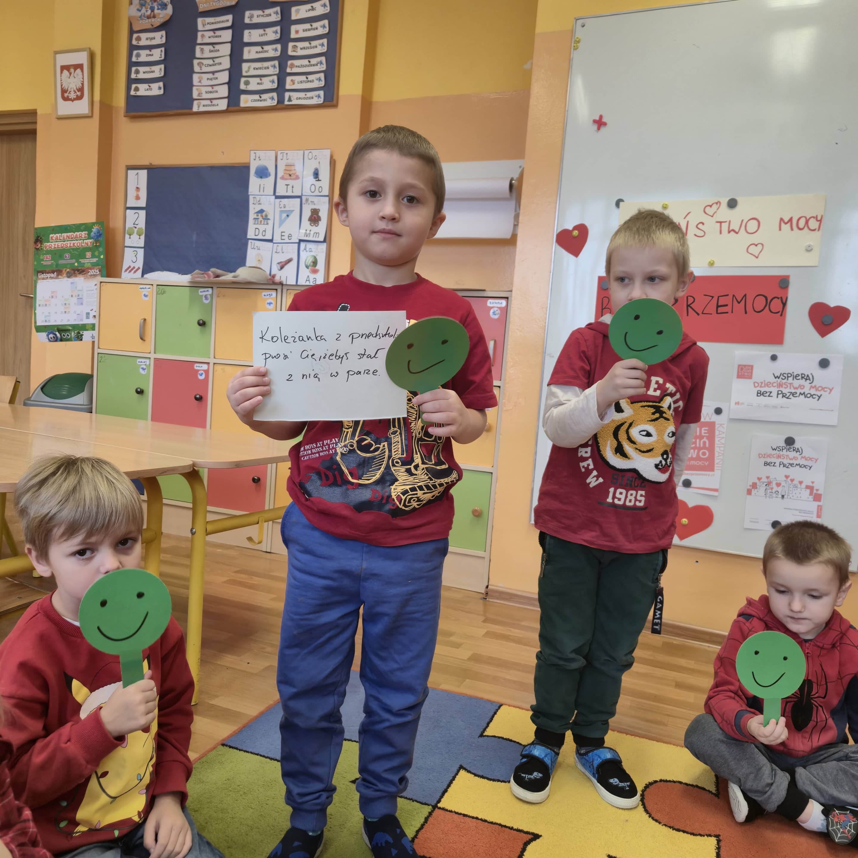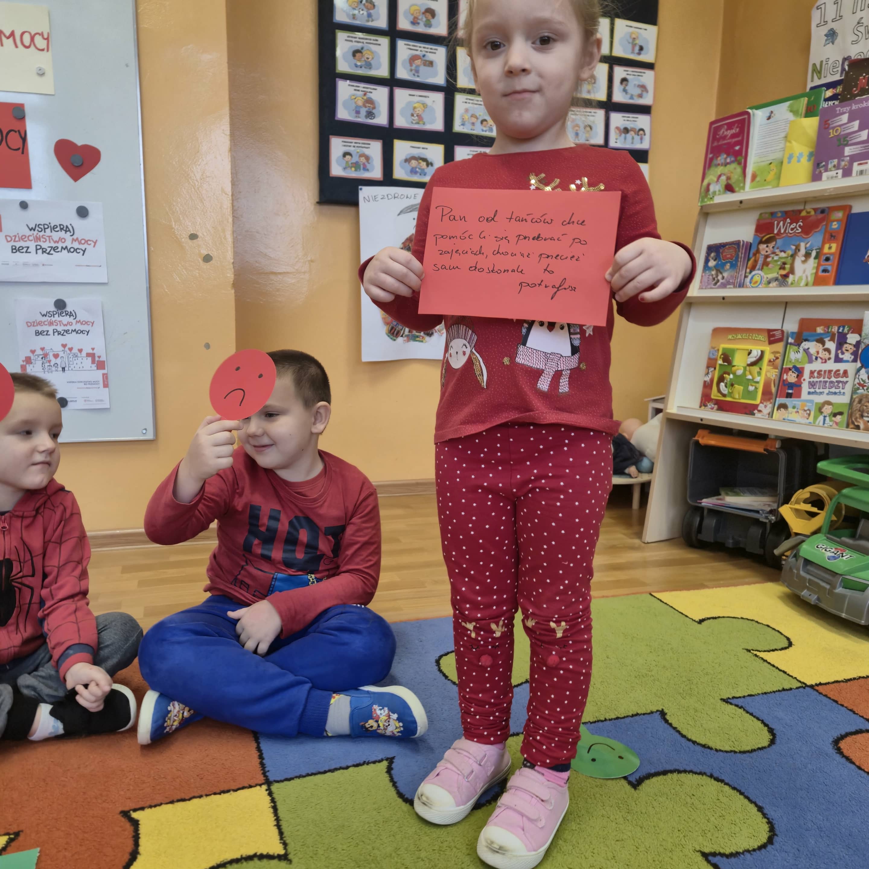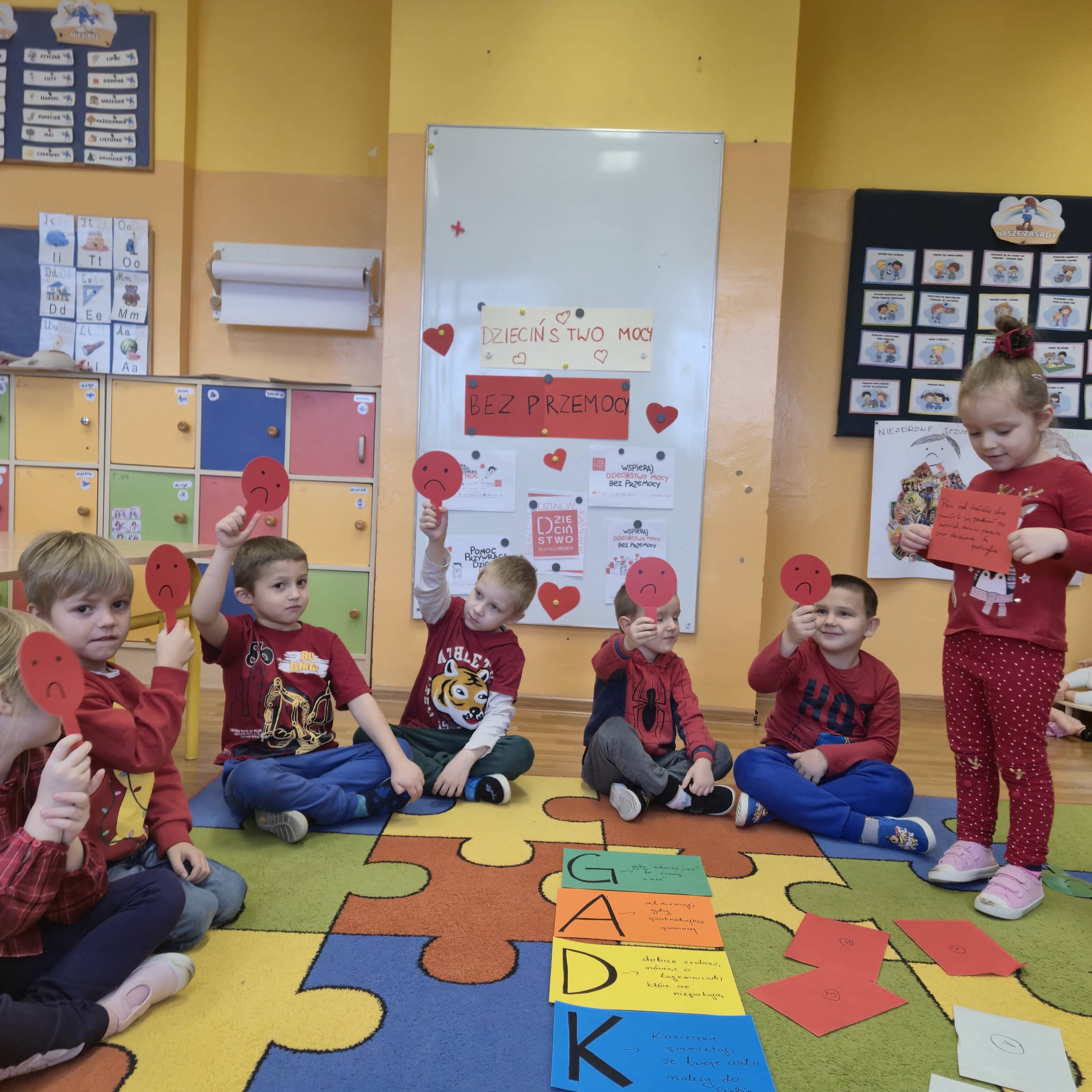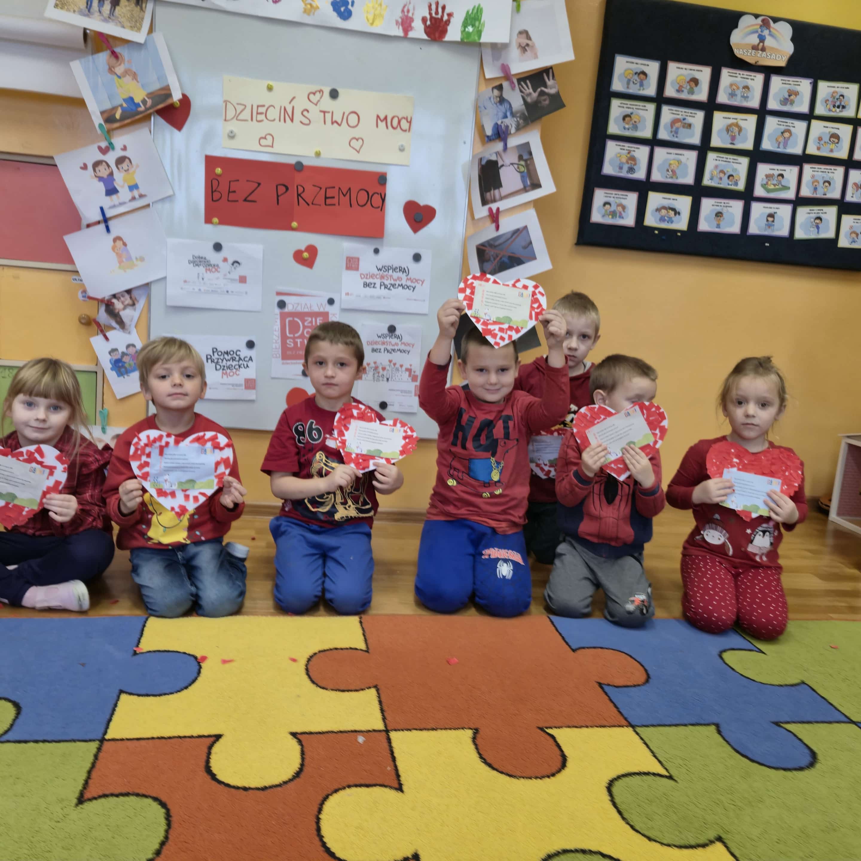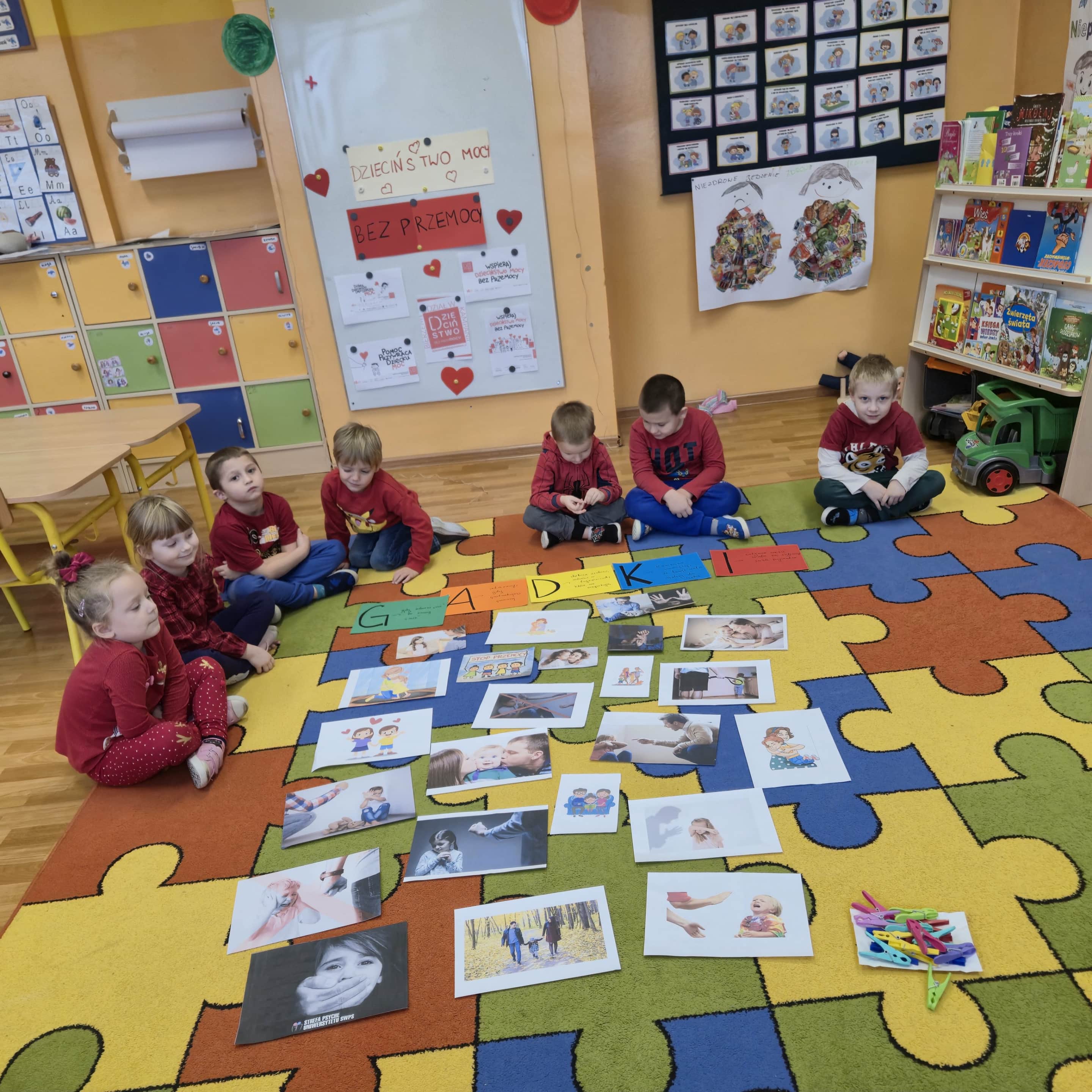 Ogólnopolska Kampania „Dzieciństwo bez Przemocy” ma na celu przeciwdziałanie przemocy wobec dzieci w Polsce, uświadomienie rodzicom negatywnych konsekwencji stosowania kar fizycznych wobec dzieci oraz promowanie pozytywnych metod wychowawczych. Kampania koncentruje się na: uwrażliwianiu społeczeństwa na problem krzywdzenia dzieci w Polsce, wspieraniu ludzi w reagowaniu na przemoc wobec dzieci, promowaniu idei uważnego rodzicielstwa, promocji systemowych rozwiązań na rzecz ochrony dzieci przed krzywdzeniem. Kampania organizowana jest przez Fundację Dajemy Dzieciom Siłę oraz Krajową Koalicję na rzecz Ochrony Dzieci. Głównym partnerem kampanii jest Rzeczniczka Praw Dziecka. Nasze przedszkole również dołączyło do kampanii organizując zajęcia edukacyjne, które pomogą dzieciom: •unikać zagrożeń związanych z przemocą, •uświadamiać co to jest dobry i zły dotyk? •przekazać wiedzę, iż jego ciało jest jego własnością. Przedszkolaki z grupy “Smerfy” w ramach kampanii przyszły ubrane na czerwono, na znak sprzeciwu wobec krzywdzenia dzieci w całej Polsce. Podczas zajęć dzieci wykonały zadania związane z tematyką: “Most pomocnych rączek” – odciskanie swoich dłoni, segregowanie ilustracji dobrych i złych zachowań wobec dzieci, rozmowa o emocjach, “moja wyjątkowa maskotka”-dlaczego jest wyjątkowa?, Oglądanie filmu edukacyjnego pt.: “Gadki z psem” Zdrowe, bezpieczne, akceptowane. Szczęśliwe dziecko, to przede wszystkim dziecko kochane. Każdy z pewnością podałby podobną definicję szczęścia dzieci, choć nie istnieje jedna jedyna. Każdy także chciałby, by jego dziecko było szczęśliwe i dąży do tego, by to pragnienie spełnić Przedszkole jako instytucja edukacyjna, aktywnie wspiera rozwój dziecka, pomaga mu budować moc do stawienia czoła wyzwaniom dorosłości, a także rozwija w nim umiejętności, które będą niezbędne w dalszym życiu.