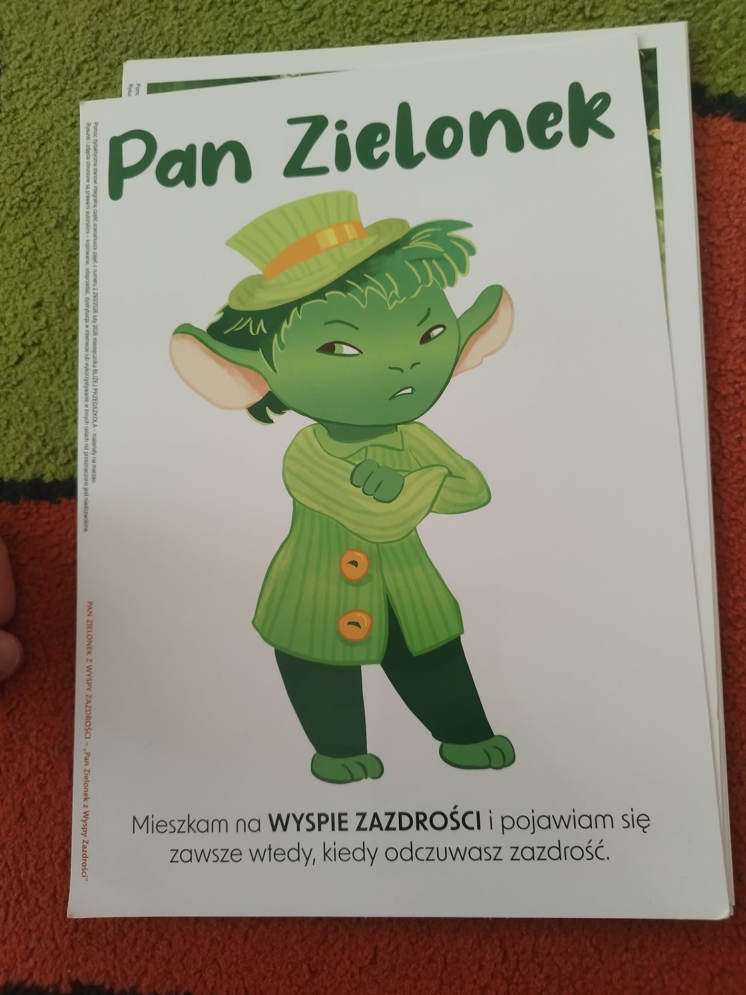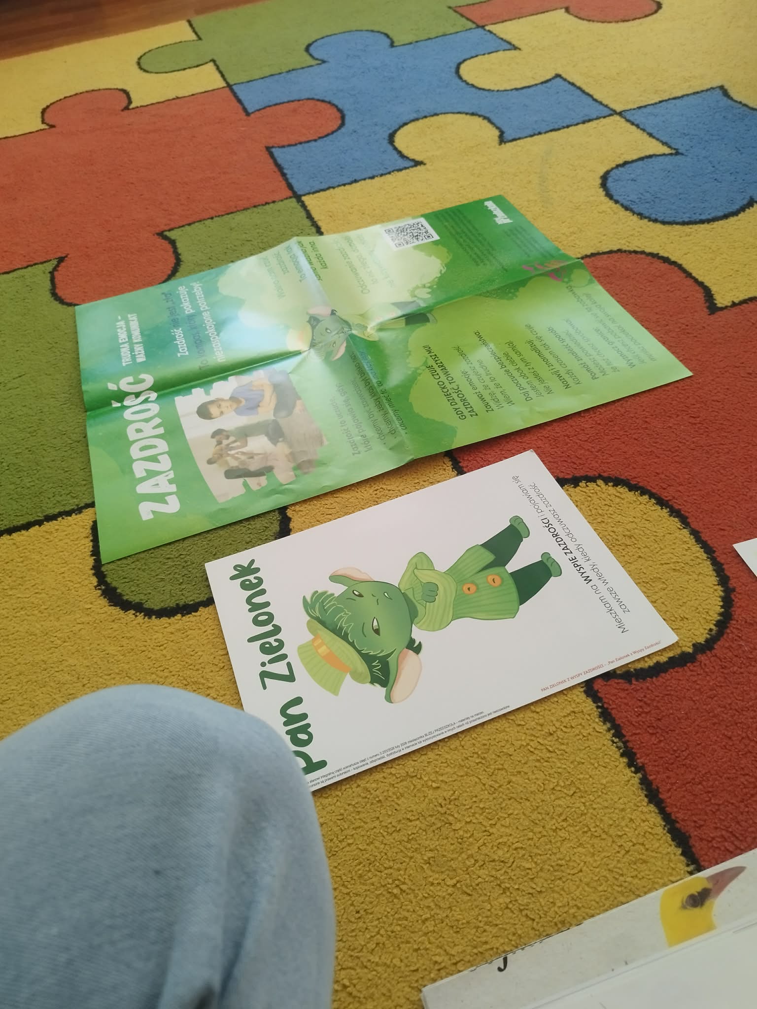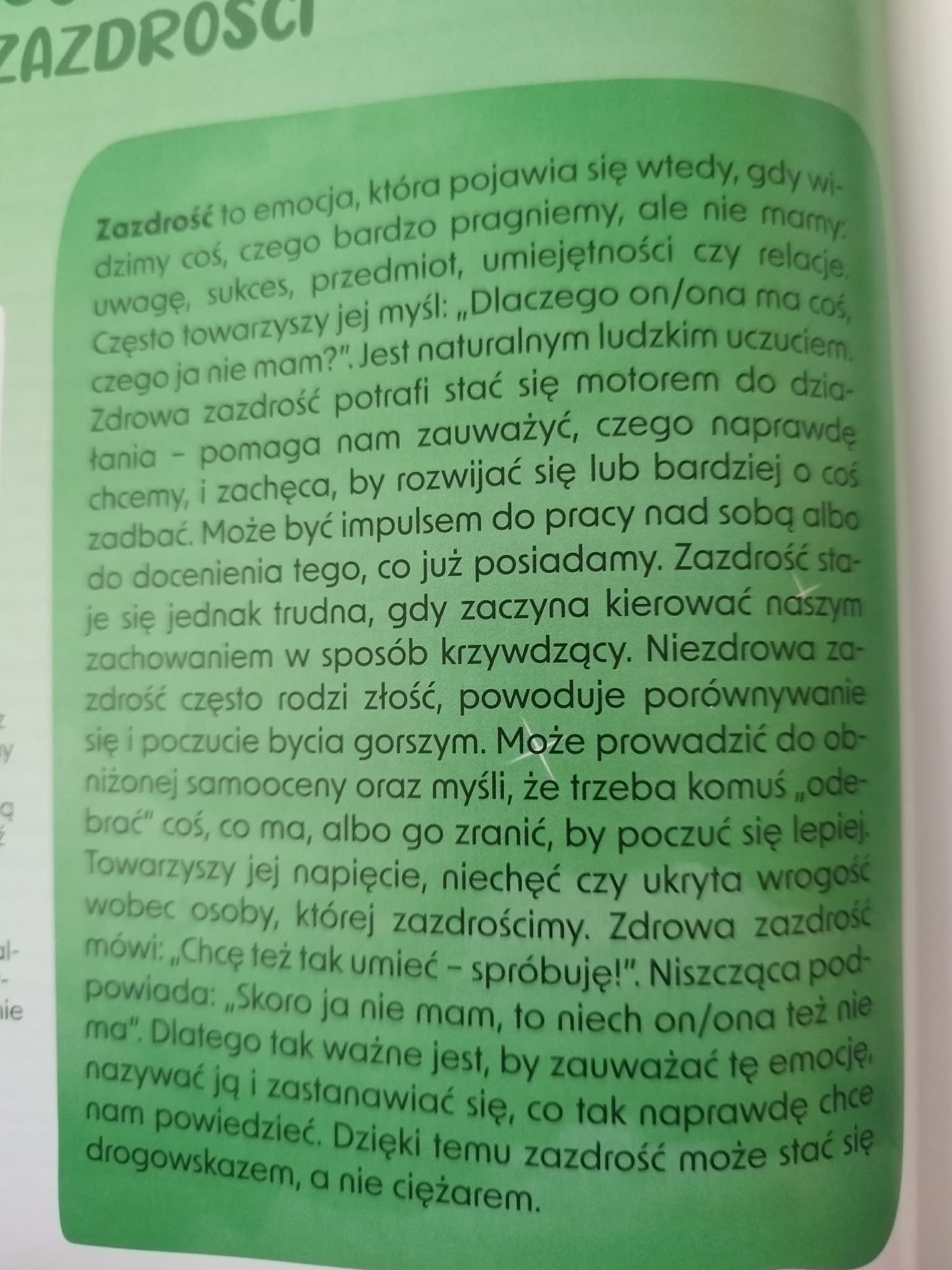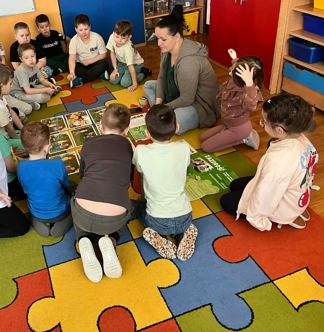 Dziś w naszym przedszkolu odbyły się kolejne zajęcia z programu „Czuciaki z Krainy Emocji”, który pomaga dzieciom poznawać i lepiej rozumieć różne uczucia towarzyszące nam na co dzień. Podczas spotkania przedszkolaki poznały nowego bohatera – Pana Zielonka z Wyspy Zazdrości. Bohater ten uczy dzieci, że zazdrość jest emocją, którą zna każdy z nas. Dzięki jego historii dzieci dowiedziały się, że zazdrość nie musi prowadzić do konfliktów – może stać się motywacją do działania, rozwijania swoich umiejętności oraz dążenia do wyznaczonych celów. Dzięki takim zajęciom dzieci rozwijają empatię, uczą się rozumieć siebie i innych oraz odkrywają, że każda emocja jest ważna i potrzebna.