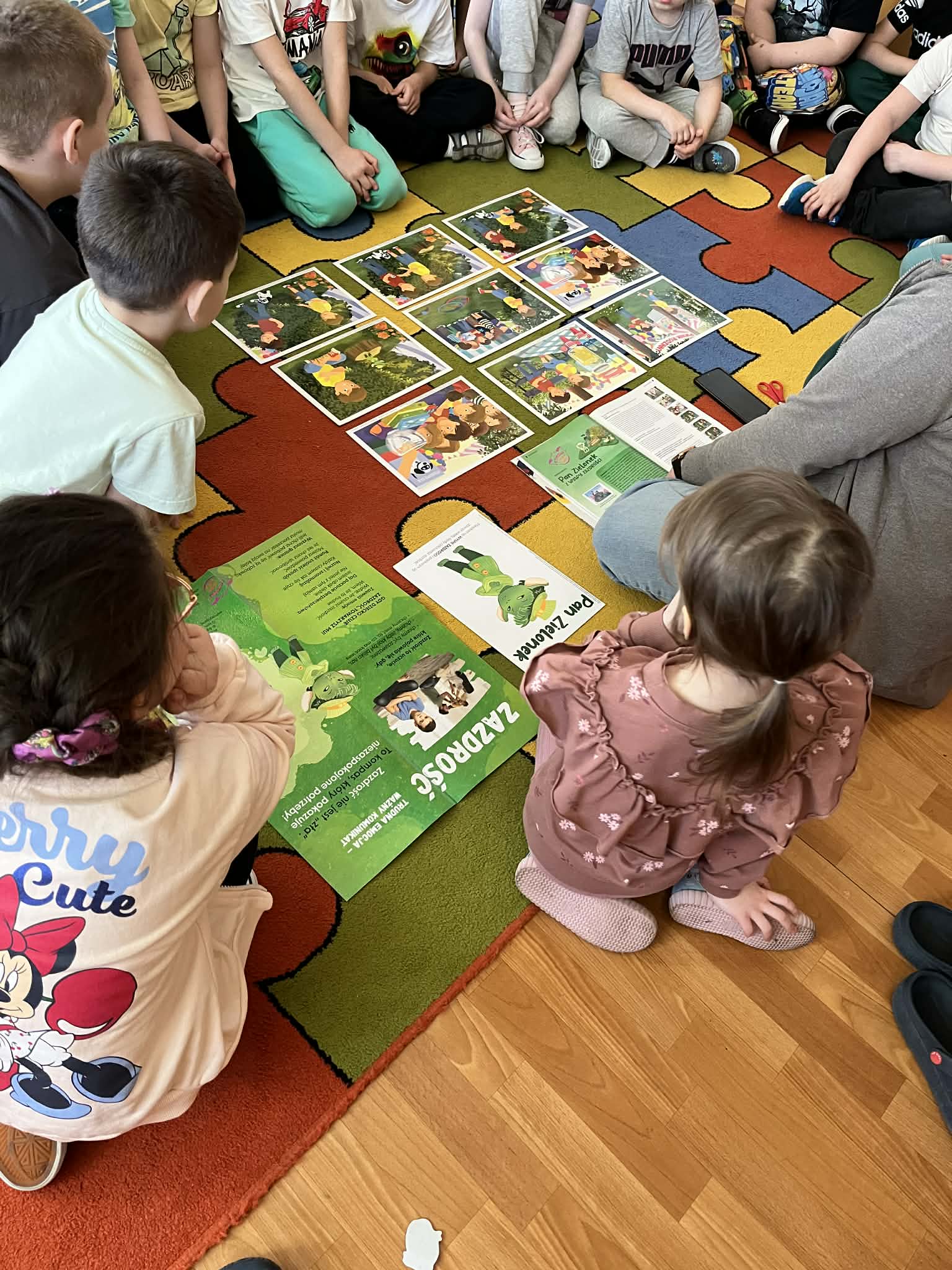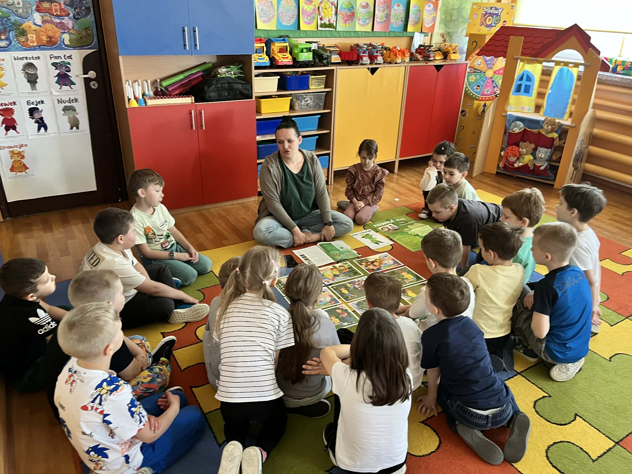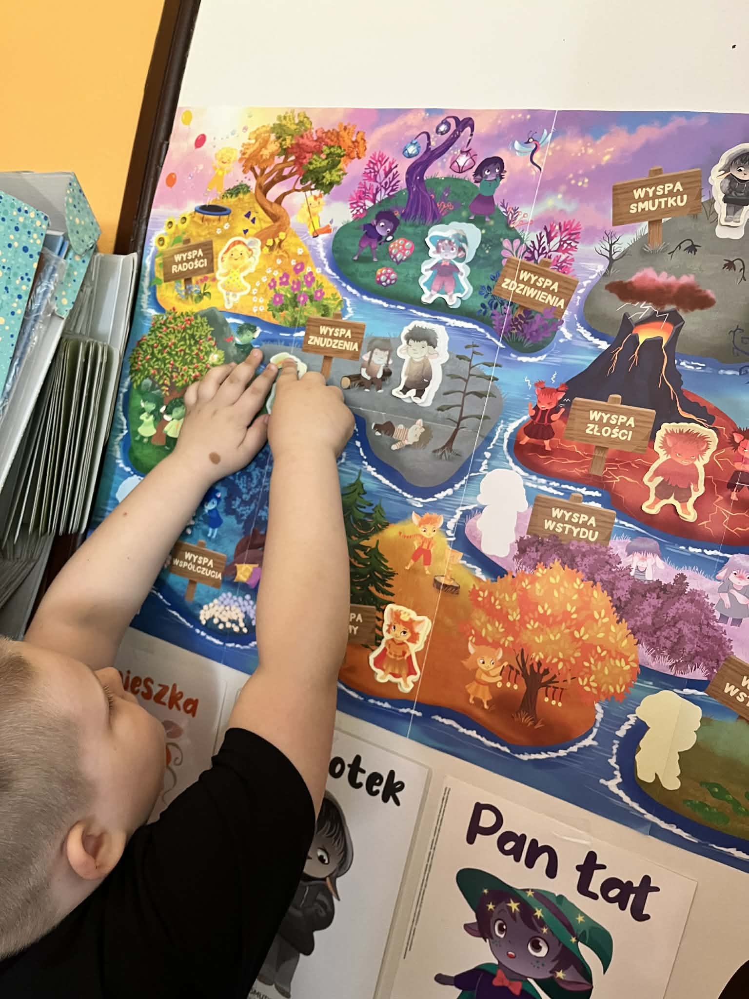 Dziś w naszym przedszkolu odbyły się kolejne zajęcia z programu „Czuciaki z Krainy Emocji”, który pomaga dzieciom poznawać i lepiej rozumieć różne uczucia towarzyszące nam na co dzień. Podczas spotkania przedszkolaki poznały nowego bohatera – Pana Zielonka z Wyspy Zazdrości. Bohater ten uczy dzieci, że zazdrość jest emocją, którą zna każdy z nas. Dzięki jego historii dzieci dowiedziały się, że zazdrość nie musi prowadzić do konfliktów – może stać się motywacją do działania, rozwijania swoich umiejętności oraz dążenia do wyznaczonych celów. Dzięki takim zajęciom dzieci rozwijają empatię, uczą się rozumieć siebie i innych oraz odkrywają, że każda emocja jest ważna i potrzebna.