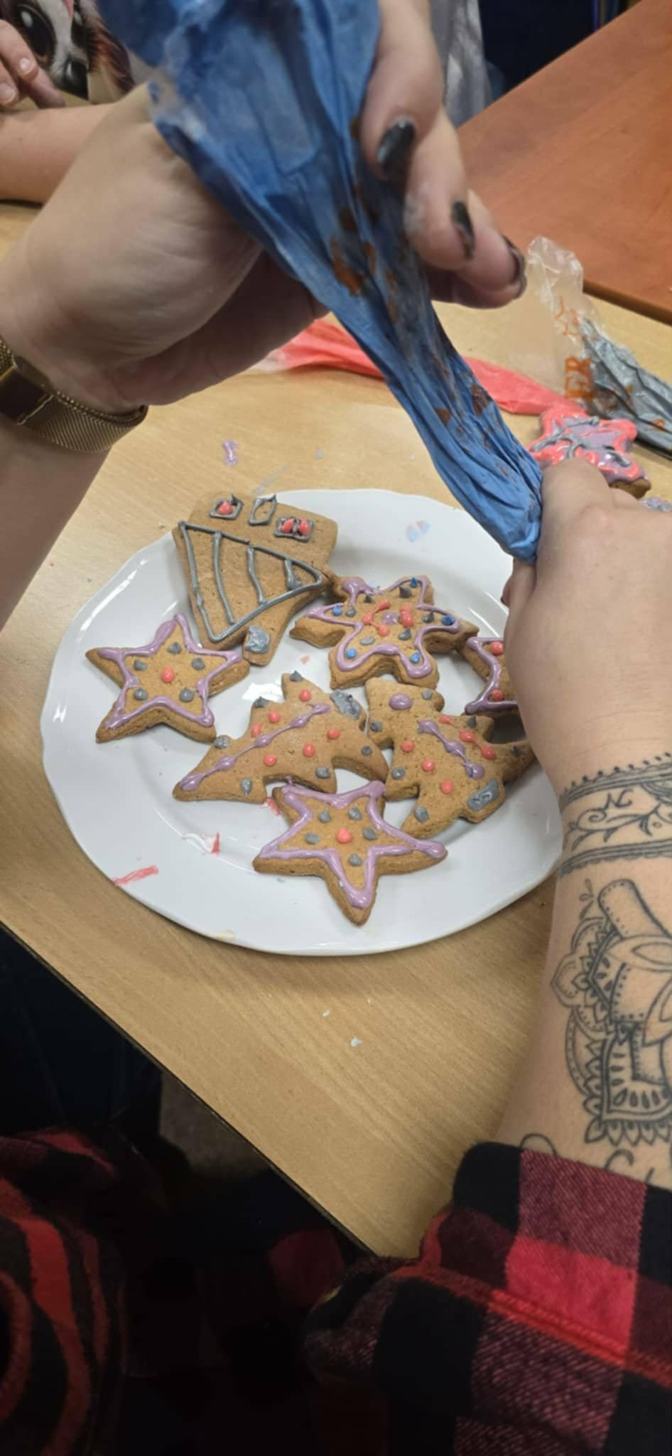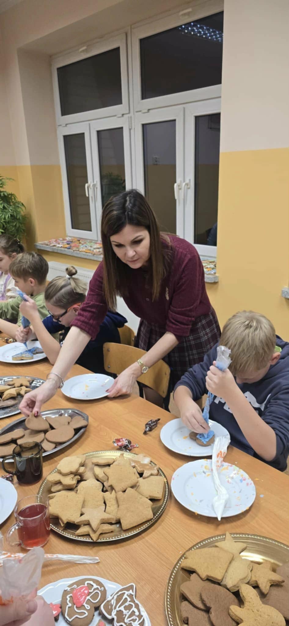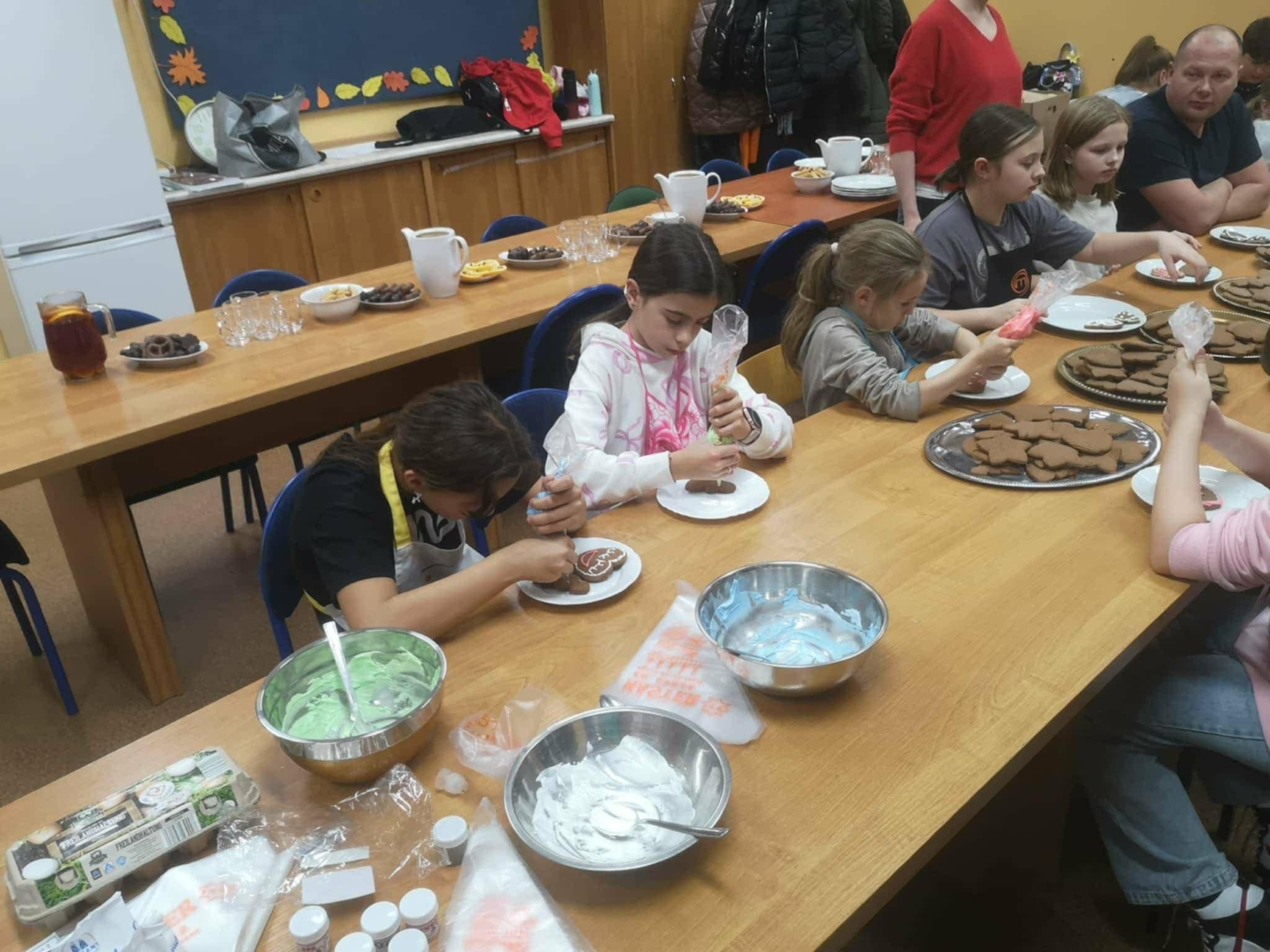 We wtorek, 25 listopada, odbyło się wyjątkowe spotkanie uczniów i rodziców naszej szkoły, w tym rodziców z Rady Rodziców. W miłej, przedświątecznej atmosferze wszyscy wspólnie dekorowali pierniki, tworząc małe, słodkie dzieła sztuki. Kolorowe lukry oraz uśmiechy uczestników sprawiły, że sala wypełniła się zapachem świąt i radością wspólnej zabawy.