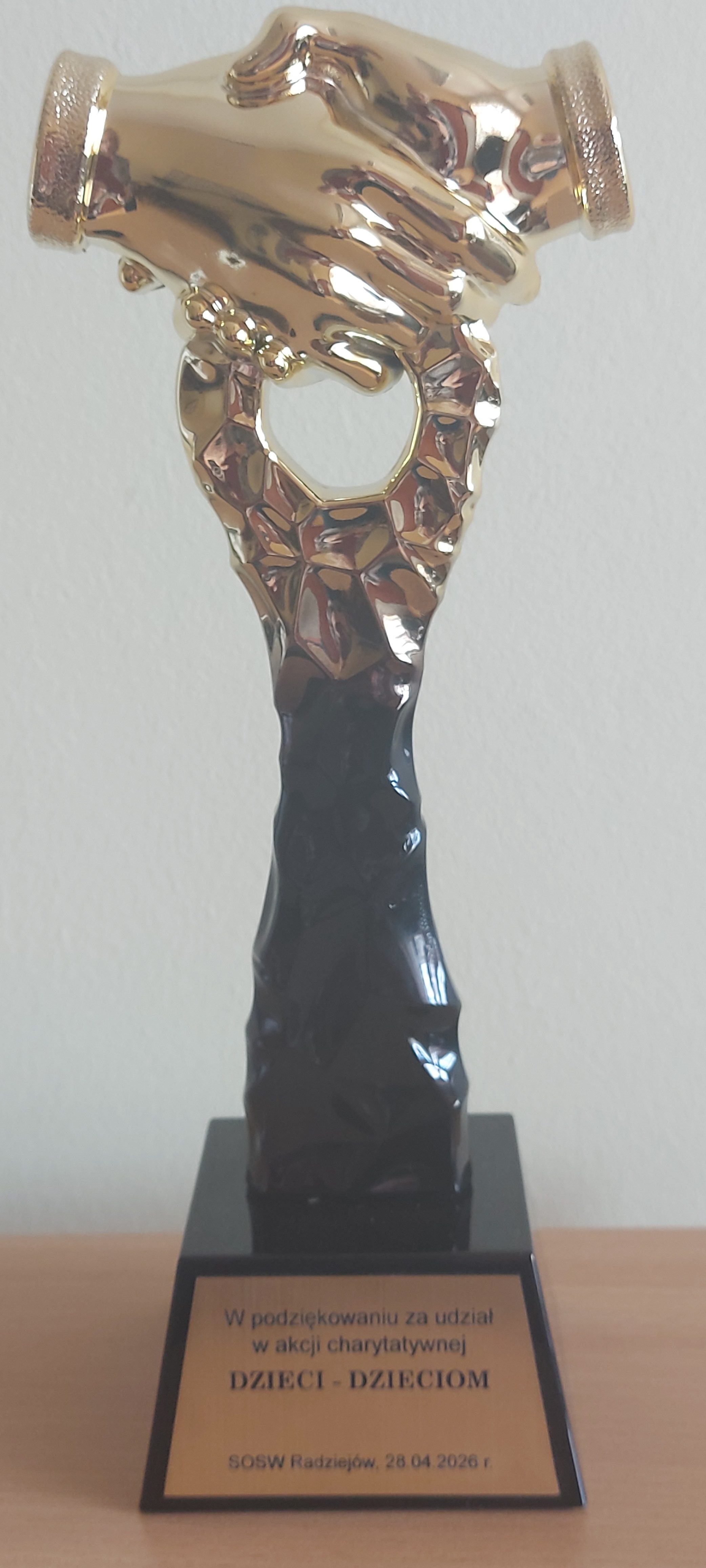 Na zakończenie uroczystości, w podziękowaniu za zaangażowanie w akcję ,,Dzieci-Dzieciom” wręczono dyplomy oraz statuetki. Po czym wszyscy udali się na słodki poczęstunek.