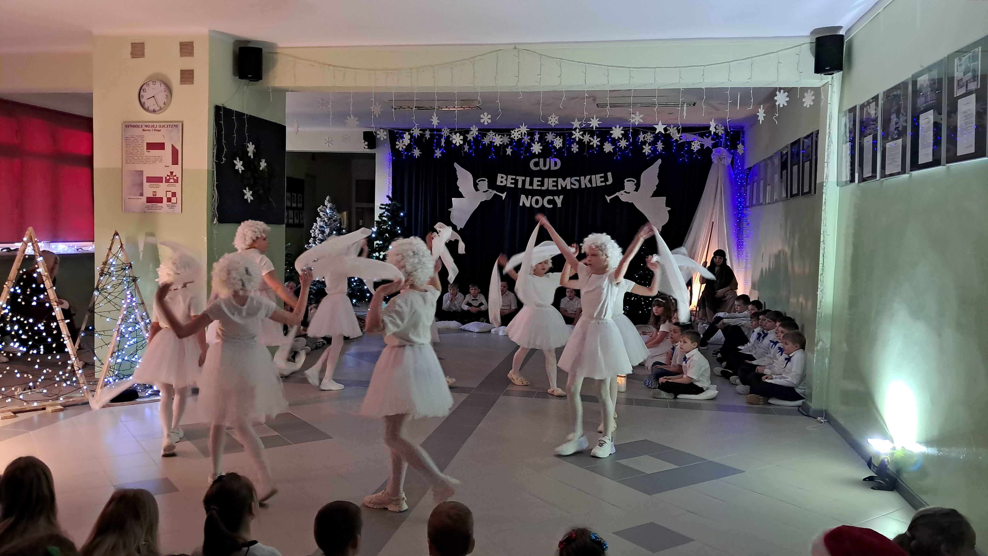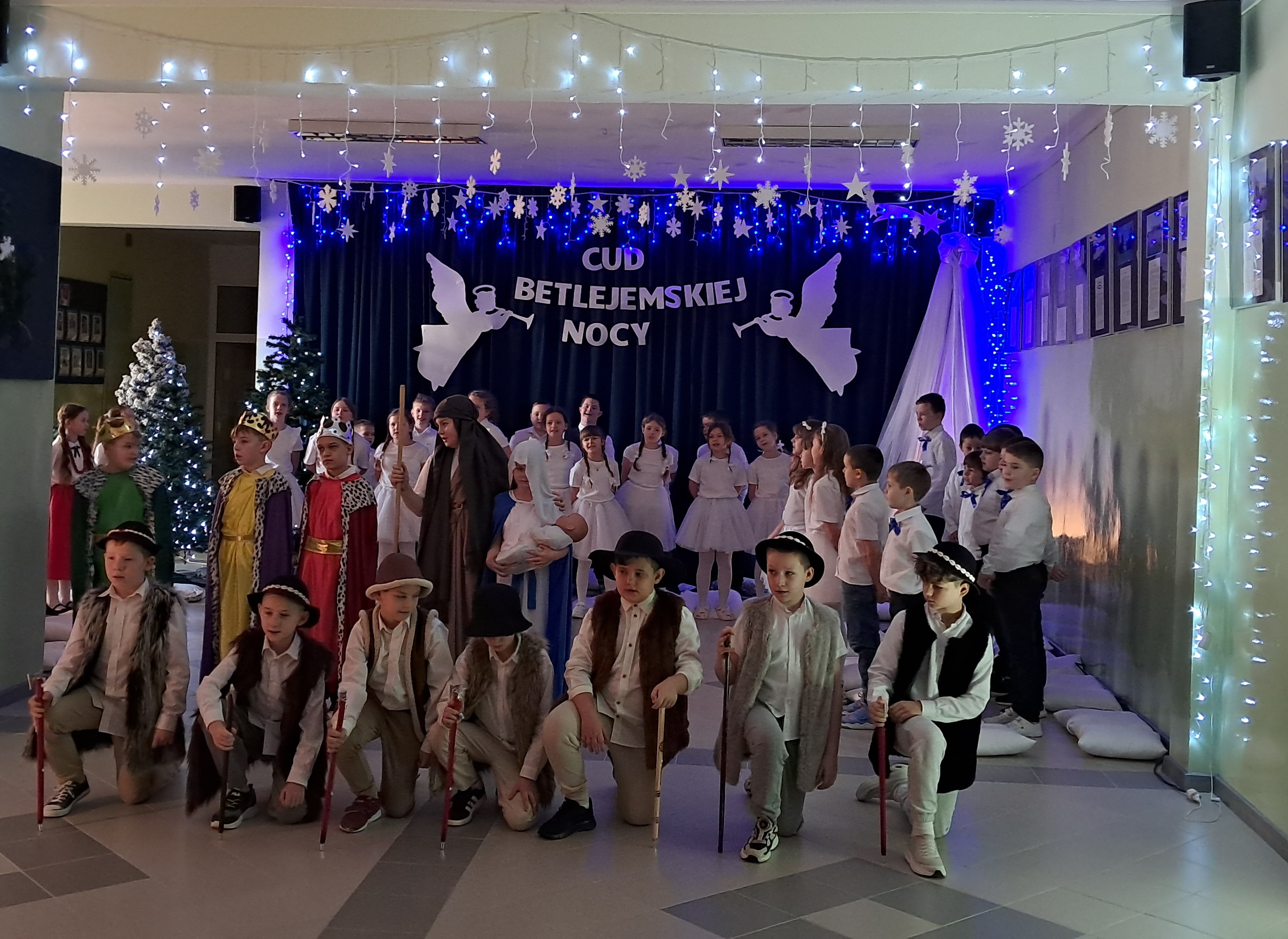 Zwieńczeniem wszystkich działań było przygotowanie i zaprezentowanie jasełek bożonarodzeniowych przez klasy trzecie. Zaprezentowane jasełka pt. „Cud Betlejemskiej Nocy”, stanowiły piękne podsumowanie całego cyklu świątecznych wydarzeń. Występ był okazją do zaprezentowania umiejętności recytatorskich, wokalnych, tanecznych oraz aktorskich uczniów, a także do wspólnego przeżywania magii Świąt Bożego Narodzenia.