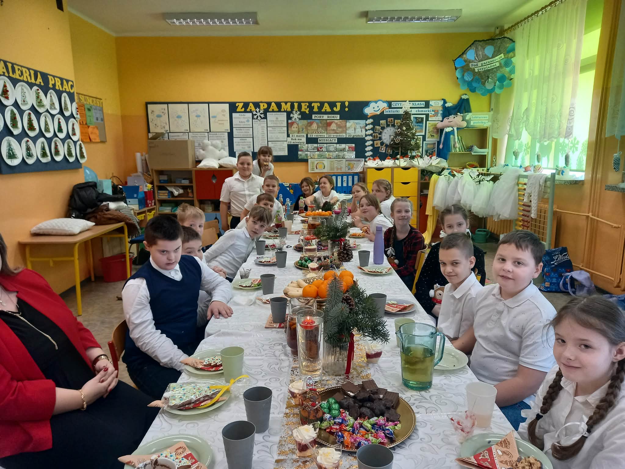 W klasach 3a i 3b odbyły się także wigilie klasowe, podczas których dzieci poznawały tradycje bożonarodzeniowe, uczyły się nakrywania do stołu, kulturalnego zachowania oraz wspólnego, pełnego szacunku celebrowania świątecznego czasu.