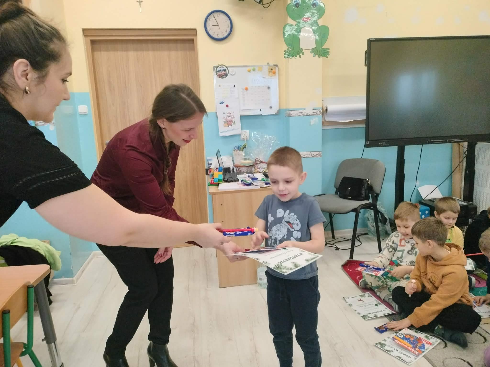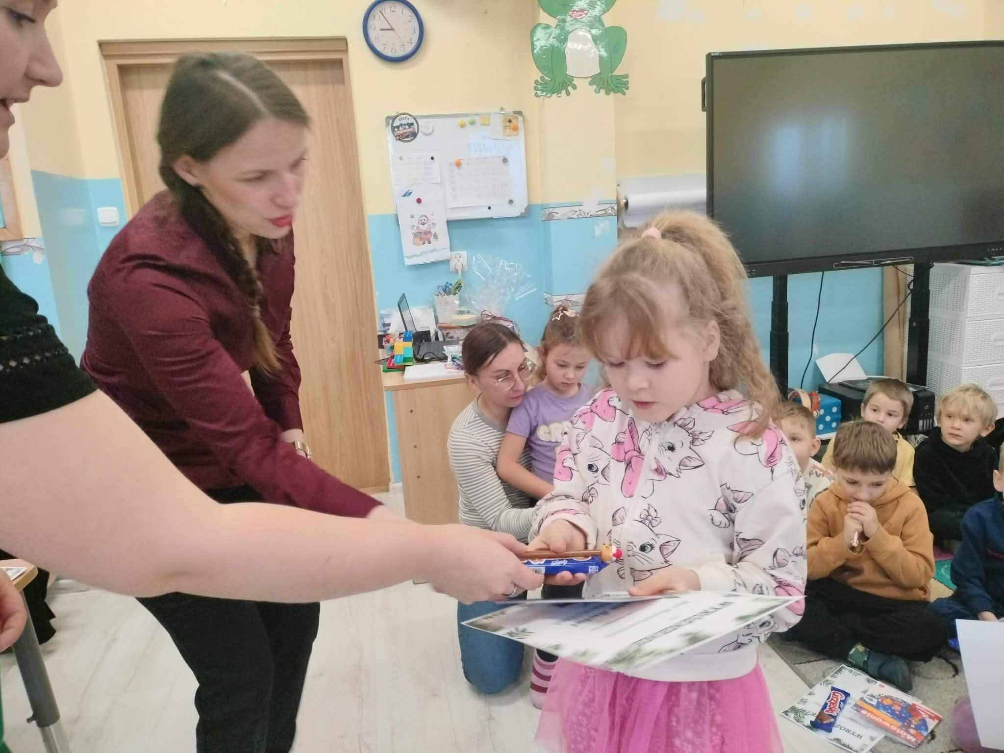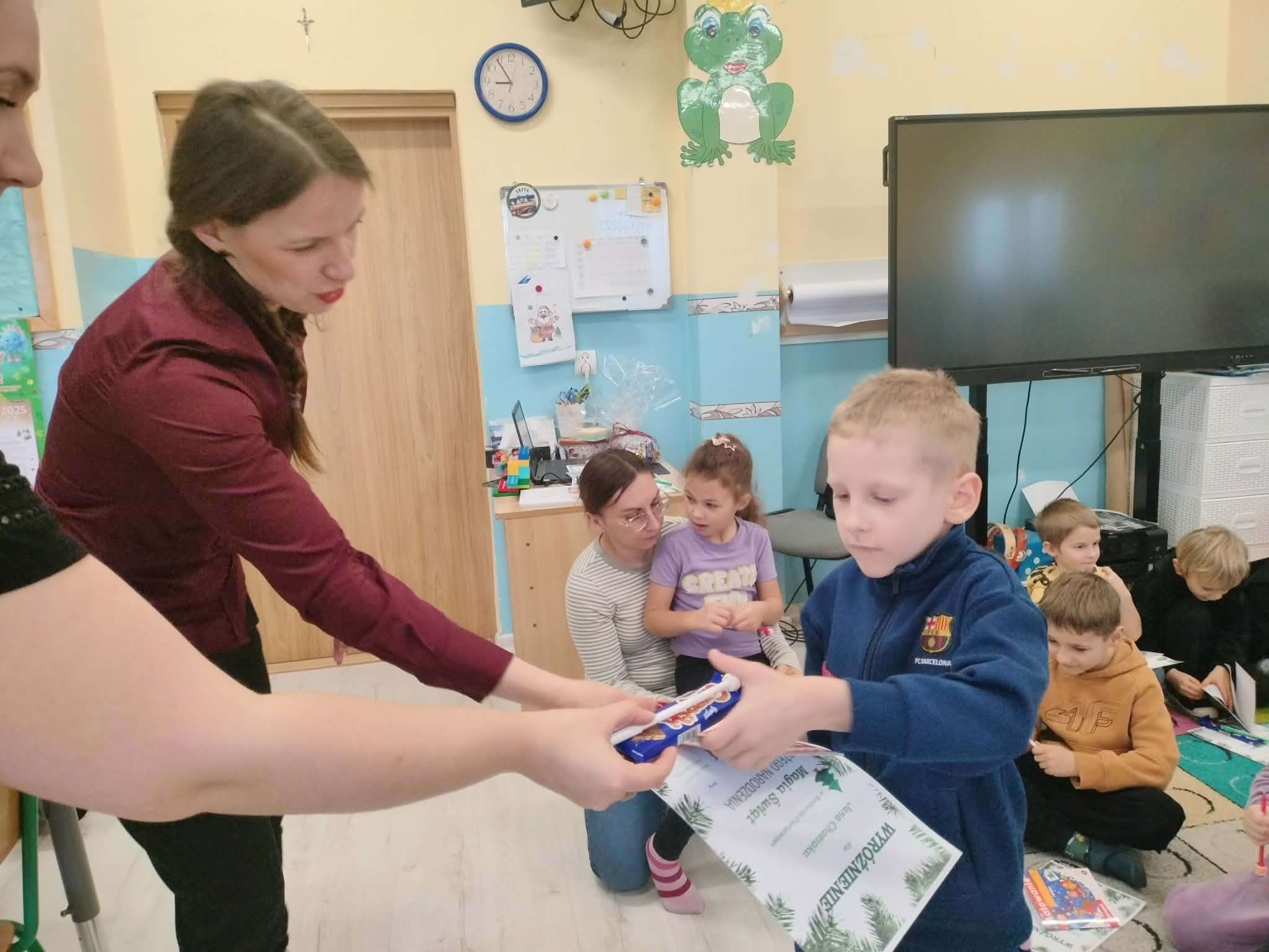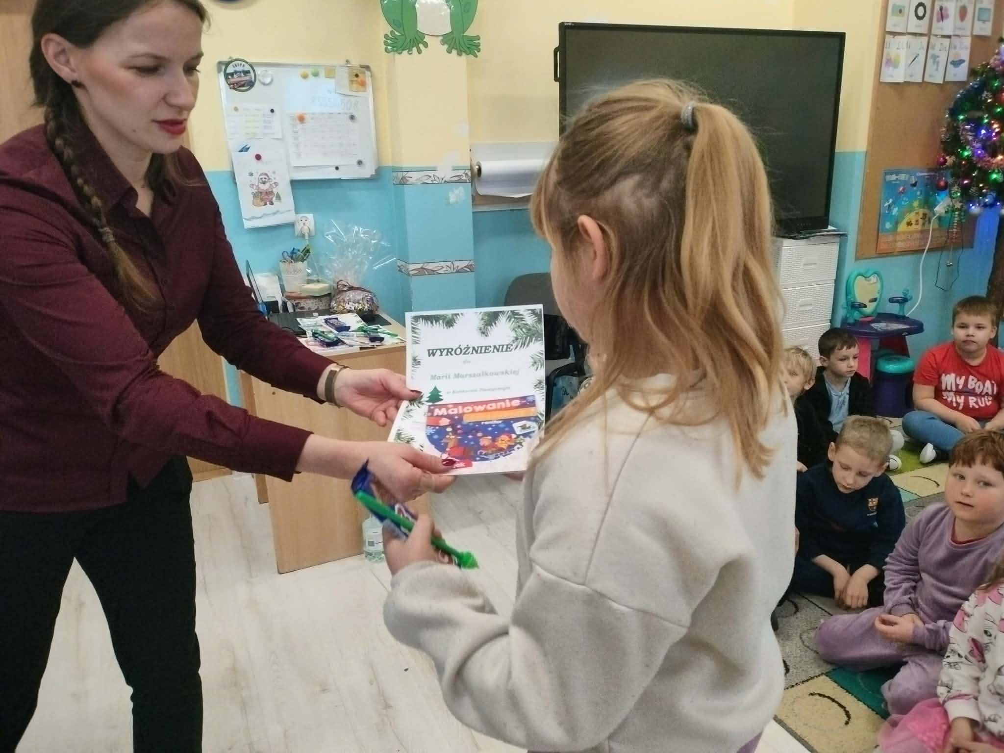 Dziś Panie z Gminnej Biblioteki Publicznej odwiedziły nasze przedszkole, by wręczyć uczestnikom konkursu “Magia Świąt Bożego Narodzenia” nagrody. Komisja w składzie: p. Iwona Sikorska – emerytowana Dyrektor GBP w Osięcinach oraz p. Anna Kozłowska – emerytowana nauczycielka, lokalna artystka nagrodziły miejscem II dwie dziewczynki z naszej placówki Alicję Wiśniewską oraz Sarę Nekrasov. Wszystkie pozostałe osoby biorące udział w konkursie otrzymały Wyróżnienie. Arcydzieła można już podziwiać na wystawie w Gminnej Bibliotece Publicznej w Osięcinach. Serdecznie dziękujemy za możliwość uczestnictwa w konkursie oraz gratulujemy wygranych!