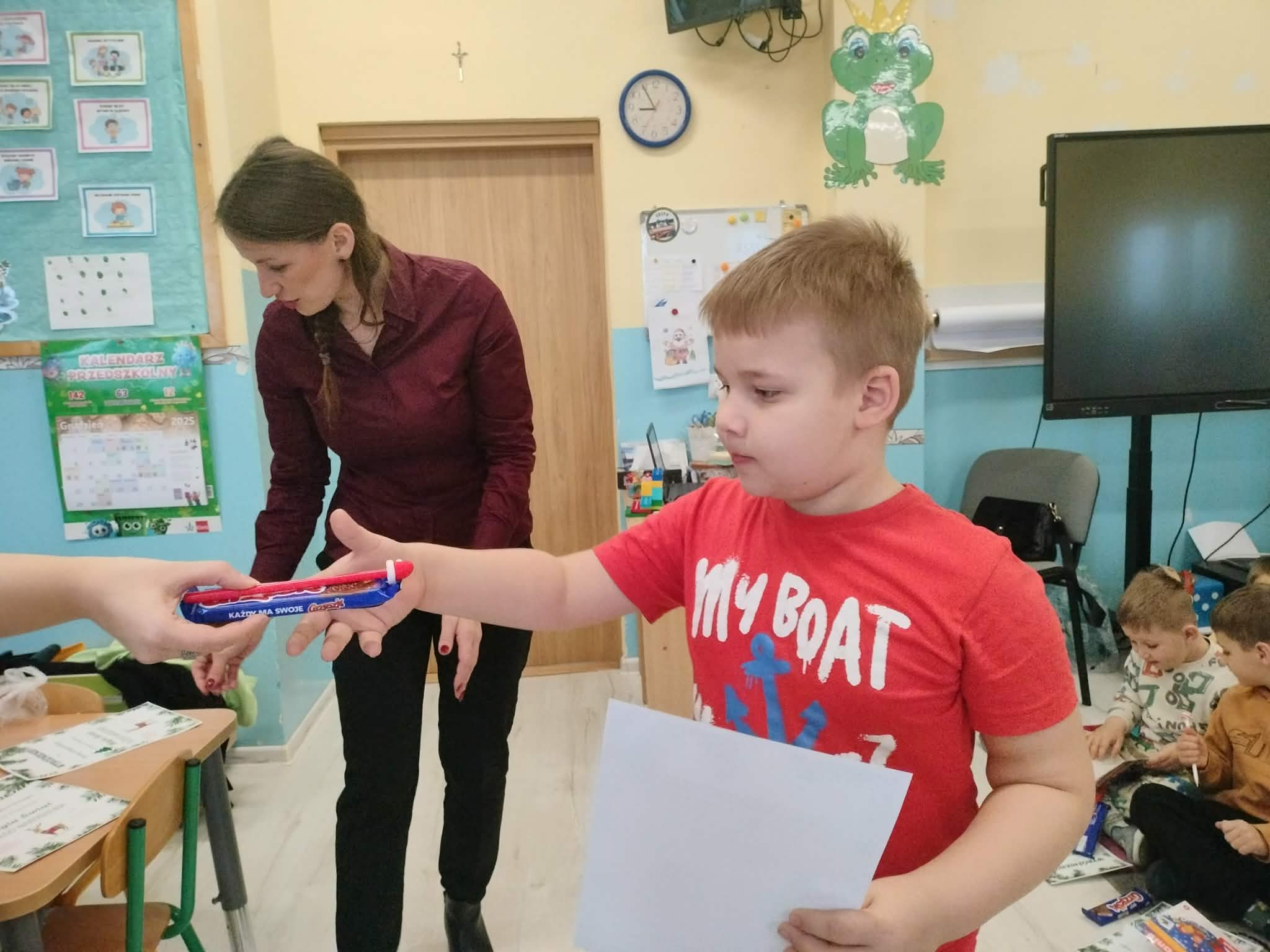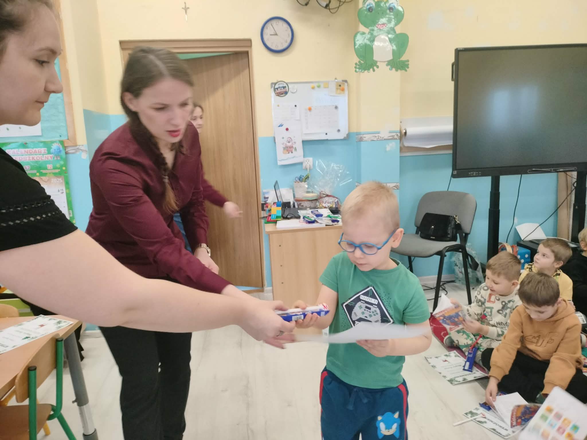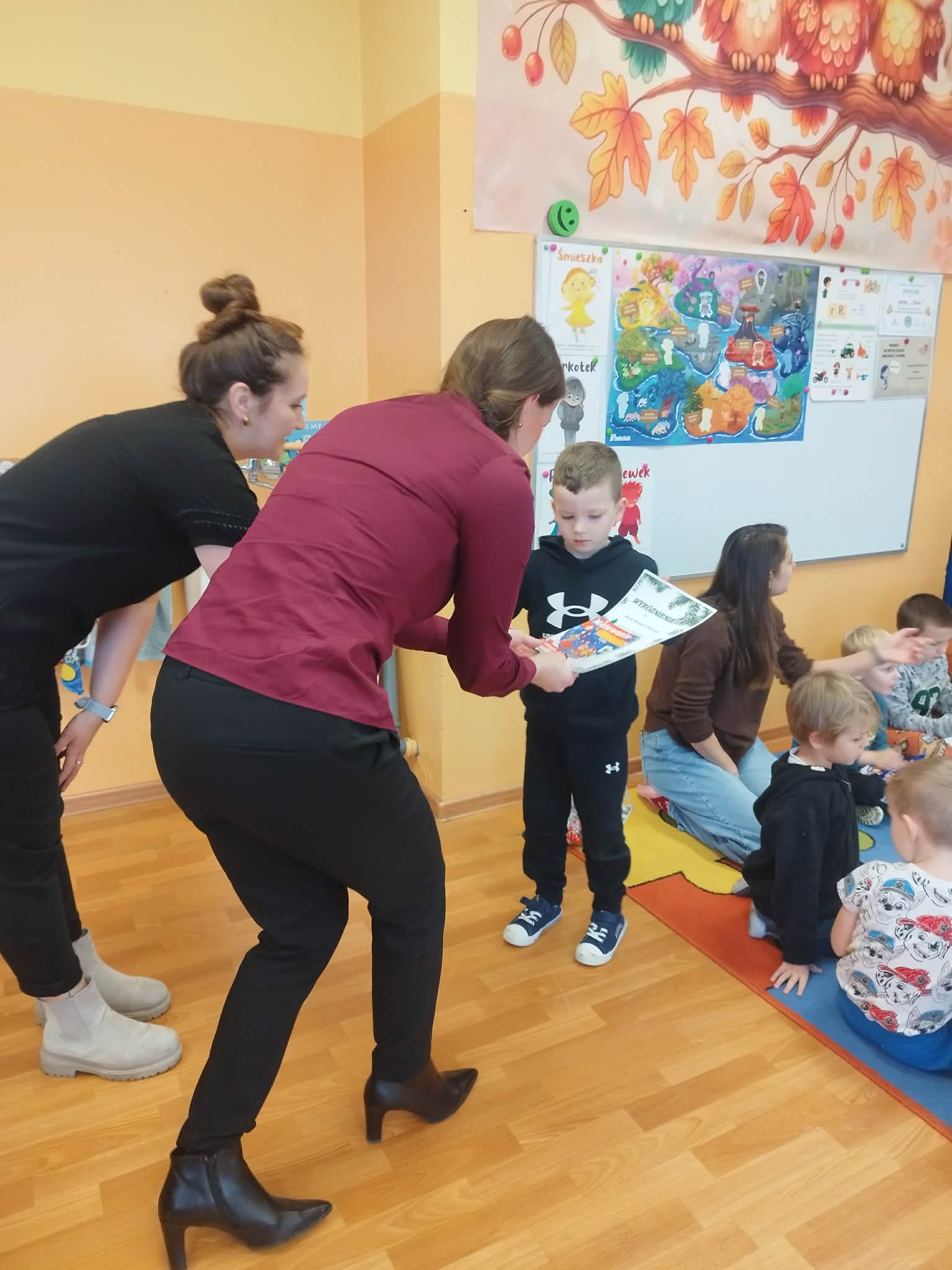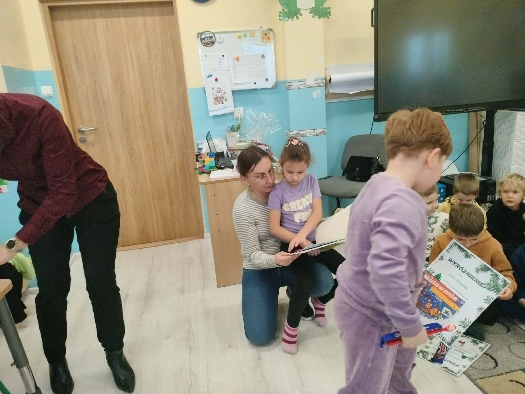 Dziś Panie z Gminnej Biblioteki Publicznej odwiedziły nasze przedszkole, by wręczyć uczestnikom konkursu “Magia Świąt Bożego Narodzenia” nagrody. Komisja w składzie: p. Iwona Sikorska – emerytowana Dyrektor GBP w Osięcinach oraz p. Anna Kozłowska – emerytowana nauczycielka, lokalna artystka nagrodziły miejscem II dwie dziewczynki z naszej placówki Alicję Wiśniewską oraz Sarę Nekrasov. Wszystkie pozostałe osoby biorące udział w konkursie otrzymały Wyróżnienie. Arcydzieła można już podziwiać na wystawie w Gminnej Bibliotece Publicznej w Osięcinach. Serdecznie dziękujemy za możliwość uczestnictwa w konkursie oraz gratulujemy wygranych!