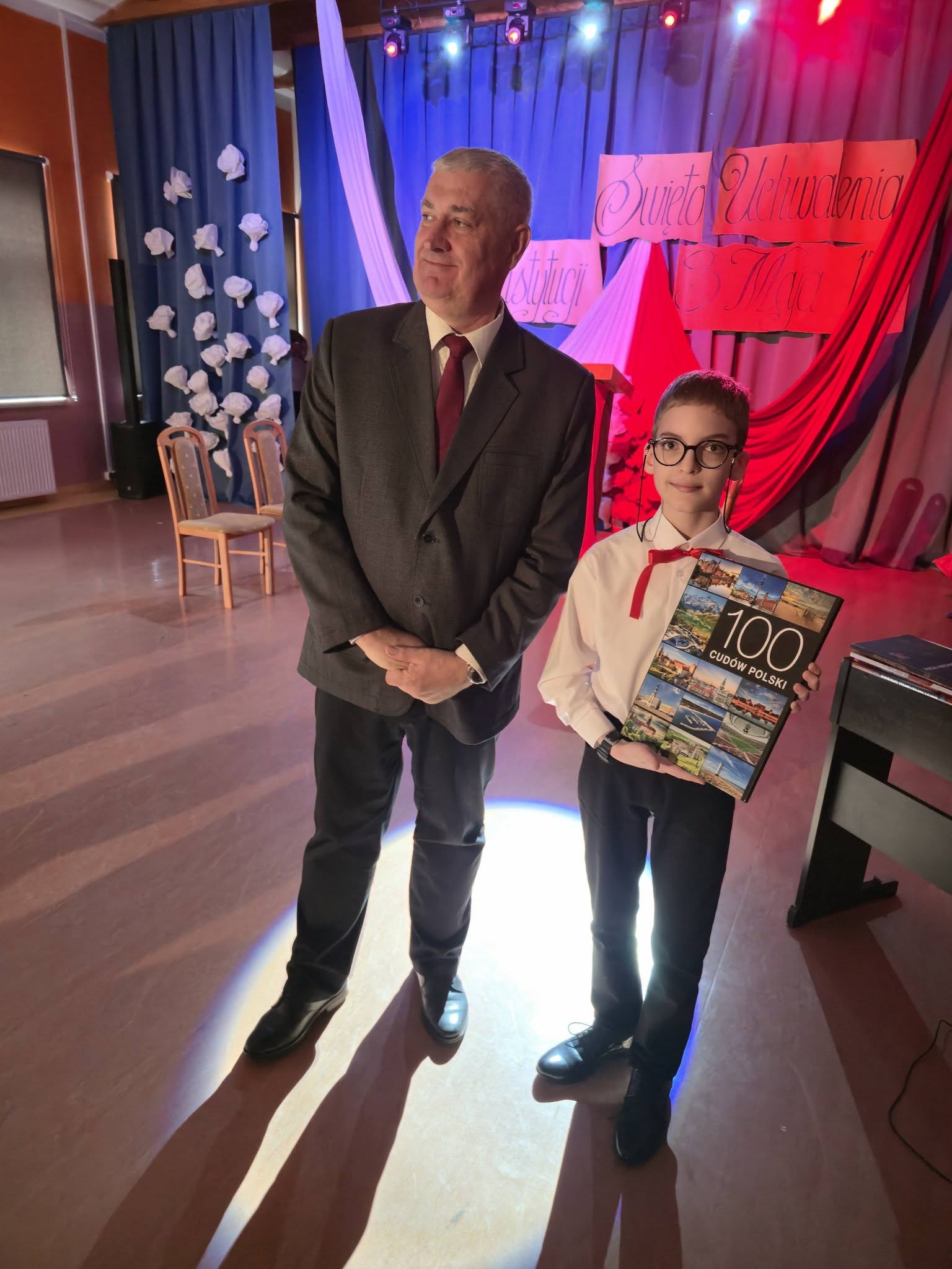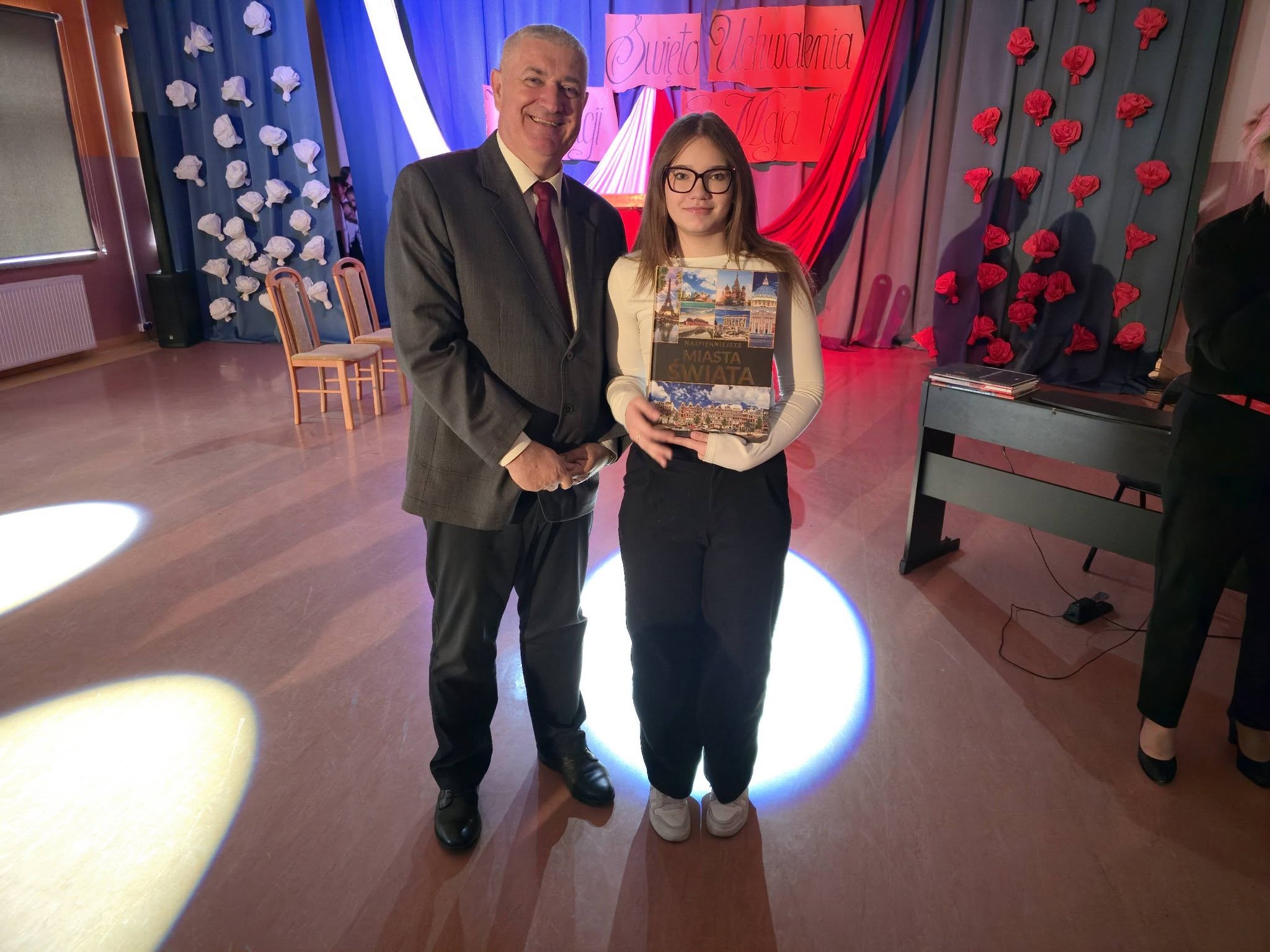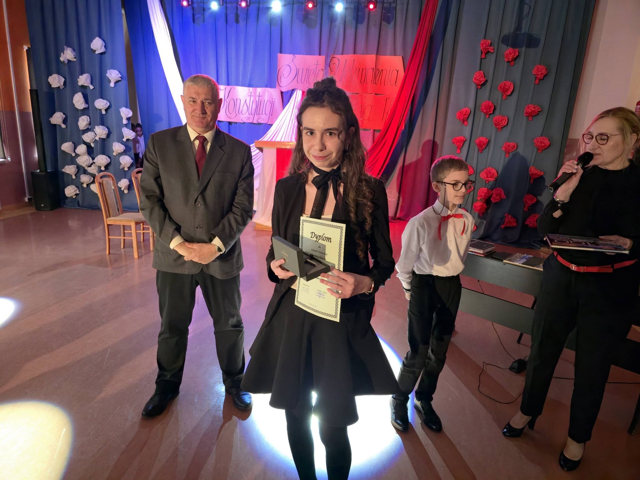 Z radością informujemy o rozstrzygnięciu Szkolnego Konkursu Literackiego o Pióro Dyrektora Szkoły, który na stałe wpisał się w kalendarz naszych wydarzeń i co roku przyciąga wielu utalentowanych uczniów. 30 kwietnia 2026r. na uroczystej akademii z okazji Święta Konstytucji 3 Maja dyrektor szkoły, pan Andrzej Polaszek, wręczył nagrodę główną -pióro z grawerem oraz nagrody książkowe ufundowane przez Radę Rodziców.